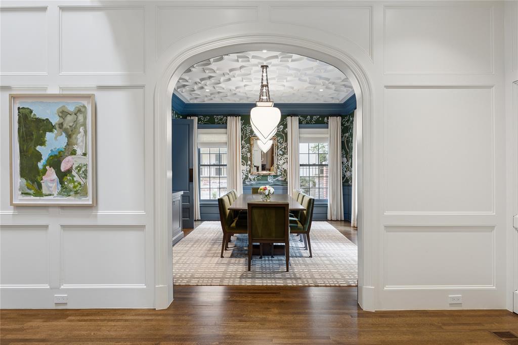 Timeless Georgian custom home spanning 6,608 SF on a generous 0.34-acre lot. The property was completely reimagined in 2023 by architect Jerry Coleman, builder Barringer Custom Homes, renown designer Marie Flanagan, and landscape design by Clint Horticulture. Entry is flanked with formals; LR to the left & DR on right, showcasing hand-painted De Gournay wallpaper & intricate plaster ceiling detail. The state-of-the-art kitchn feats custom cabinetry & brass shelving, oversized Rosso Levanto marble island, & La Cornue range. The bfast rm has stone FP & floor-to-ceiling boxed windows, opening to outdoor loggia w motorized screens & attached grill. Study opens to a lovely side patio. The red lacquered library is a standout, w beautiful custom millwork, & a burnished brass FP surround. The 2nd flr boasts 4 ensuite bedrms. Primary bedrm w dark wood paneling, separate primary bathrms, walk-in-closets w custom storage, and an inviting sitting rm that boasts a gas FP & overlooks backyrd for a serene retreat. The 3rd level transforms into a game rm, complete w a wet bar, a day bed, & half bath. The detached 3car gar & 1,415 SF guest quarters were completely rebuilt in 2023 in a New England-style architecture w cedar shake shingle exterior. The 1st floor offers a living space w a hidden Murphy bed, kitchen, & full bathrm. Upstairs, an office w built-ins, hidden half bath, & fitness rm. The impressive 3-car garage was developed w the flexibility to also function as a sport court or gym, w gorgeous wood paneling, gym floor w basketball & pickleball courts, & full climate cntrl. The expansive landscaped backyard is a serene retreat w lush greenery, and turfed yard. A shaded pergola with outdoor living area overlooks a separate spa w heater & chiller, and a walk-in cold plunge pool. Unique highlights include a movie screen projector, indoor-outdoor speakers w surround sound, generator, & putting green!