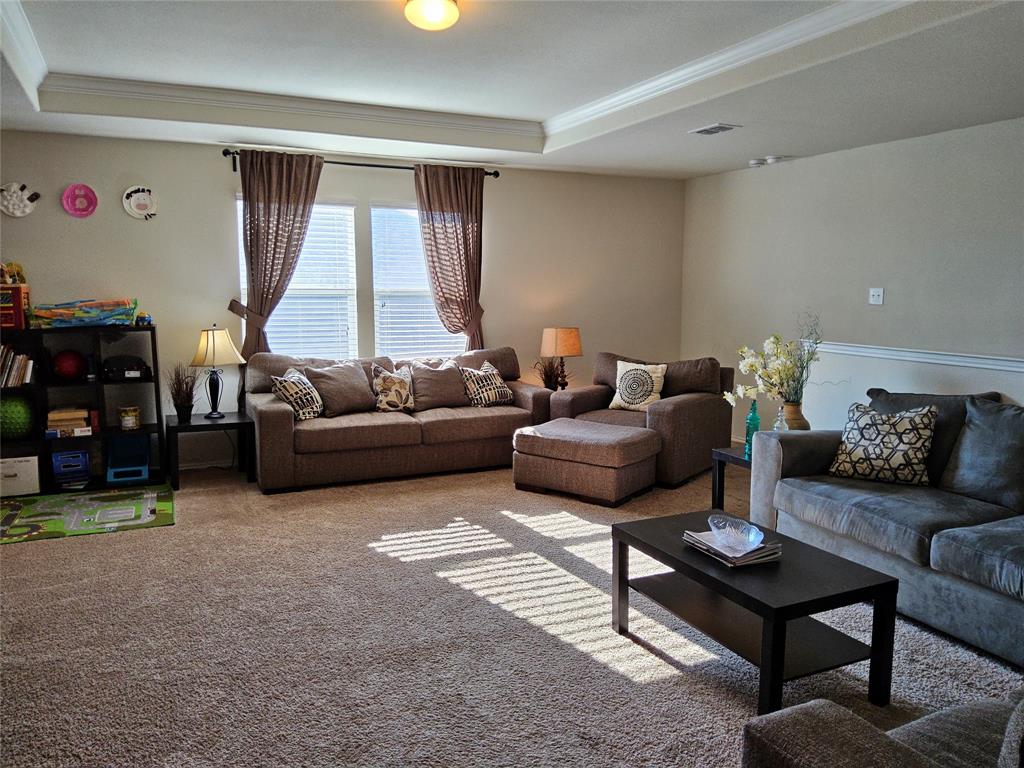 Layla boasts tile flooring throughout the main areas, while the bedrooms are carpeted for added comfort. Each bedroom includes a spacious walk-in closet, offering ample storage. Upstairs, you’ll find a large game room ideal for family fun or hosting guests. A dedicated home office on the first floor provides the perfect space for remote work or study, while the versatile layout allows the room to be transitioned into a formal dining area if desire The oversized utility room adds convenience and extra storage options. Thoughtfully designed with modern features, and plenty of space to grow, this home is perfect for both relaxation and entertaining.