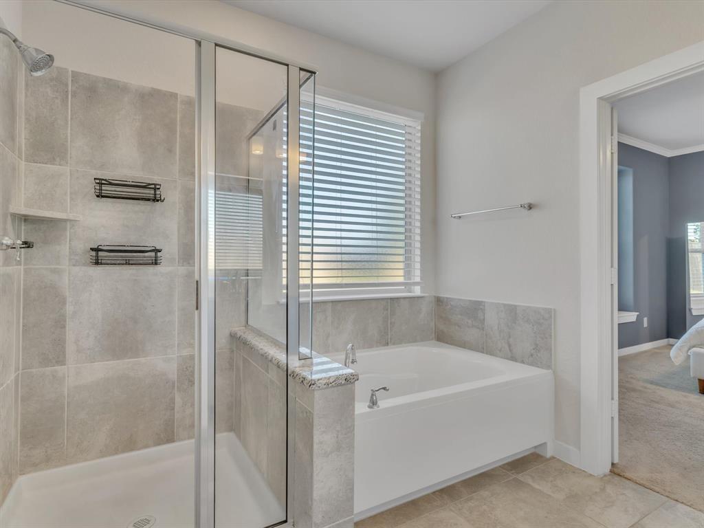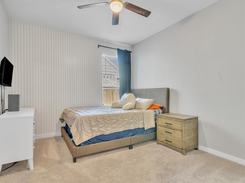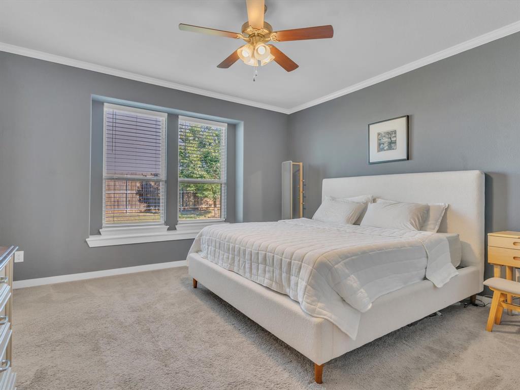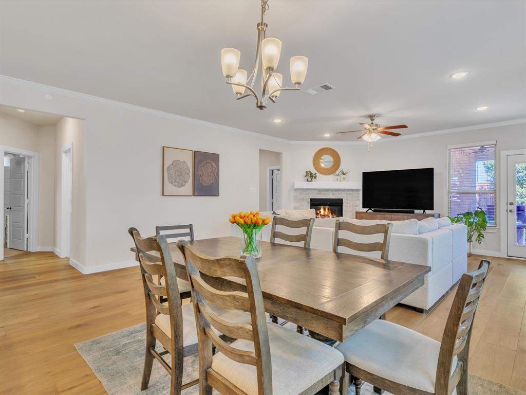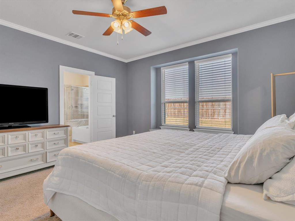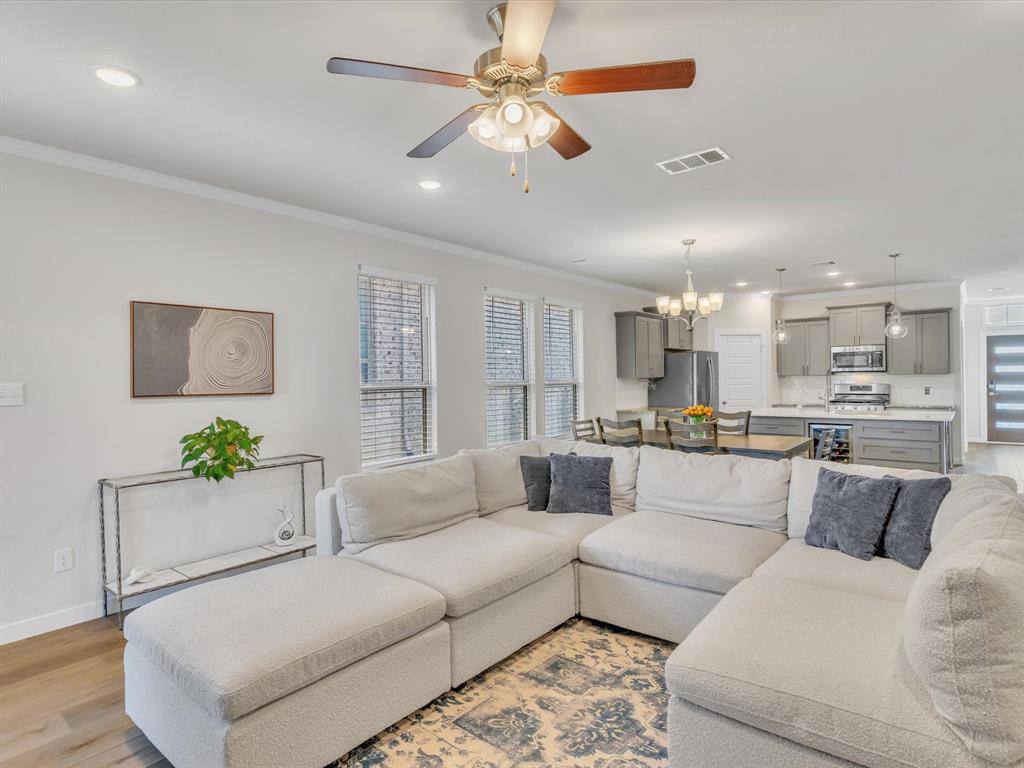 Welcome to this beautifully maintained SINGLE LEVEL 4-bedroom, 2-bathroom home in the highly desirable Seventeen Lakes community, zoned for Northwest ISD. With light, neutral colors and wide-plank flooring in the main living areas, this home is designed to feel bright and inviting from the moment you walk in. A private front office with custom built-ins offers the perfect space to work from home. The open-concept layout allows families to stay connected, with the kitchen, dining, and living areas flowing together seamlessly. The kitchen is equipped with painted cabinets, granite perimeter counters, stainless steel appliances, a gas range w-double oven, and an oversized quartz-topped island with a built-in wine fridge—ideal for casual meals, hosting, or after-school snacks. The living room features a decorative gas log fireplace, creating a cozy gathering spot. The split bedroom design gives everyone their own space, while the spacious primary suite offers dual sinks, a garden tub, separate shower, and walk-in closet. Step outside to the covered patio and low-maintenance backyard, perfect for playtime or relaxing weekends at home with no neighbors behind you. Seventeen Lakes offers an abundance of amenities designed for families to enjoy. Residents can take advantage of multiple community pools, playgrounds, fishing lakes, and scenic walking trails. With neighborhood events and plenty of outdoor spaces, this community fosters a true sense of connection and fun. Conveniently located just minutes from schools, parks, and the dining and entertainment options in Downtown Roanoke, this home combines comfort, convenience, and community living.