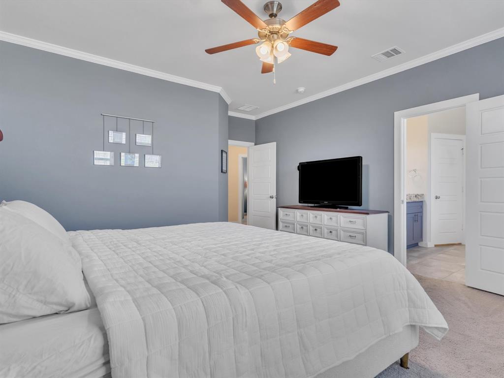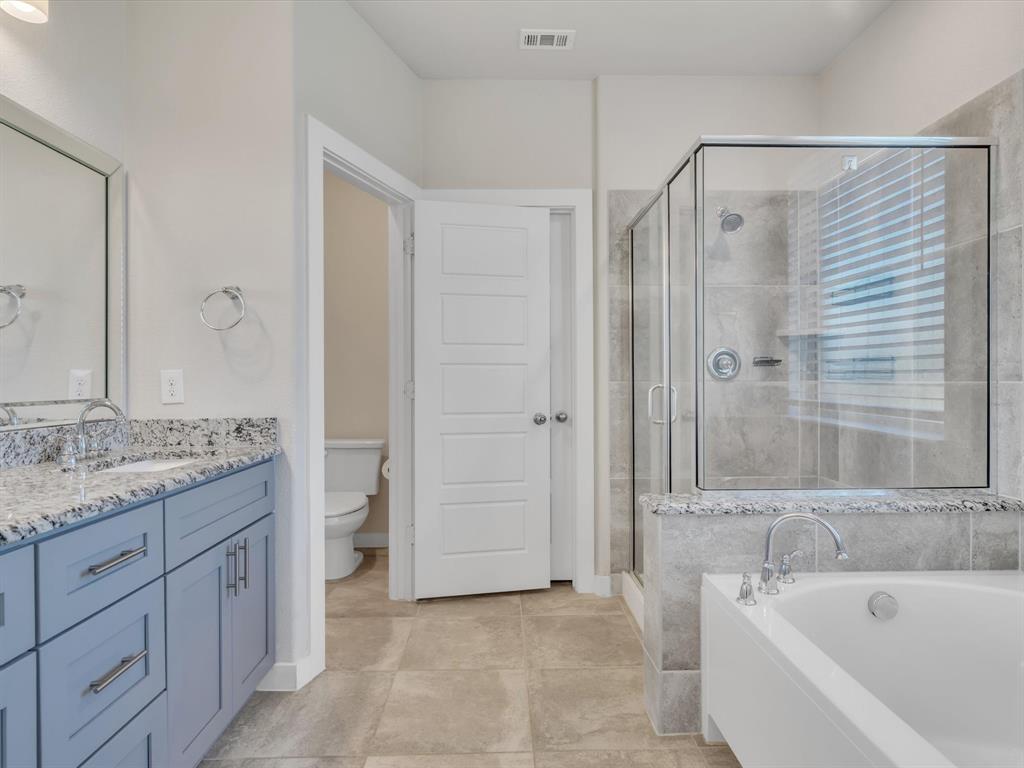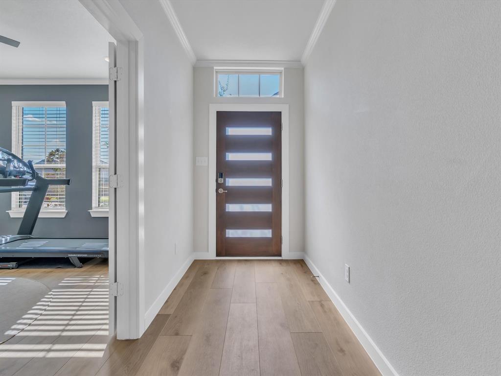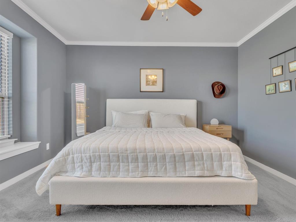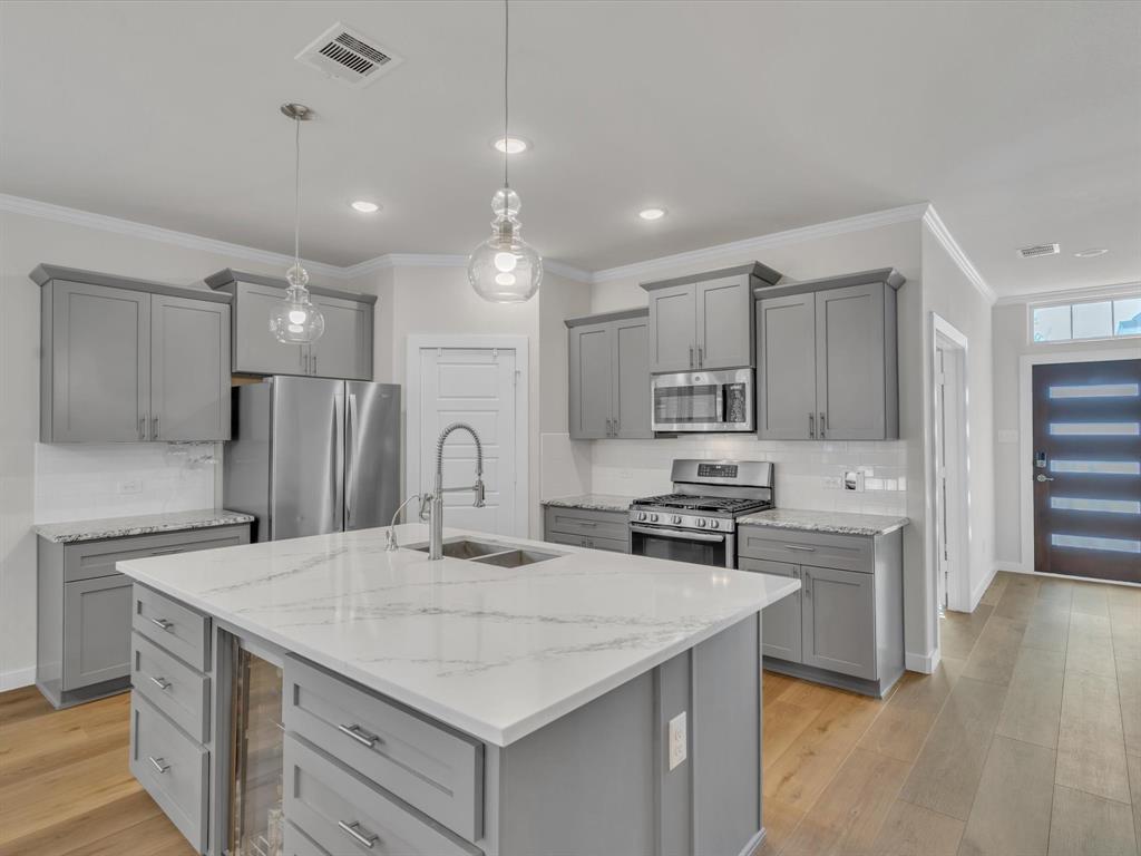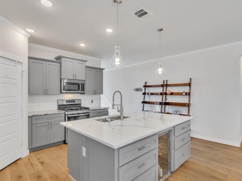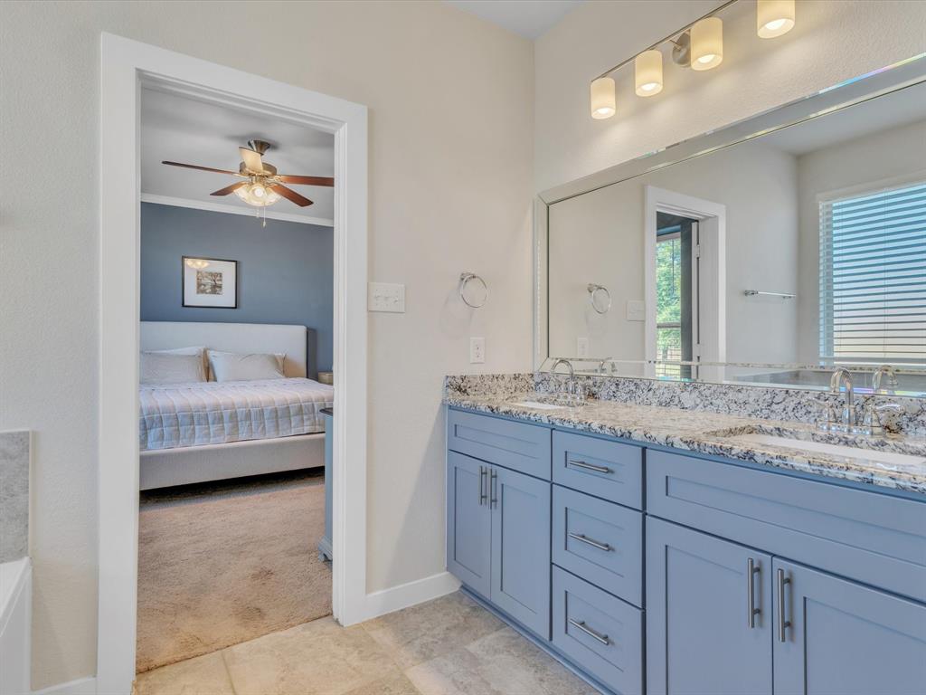 Welcome to this beautifully maintained SINGLE LEVEL 4-bedroom, 2-bathroom home in the highly desirable Seventeen Lakes community, zoned for Northwest ISD. With light, neutral colors and wide-plank flooring in the main living areas, this home is designed to feel bright and inviting from the moment you walk in. A private front office with custom built-ins offers the perfect space to work from home. The open-concept layout allows families to stay connected, with the kitchen, dining, and living areas flowing together seamlessly. The kitchen is equipped with painted cabinets, granite perimeter counters, stainless steel appliances, a gas range w-double oven, and an oversized quartz-topped island with a built-in wine fridge—ideal for casual meals, hosting, or after-school snacks. The living room features a decorative gas log fireplace, creating a cozy gathering spot. The split bedroom design gives everyone their own space, while the spacious primary suite offers dual sinks, a garden tub, separate shower, and walk-in closet. Step outside to the covered patio and low-maintenance backyard, perfect for playtime or relaxing weekends at home with no neighbors behind you. Seventeen Lakes offers an abundance of amenities designed for families to enjoy. Residents can take advantage of multiple community pools, playgrounds, fishing lakes, and scenic walking trails. With neighborhood events and plenty of outdoor spaces, this community fosters a true sense of connection and fun. Conveniently located just minutes from schools, parks, and the dining and entertainment options in Downtown Roanoke, this home combines comfort, convenience, and community living.