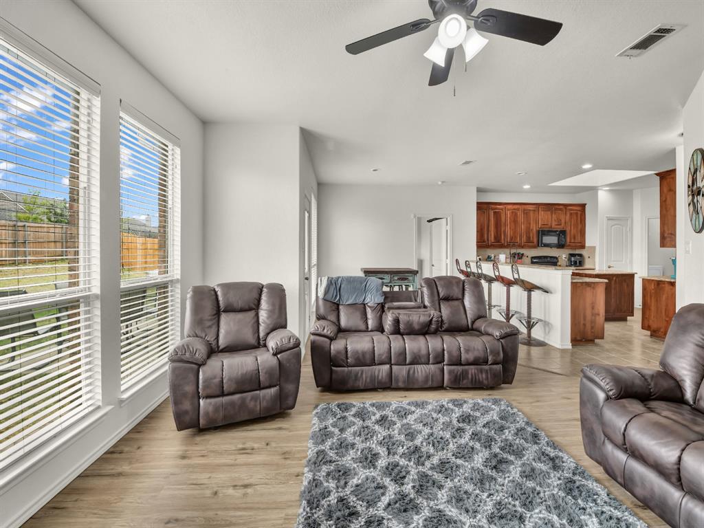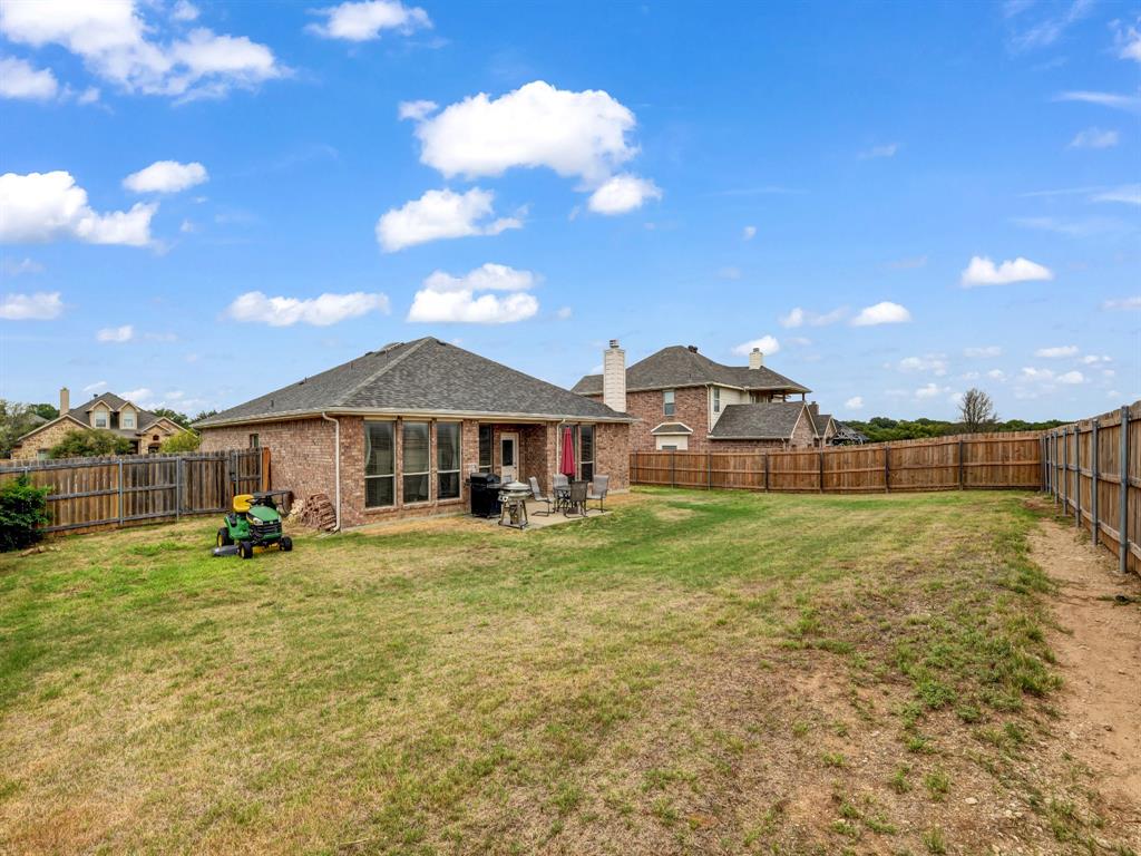 This single-owner home has been thoughtfully updated inside and out! Fresh paint throughout the whole home completed in August 2025, fence replaced in summer of 2024, roof, gutters, downspouts, window screens, chimney top and more replaced July 2025. Garage door replaced August 2025. AC unit installed 2021, sprinkler system heads replaced May 2025. This home has a large level backyard and a floorplan that adapts easily to your needs. The front room is currently being used as the 4th bedroom, however this would also make a wonderful office or flex space. In the Silverstone community you have access to a community pool, kids pool, as well as walking and bike paths. Silverstone ranch is located close to restaurants, Costco, and only minutes from Weatherford or Fort Worth.