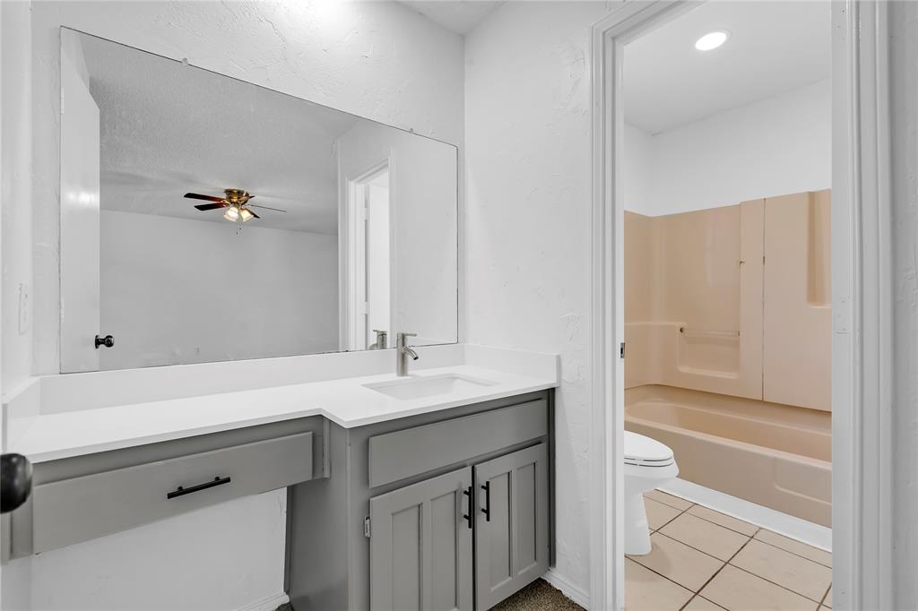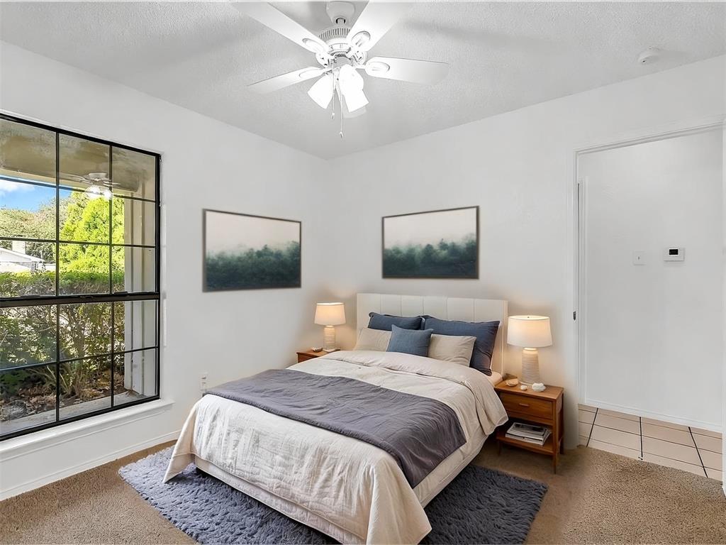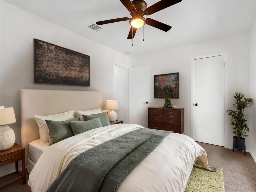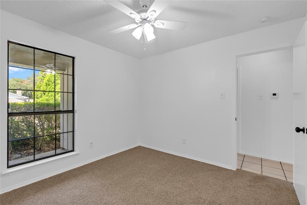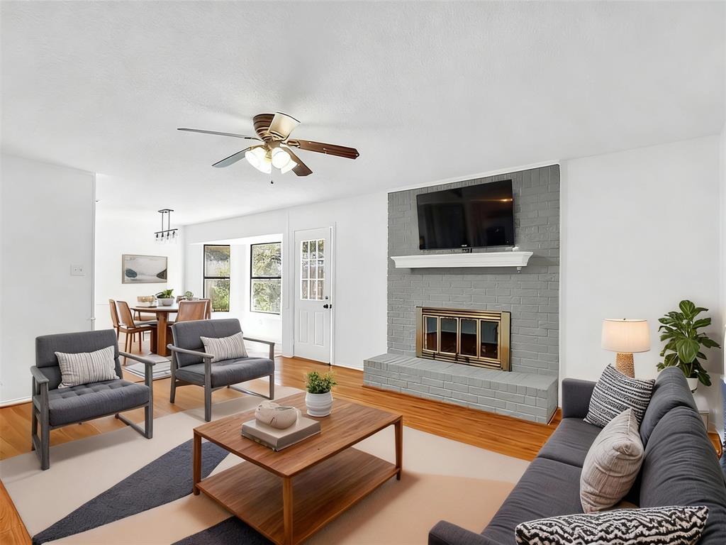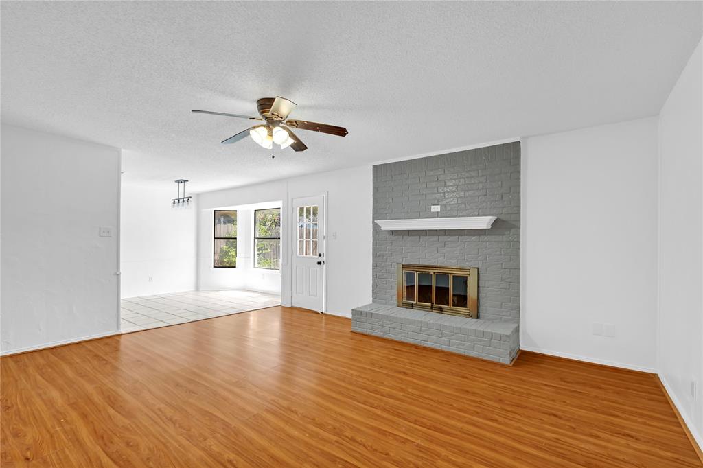 This move-in ready 3-bedroom, 2-bathroom home offers a functional layout with split bedrooms and spacious walk-in closets. The interior features fresh paint, new carpet in the bedrooms, tile in the hallways, and laminate flooring in the living room. A cozy fireplace anchors the living space, while a separate laundry room adds convenience.