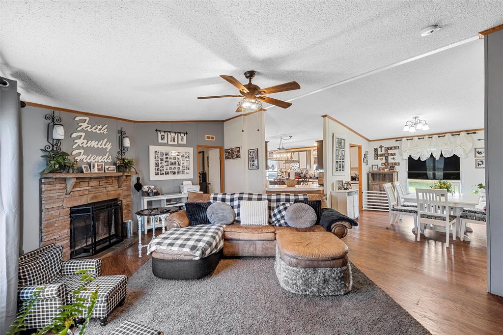 Escape to peaceful country living with this spacious 3-bedroom, 2-bath manufactured home situated on just under an acre of land. Offering 1,568 square feet of well-designed living space. Inside, you’ll find rural charm and a wood burning fireplace. Step outside and enjoy all the space and extras this property provides. Two storage sheds offer ample room for tools and equipment—one is wired with electricity, making it perfect for a workshop or hobby space. There's also a convenient RV hookup. With nearly an acre of land, and no restrictions, there’s room to garden, play, or simply relax and enjoy the quiet country setting. Whether you’re unwinding on the front porch or hosting a backyard barbecue, this property offers the space and freedom you’ve been looking for. The sellers still have several boxes of flooring to finish out the bedrooms. The HVAC unit was just replaced last year!