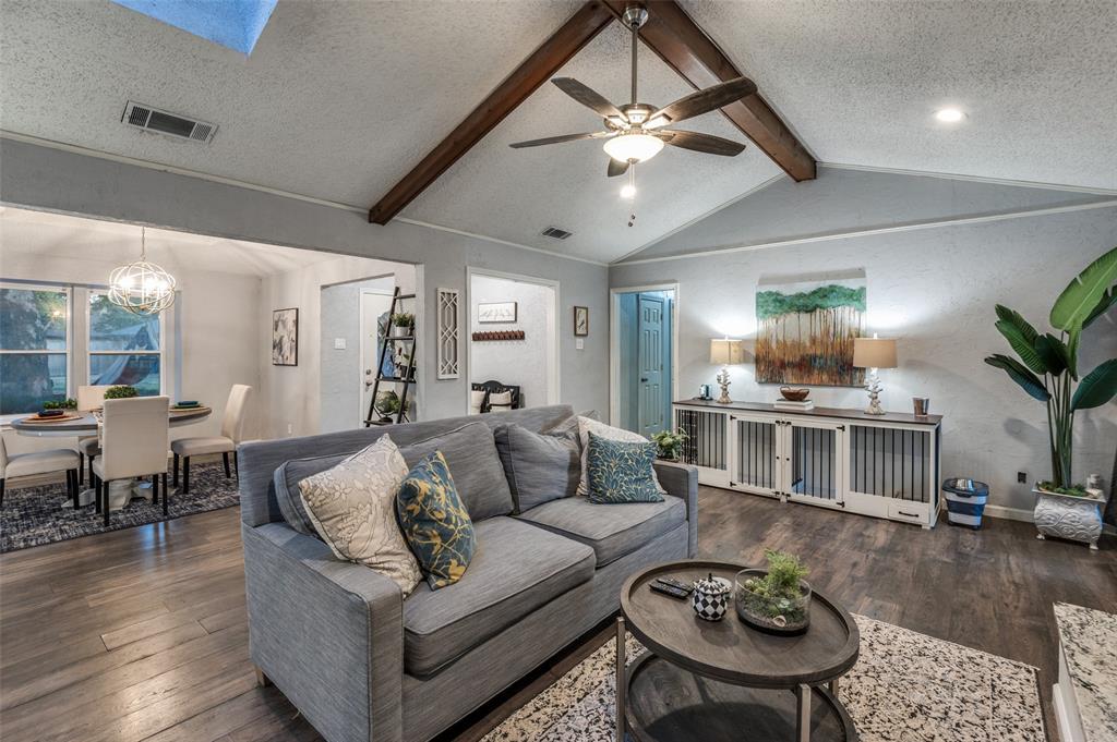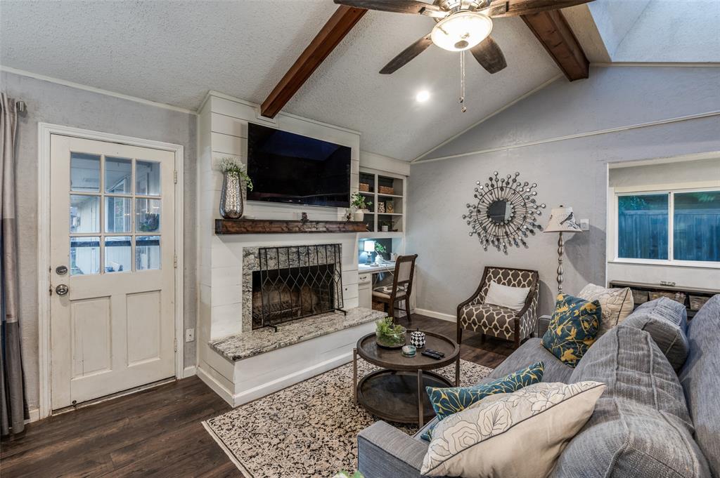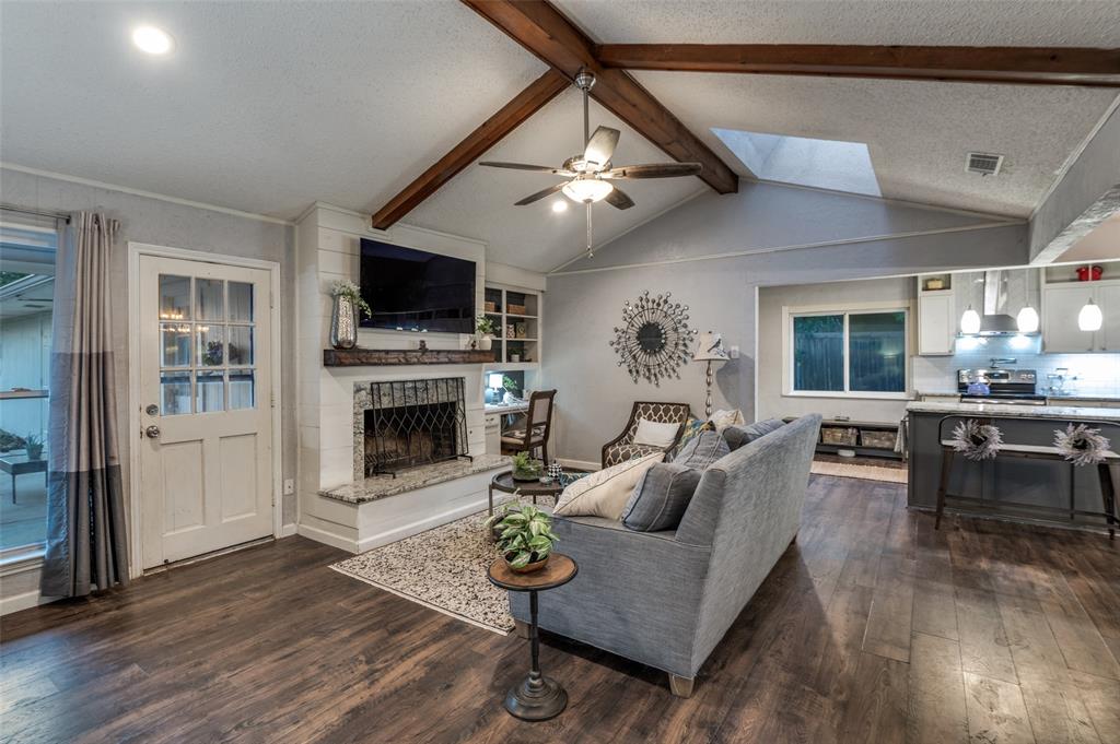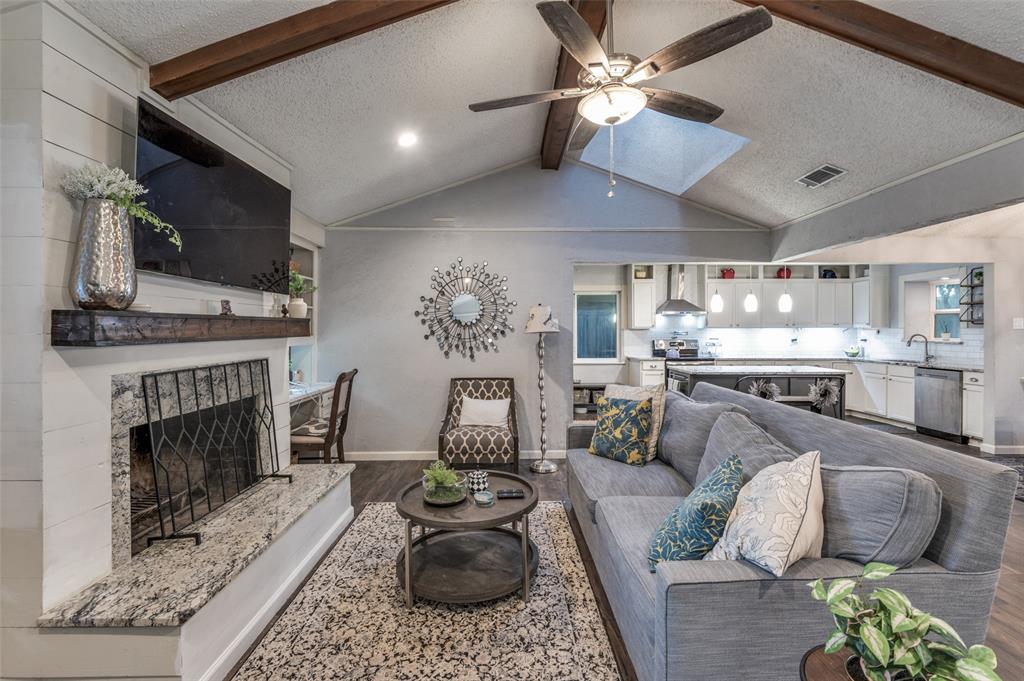 Step inside to a spacious vaulted living area highlighted by a striking fireplace, charming skylight, and abundant natural light through brand-new windows. The open kitchen and dining seamlessly connect—perfect for large gatherings and entertaining. The kitchen shines with granite countertops, subway tile backsplash, stainless steel appliances, and thoughtful extras like a potfiller, ceiling-height cabinetry, and abundant storage.