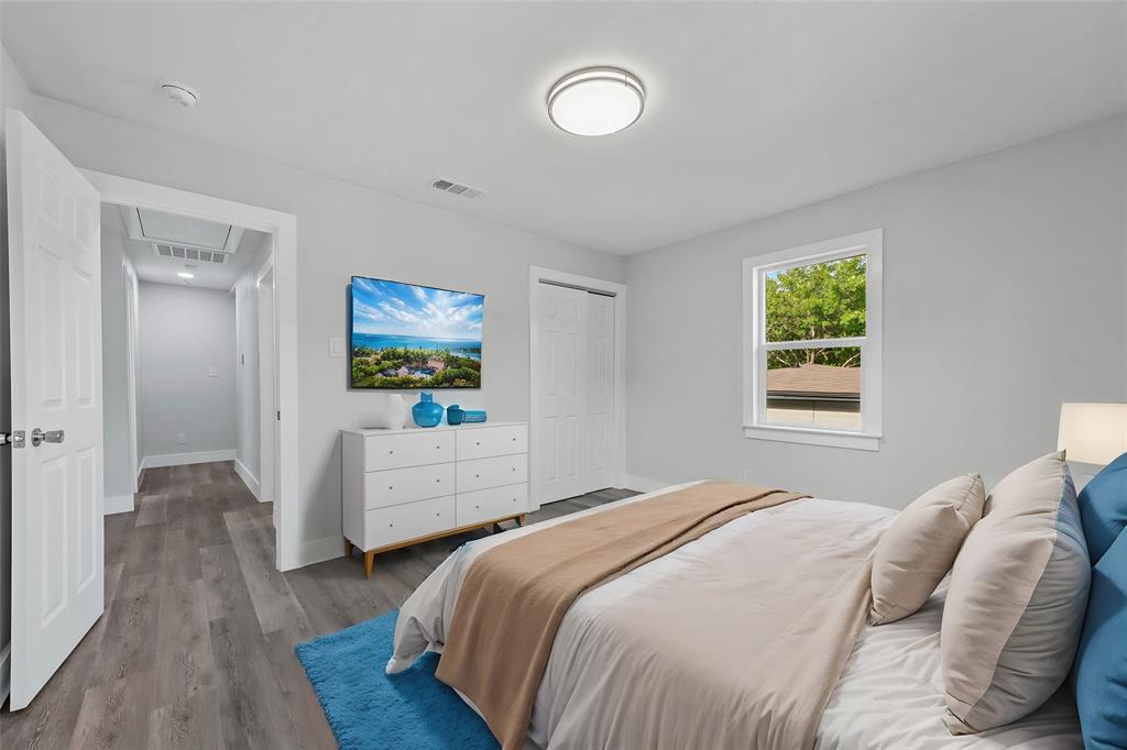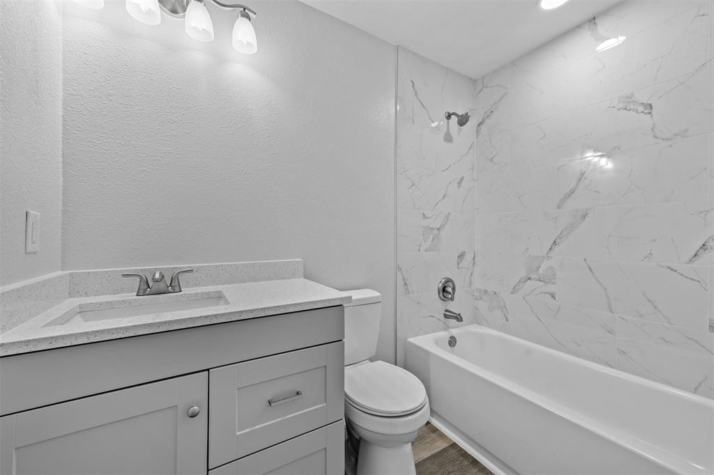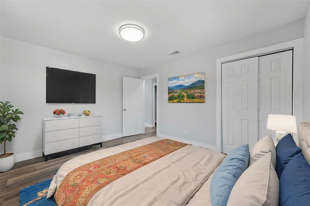 In the master bathroom, you'll find a sleek shaker-style vanity with white quartz, a designer mirror, a stunning shower, and a brand-new toilet. The second bathroom has been updated with fresh tile in the bathtub, new quartz countertops, and new toilets in both bathrooms. Every fixture in the house has been replaced, and the exterior has been fully repainted with cedar accents that perfectly complement the interior's modern style.