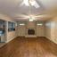 The warm family room centers around a cozy brick fireplace and is complemented by a flexible formal space that can serve as a dining or living room. The chef-friendly kitchen includes stainless steel appliances, a breakfast bar, tile backsplash, and generous cabinet and counter space ideal for meal prep and hosting.