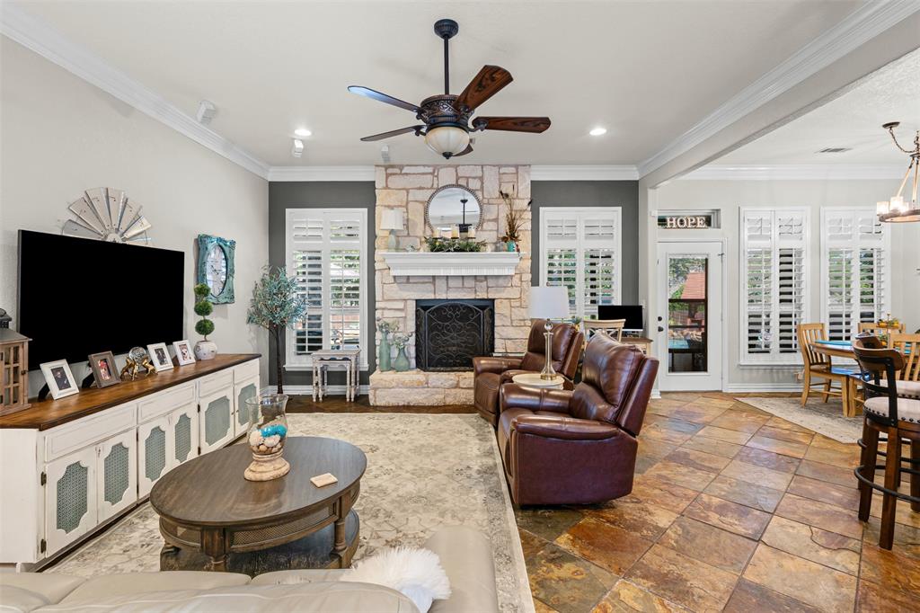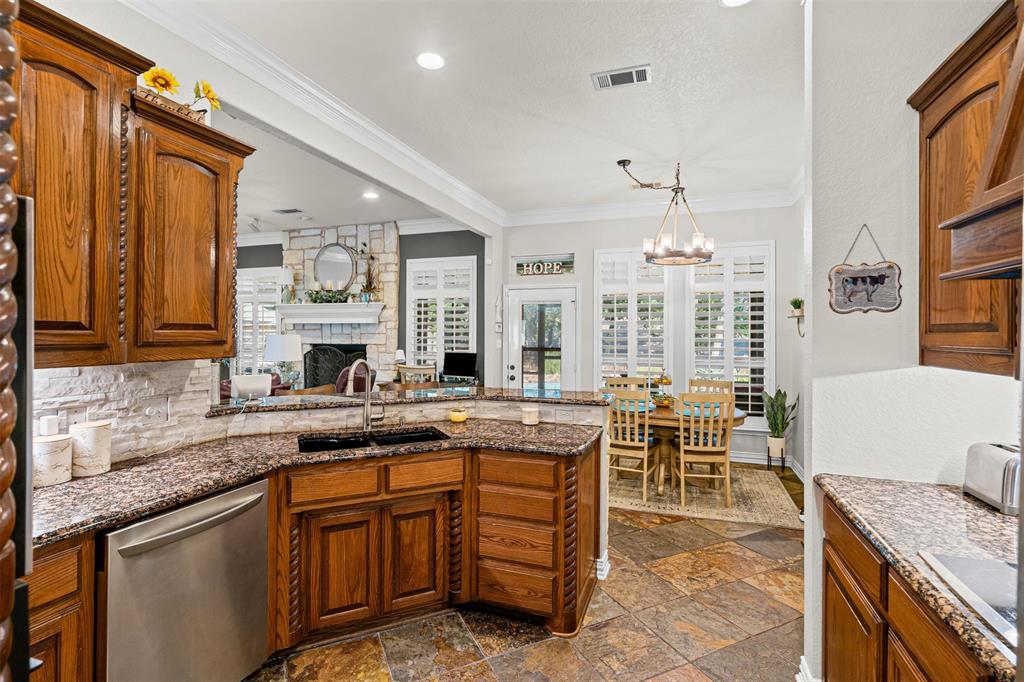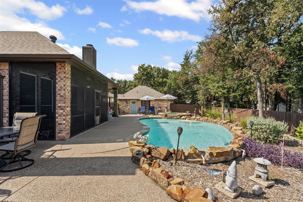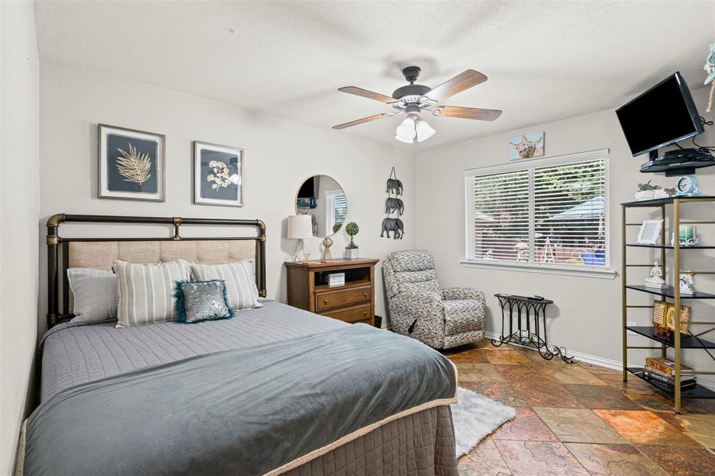 Located in the gated golf community of DeCordova Bend Estates, this home combines modern updates with resort-style living. The interior features slate floors, granite countertops, stainless steel appliances, a double oven, updated light fixtures, and plantation shutters, all anchored by a wood-burning rock fireplace. Solar screens add efficiency and comfort, while the spacious primary suite offers its own fireplace for a private retreat. Outdoor living shines with a screened-in porch overlooking the inground pool. In 2020 the pool has a complete renovations with new pool heater, automation, replastered, and new coping. Additional highlights include new hot water heaters. Perfect driveway booasts room for boat parking or an RV pad with a dump station, extra parking with a two-car carport. Another bonus feature is a 576 sq ft guest house complete with a new kitchen and full bath. Perfect for guests or office. Wood fence recently restained in 2019.
