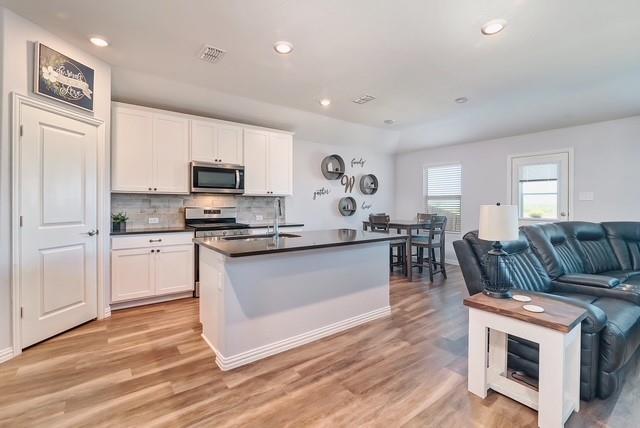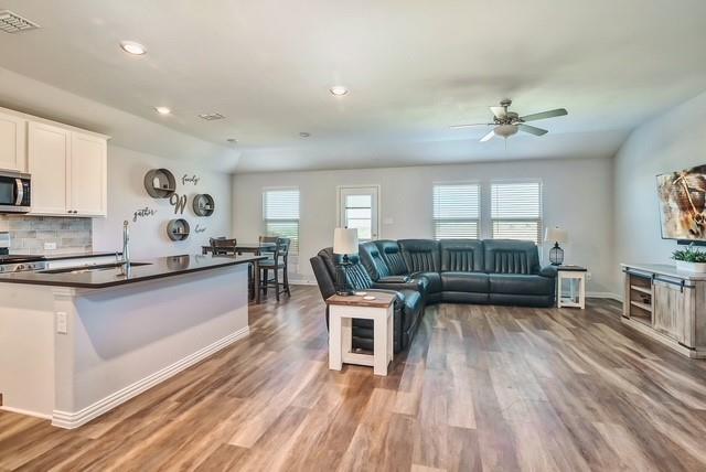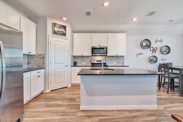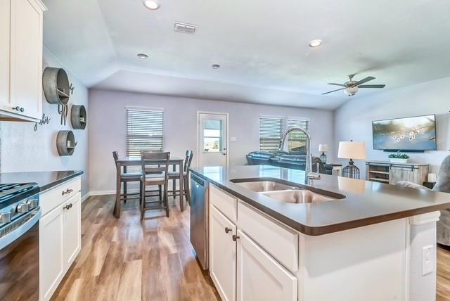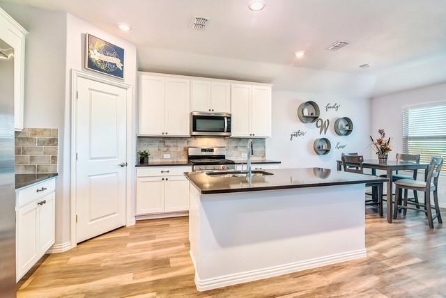 Seller offering $5,000 in concession toward closing costs. Welcome to this charming 3-bedroom, 2-bathroom home in the Trinity Crossing community of Forney. This one-story home offers a bright open-concept layout, perfect for both daily living and entertaining. The kitchen is a standout, featuring a spacious island, abundant cabinetry, gas range, and walk-in pantry—all seamlessly connected to the dining area and large living room. LVP flooring flows through the common spaces, adding both style and durability. The private primary suite includes an en suite bath with dual sinks, walk-in shower, and a generous walk-in closet. Secondary bedrooms are thoughtfully split from the primary and share a full bath, providing comfort and convenience. Step outside to enjoy a spacious backyard with an open patio, ideal for relaxing evenings or weekend gatherings.