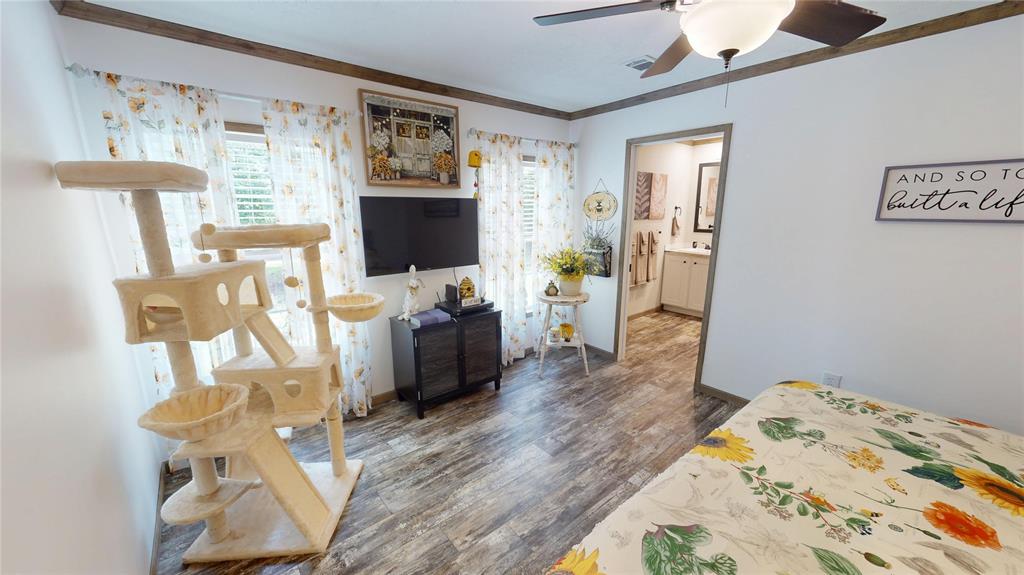 Seller has adjusted the price due to pending relocation commitments, creating an excellent opportunity that's perfect for Winter Texans or year-round living. Enjoy beautiful sunrises and sunsets from your own property with this nearly brand-new manufactured home just built in November 2024. Offering a stunning water view of Lake Palestine and nestled in a friendly golf cart accessible neighborhood, this 3-bedroom, 2-bathroom home, situated near the end of a quiet cul-de-sac on .43 acres, blends comfort, efficiency, and style. Inside, you’ll find a fully taped and textured interior with crown molding throughout, an open-concept design, and like-new, energy-efficient appliances. Premium upgrades include an entertainment center, upgraded windows, detached carport, and a hybrid heat pump water heater system for substantial energy savings. The master bedroom has a walk-in closet, and the living room features a beautiful tray ceiling with beams. The home is solar-ready and comes with peace of mind thanks to an extended 5-year warranty that begins after the standard 1-year warranty expires. Some furniture and décor may be included with the home—please ask for a detailed list of available items. This makes the property an easy, move-in-ready opportunity. The exterior is beautifully landscaped with mature shade trees, a charming, screened gazebo on the deck with beautiful flower beds, and a very spacious backyard, perfect for the garden enthusiast. There’s also a fenced area for pets and an underground storm shelter with a 10-year warranty for added security. Bring your boat too—there is a public boat ramp just down the road. With its prime location, modern upgrades, extended warranty, and nearly brand-new condition, this home offers the perfect combination of lake living, comfort, and peace of mind.