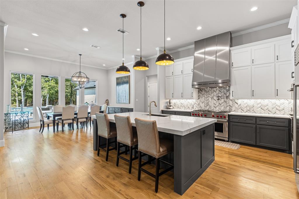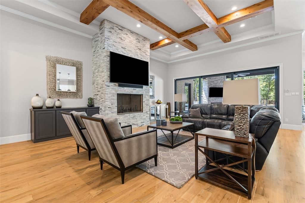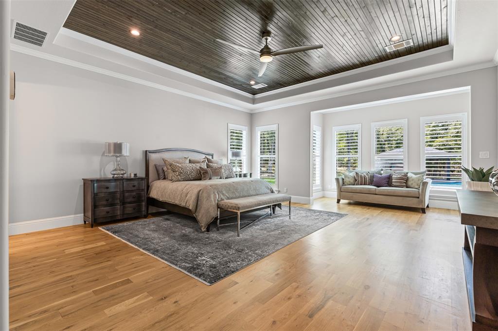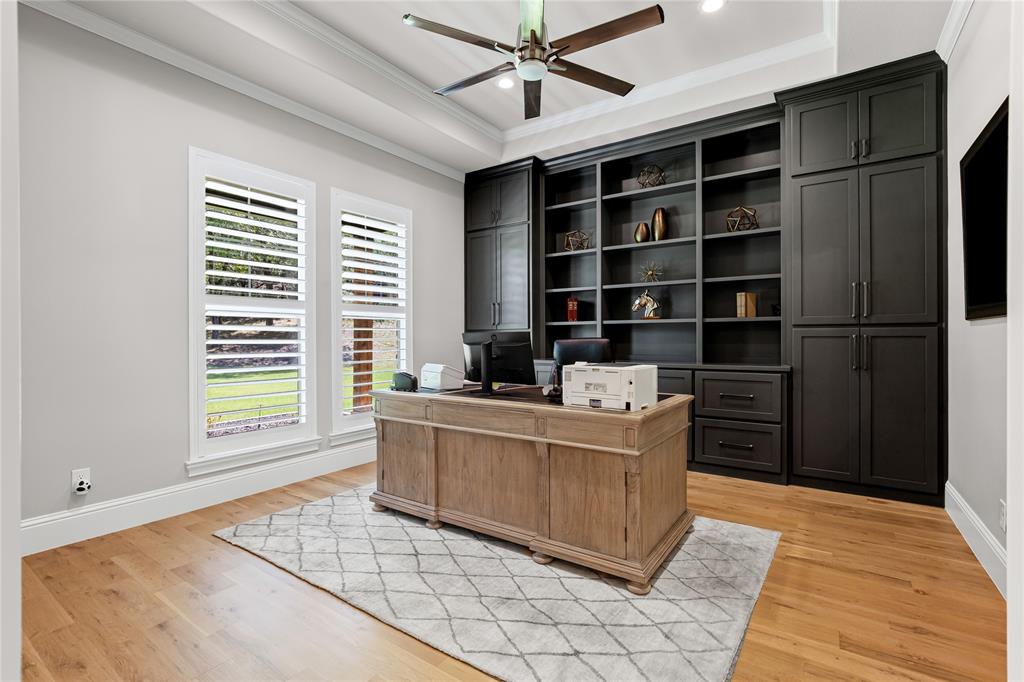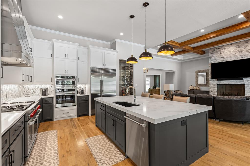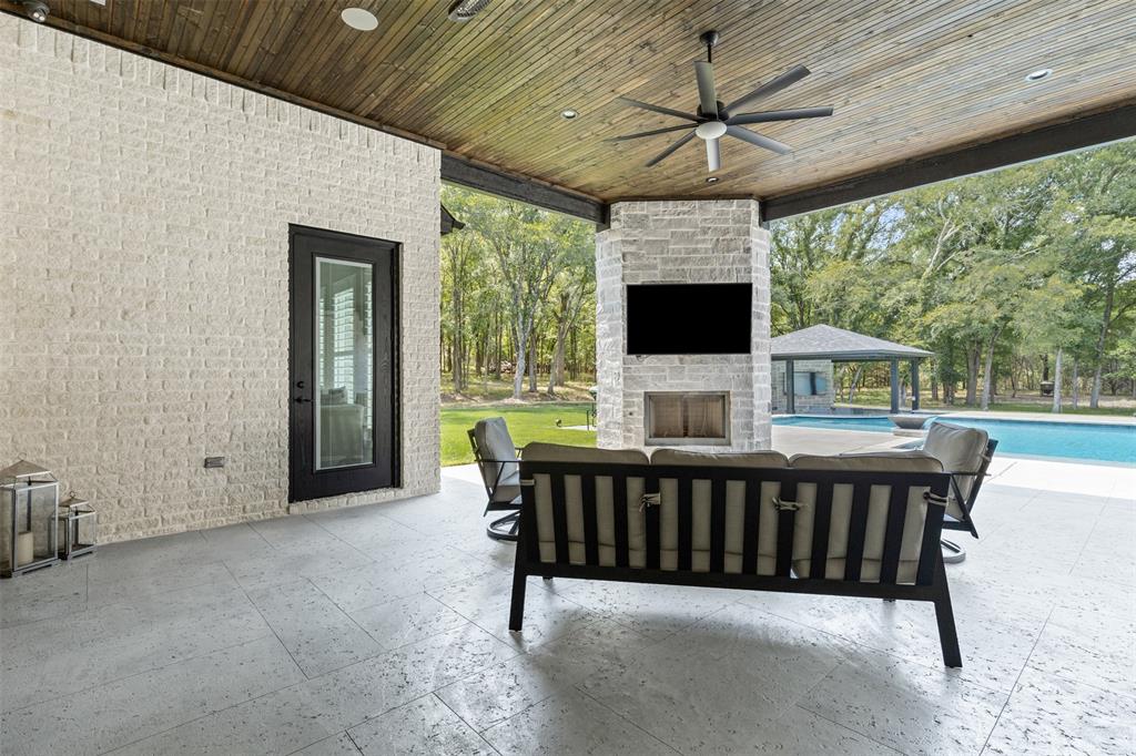 Luxury touches include plantation shutters, Sonos indoor, outdoor audio, AV closet, and dual gas, wood fireplaces. The oversized 4-car garage offers an underground storm cellar.