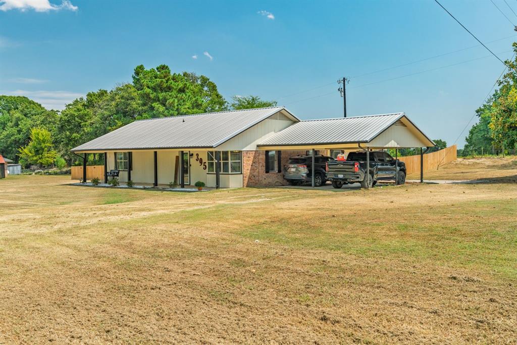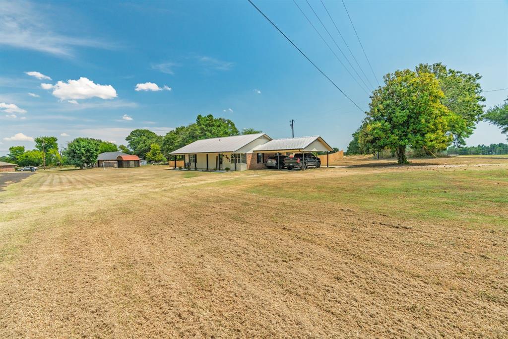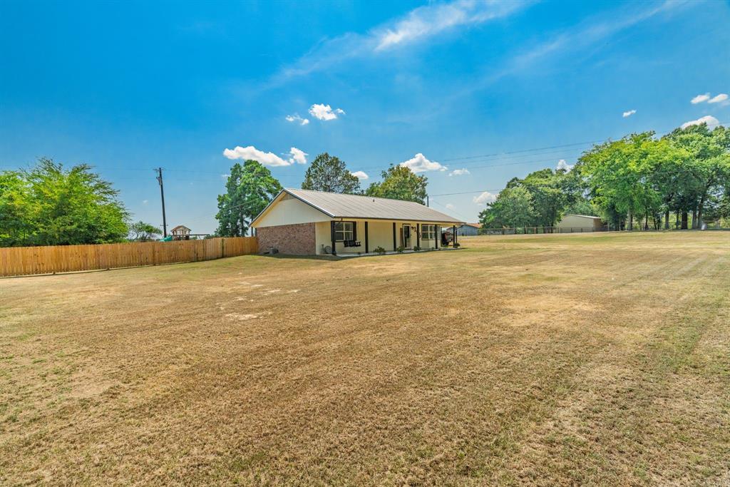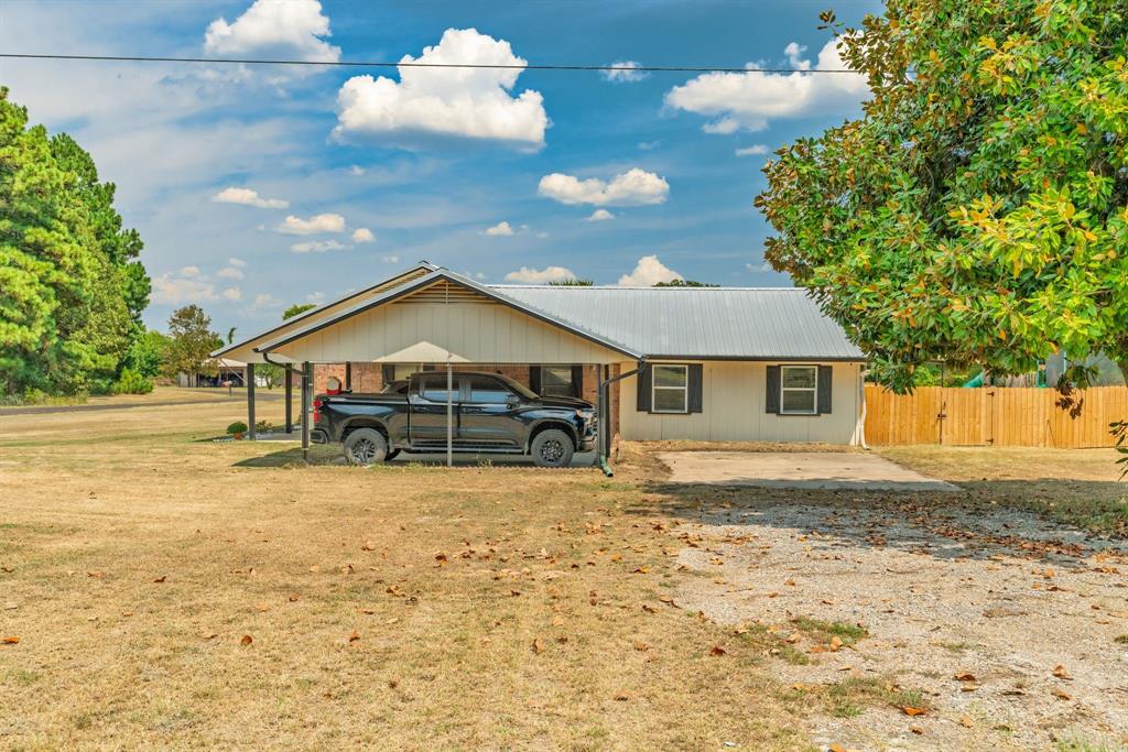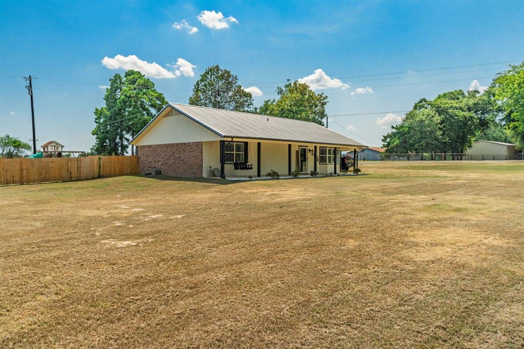 Charming county home on an acre! 3 Bed 2 Bath home on a county road and corner lot. Enjoy the view as you sit on the front porch that extends the length of the home! Kitchen offer ample storage space with multiple cabinets & overlooks the large living room and opens to the eat in kitchen. This is a prefect layout for a practical lifestyle with no wasted space! Kids? Pets? Vinyl wood & tile flooring throughout makes clean up a breeze. The open floor plan allows for lots of spaces to spread out. Spacious primary bedroom includes ensuite bath with new paint. Both additional bedrooms are good sized and have walk-in closets, great for extra storage. Neutral finishes throughout house make it a perfect opportunity to add your on touches and truely make this house your home! Large covered back patio is perfect for entertaining and opens to the fully fenced back yard with new privacy fence on 2 sizes. Back fence line is barbed wire that opens to the field. Storage shed stays as well. 2 covered carport spaces keep your cars dry and protected from the Texas weather. Plenty of room to plant a garden or have a swimming pool. SSISD- 3 mi from I-30.