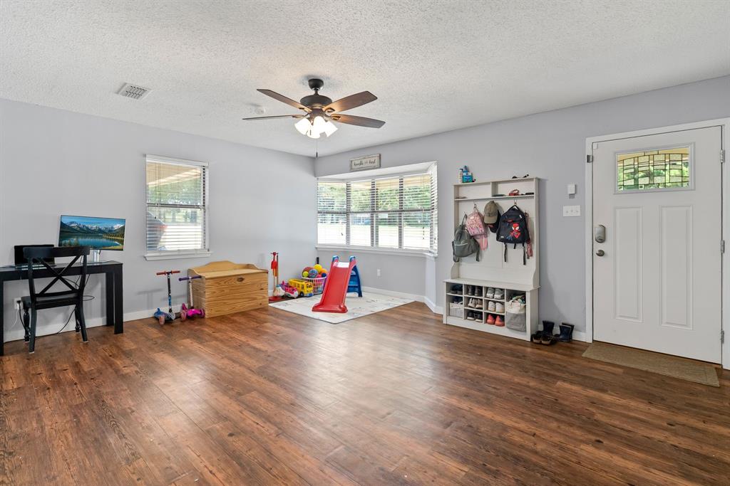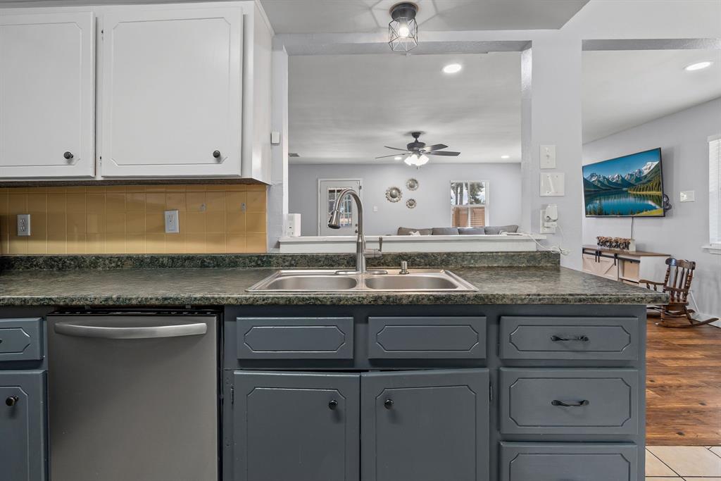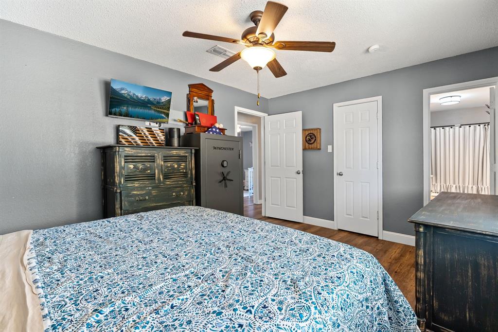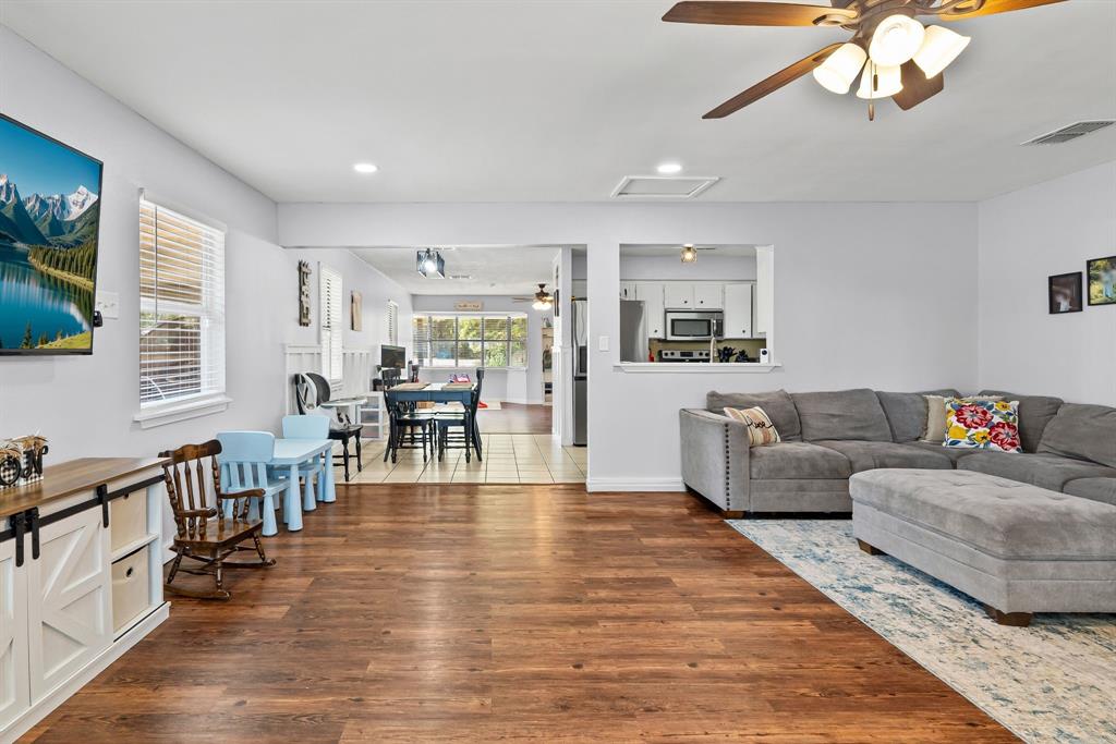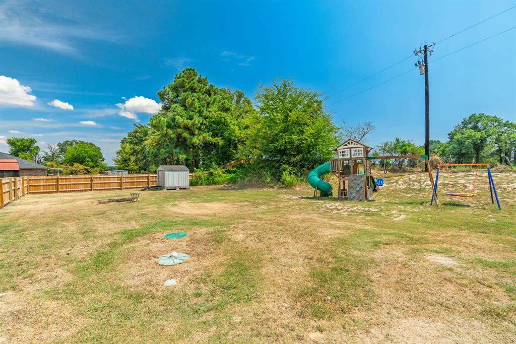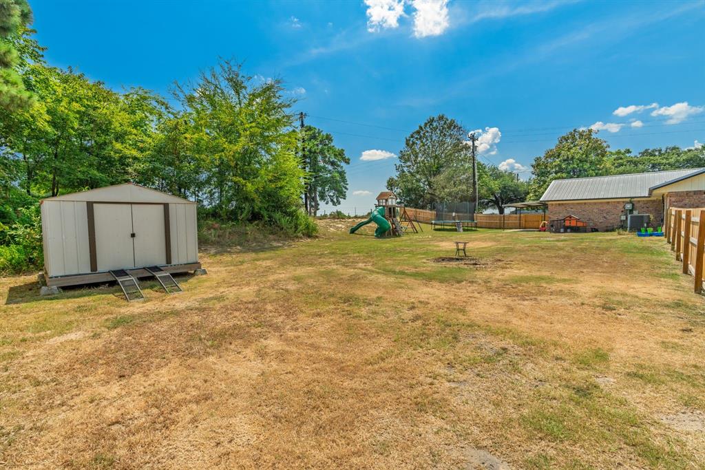 Charming county home on an acre! 3 Bed 2 Bath home on a county road and corner lot. Enjoy the view as you sit on the front porch that extends the length of the home! Kitchen offer ample storage space with multiple cabinets & overlooks the large living room and opens to the eat in kitchen. This is a prefect layout for a practical lifestyle with no wasted space! Kids? Pets? Vinyl wood & tile flooring throughout makes clean up a breeze. The open floor plan allows for lots of spaces to spread out. Spacious primary bedroom includes ensuite bath with new paint. Both additional bedrooms are good sized and have walk-in closets, great for extra storage. Neutral finishes throughout house make it a perfect opportunity to add your on touches and truely make this house your home! Large covered back patio is perfect for entertaining and opens to the fully fenced back yard with new privacy fence on 2 sizes. Back fence line is barbed wire that opens to the field. Storage shed stays as well. 2 covered carport spaces keep your cars dry and protected from the Texas weather. Plenty of room to plant a garden or have a swimming pool. SSISD- 3 mi from I-30.