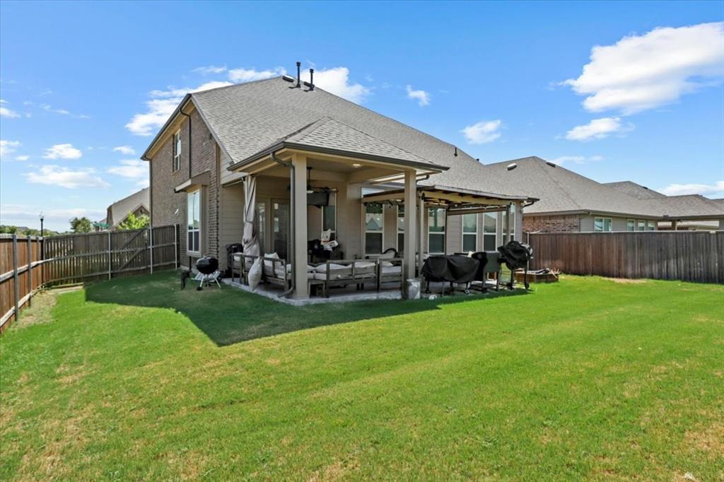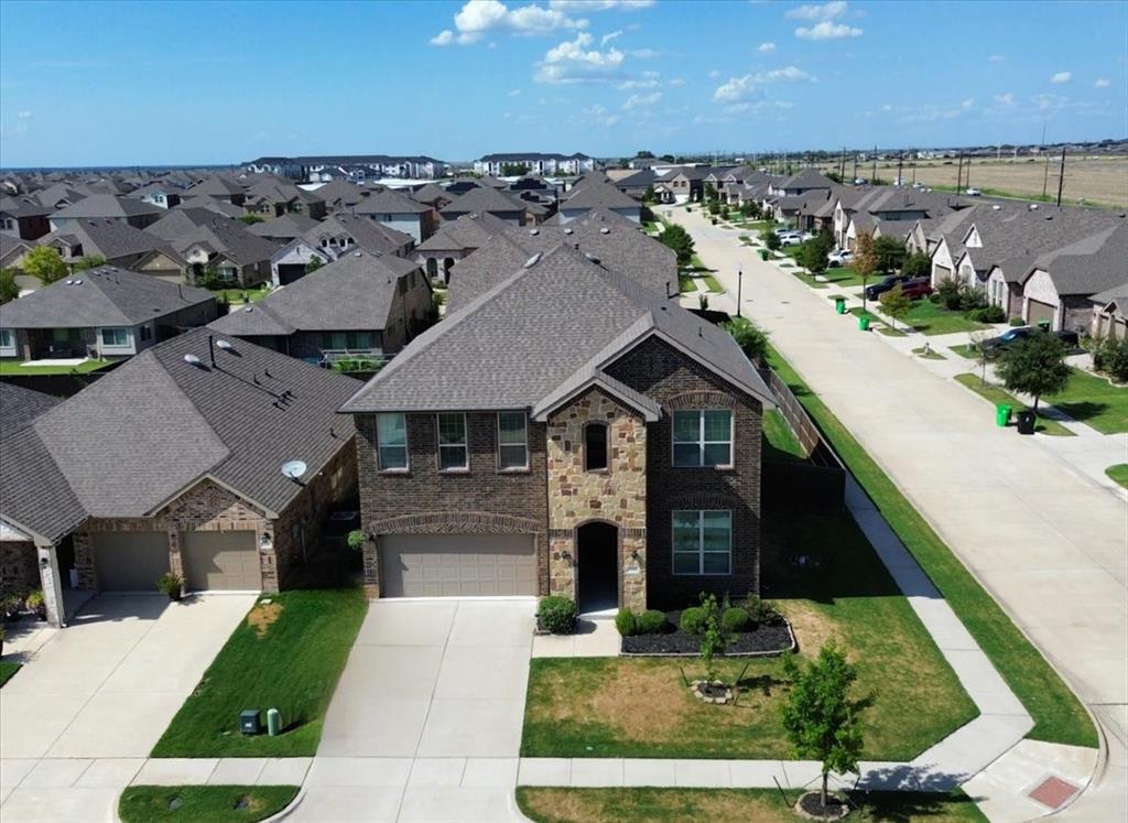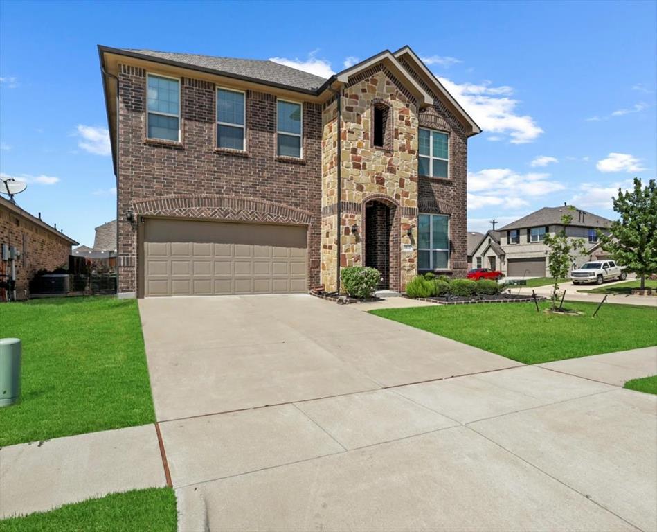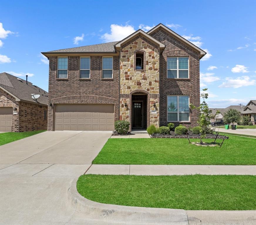 Outside, enjoy a beautifully designed exterior with brick and stone accents, a covered patio, and a private backyard ready for gatherings or relaxation. Additional features include an attached garage, energy-efficient systems, and access to community amenities that enhance the lifestyle experience. This home offers inviting curb appeal with its blend of brick and stone exterior accents, complemented by wood details and a covered front entryway. A neatly manicured lawn and clean landscaping enhances the welcoming appearance and provides both convenience and charm. The overall design creates a modern yet timeless look that stands out within the community. With its modern design, ample space, and prime location near shopping, dining, and top-rated schools, this home is a true gem in Aubrey!