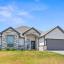 Retreat to the spacious primary suite features an ensuite bath with dual vanities, walk-in closet, and tiled shower with wall-to-wall shampoo shelf. Two additional bedrooms share a beautifully finished bath, while upgraded lighting and granite countertops add a polished touch throughout. A laundry room and oversized 24’ deep garage provide extra convenience.