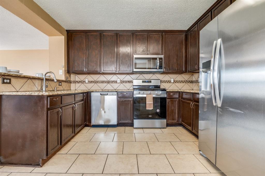 Home chefs will love the kitchen with granite countertops, stainless steel appliances, a gas cooktop, and excellent storage space. The family room is open to the kitchen and overlooks a large, fenced backyard, offering endless possibilities for outdoor activities and relaxation.