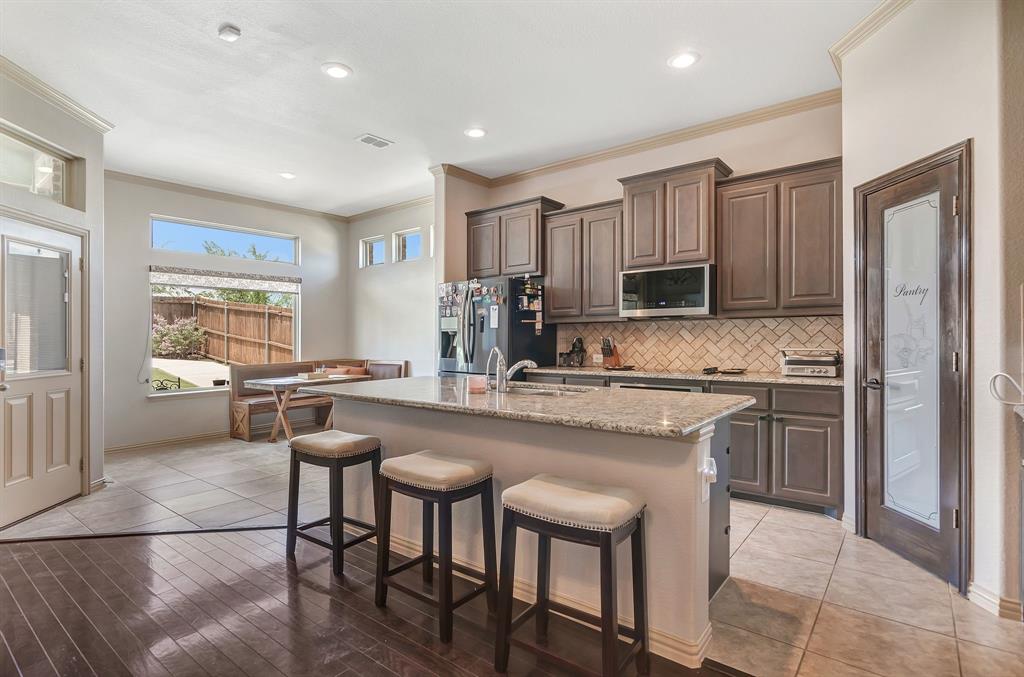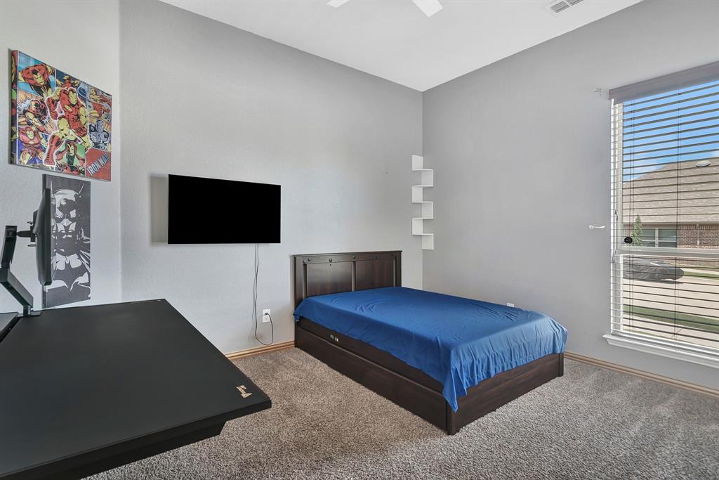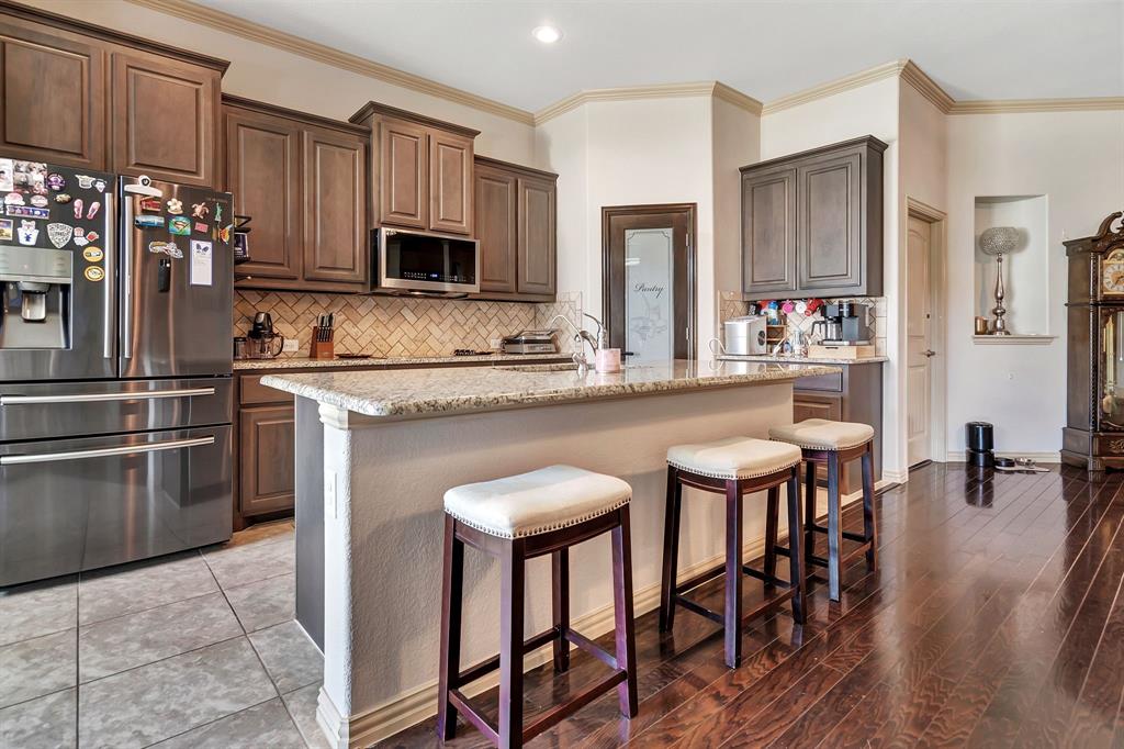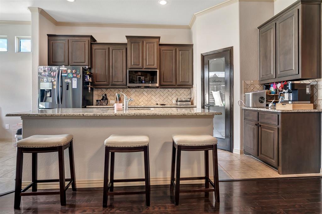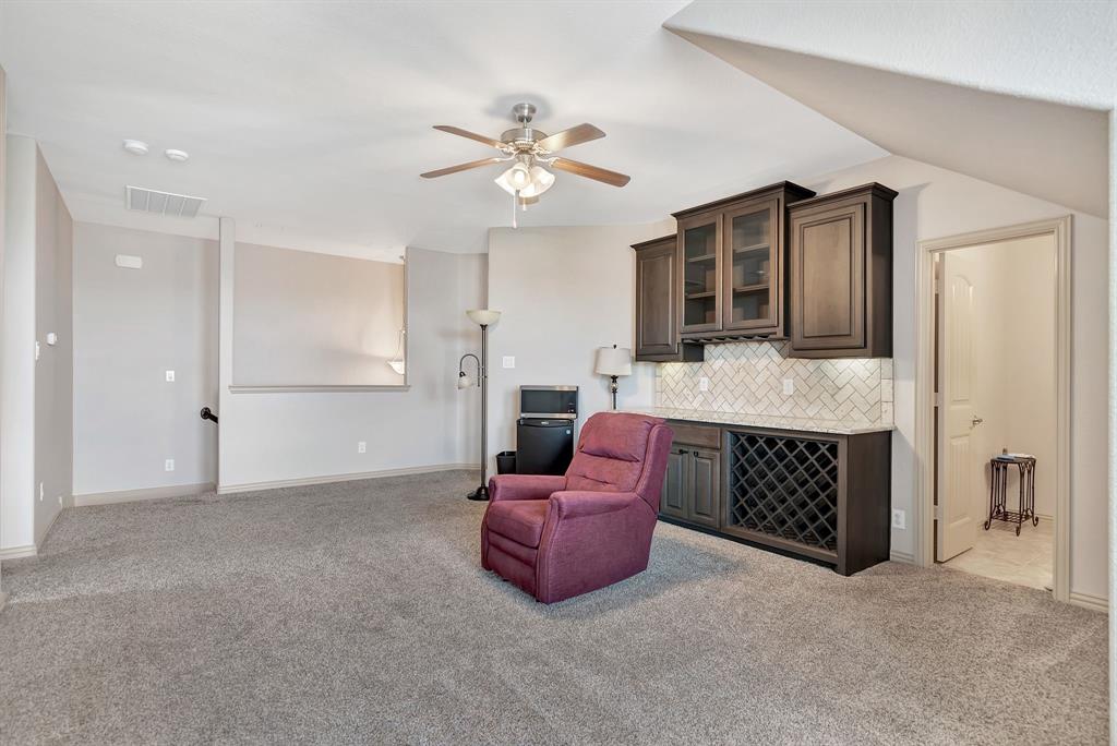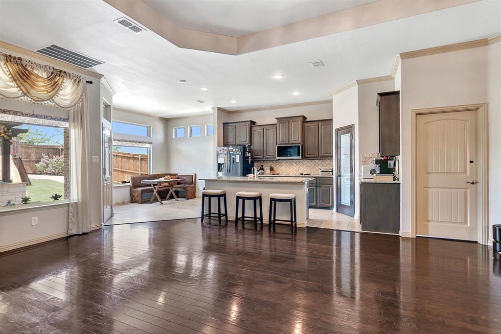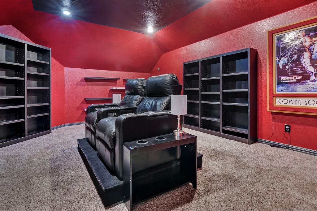 Lovely home located within the Northwest ISD. This home has too many features to list here, so an extensive “Property Features & Upgrades” is uploaded into the MLS Supplements for your review. Beautiful curb appeal leads you into this home. The entry opens to flowing wood floors throughout most of the downstairs. The dedicated office is off to the right with French doors that could be a 5th bedroom if needed. All bedrooms are carpeted & all wet areas are tiled. A secondary bedroom is down for family or guest with a full bath close by. The dining & family rooms are open to the kitchen & breakfast nook for entertaining family & guests. The kitchen & breakfast have tiled floors, granite island & counter tops, 42 inch cabinets, walk-in panty, electric cooktop & oven. The family room has a brick wood burning fireplace with mantel & gas starter. The large primary bedroom is off the family room with an en-suite. The primary bath has a separate shower, garden tub, two sinks, linen closet, enclosed toilet area for privacy & huge walk-in closet that will delight all. The upstairs has two secondary bedrooms, one full bath, one half bath, game room & media room. The game & media rooms are ready for those family events of entertaining, games & movies. The game room also has a dry bar with built-in cabinets. Going outside to the backyard oasis is a delight. The outside has covered patio, pergola, built-in grill, beverage cooler, concrete walk-way around the perimeter & full-size play center for the kids, with plenty of area for the pets to roam. Party, party, party. The garage has custom epoxy floors & custom wall-mounted tool rack. This home is located close to major roads, restaurants, shopping & schools. A must see!