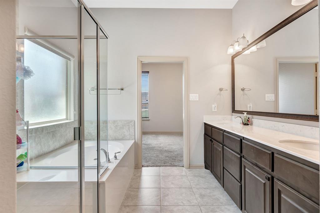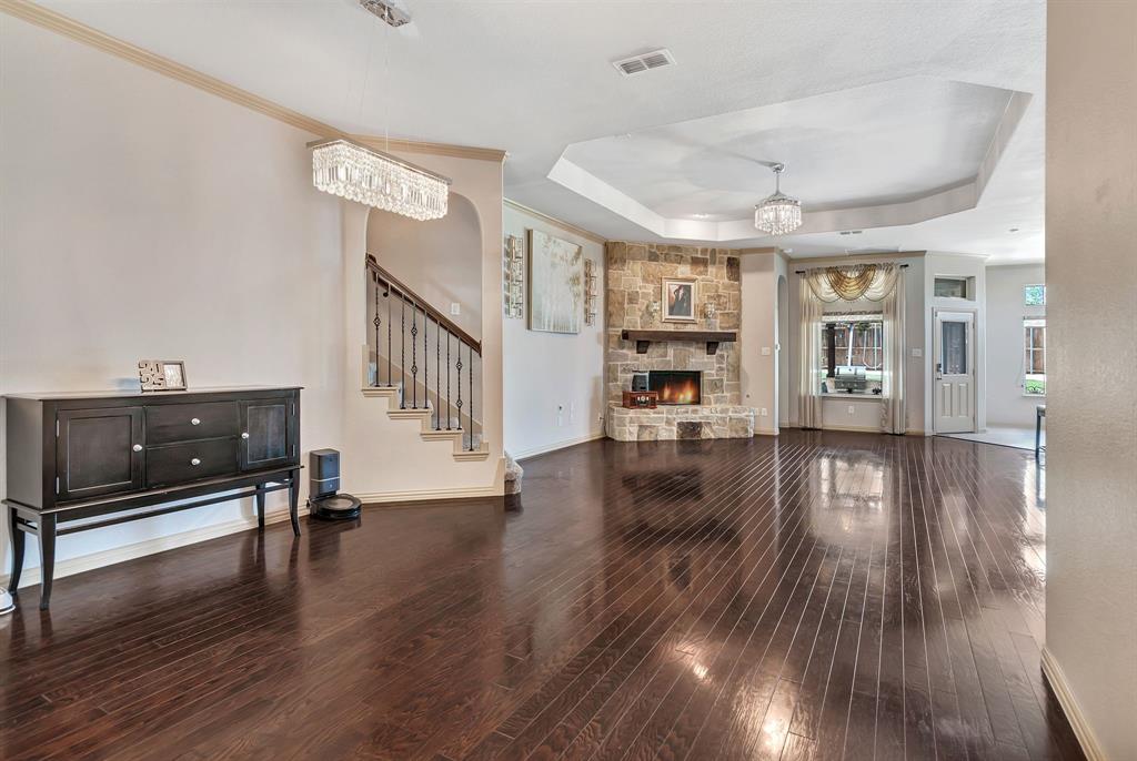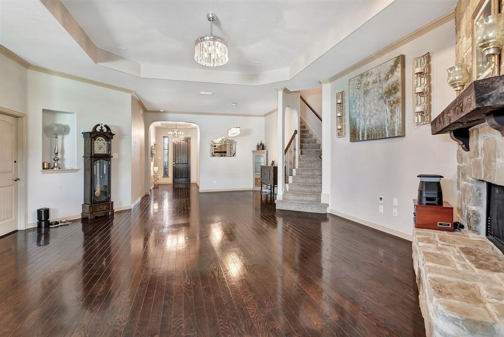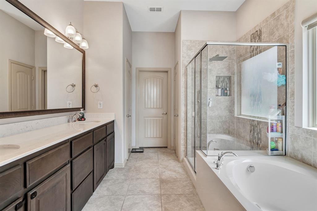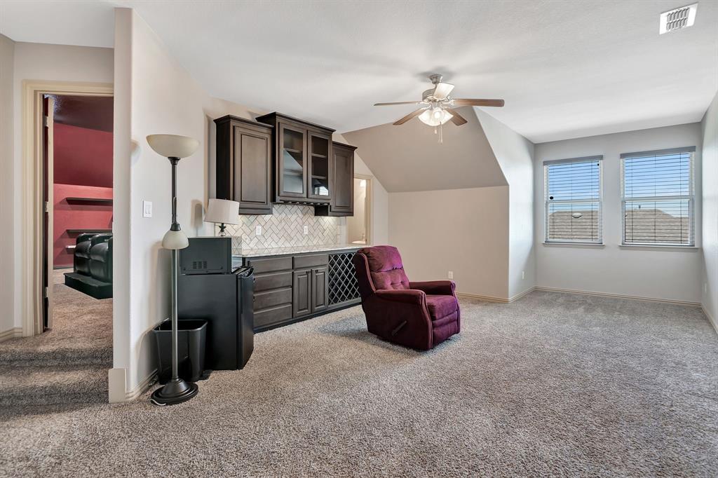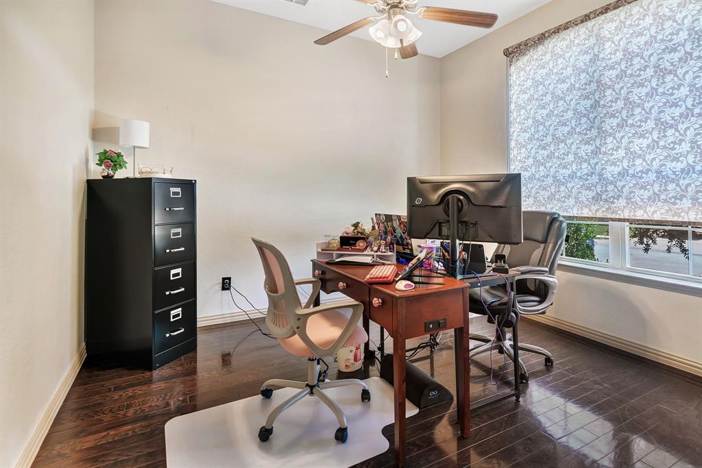 Lovely home located within the Northwest ISD. This home has too many features to list here, so an extensive “Property Features & Upgrades” is uploaded into the MLS Supplements for your review. Beautiful curb appeal leads you into this home. The entry opens to flowing wood floors throughout most of the downstairs. The dedicated office is off to the right with French doors that could be a 5th bedroom if needed. All bedrooms are carpeted & all wet areas are tiled. A secondary bedroom is down for family or guest with a full bath close by. The dining & family rooms are open to the kitchen & breakfast nook for entertaining family & guests. The kitchen & breakfast have tiled floors, granite island & counter tops, 42 inch cabinets, walk-in panty, electric cooktop & oven. The family room has a brick wood burning fireplace with mantel & gas starter. The large primary bedroom is off the family room with an en-suite. The primary bath has a separate shower, garden tub, two sinks, linen closet, enclosed toilet area for privacy & huge walk-in closet that will delight all. The upstairs has two secondary bedrooms, one full bath, one half bath, game room & media room. The game & media rooms are ready for those family events of entertaining, games & movies. The game room also has a dry bar with built-in cabinets. Going outside to the backyard oasis is a delight. The outside has covered patio, pergola, built-in grill, beverage cooler, concrete walk-way around the perimeter & full-size play center for the kids, with plenty of area for the pets to roam. Party, party, party. The garage has custom epoxy floors & custom wall-mounted tool rack. This home is located close to major roads, restaurants, shopping & schools. A must see!