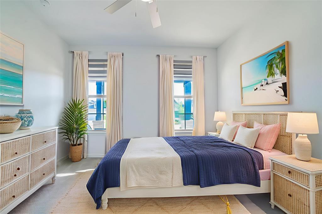 guest bedroom on the first floor, perfect for convenience and privacy. Upstairs, you’ll find three additional bedrooms, a