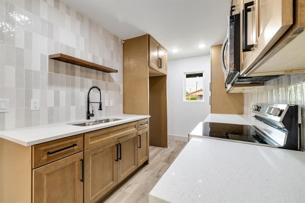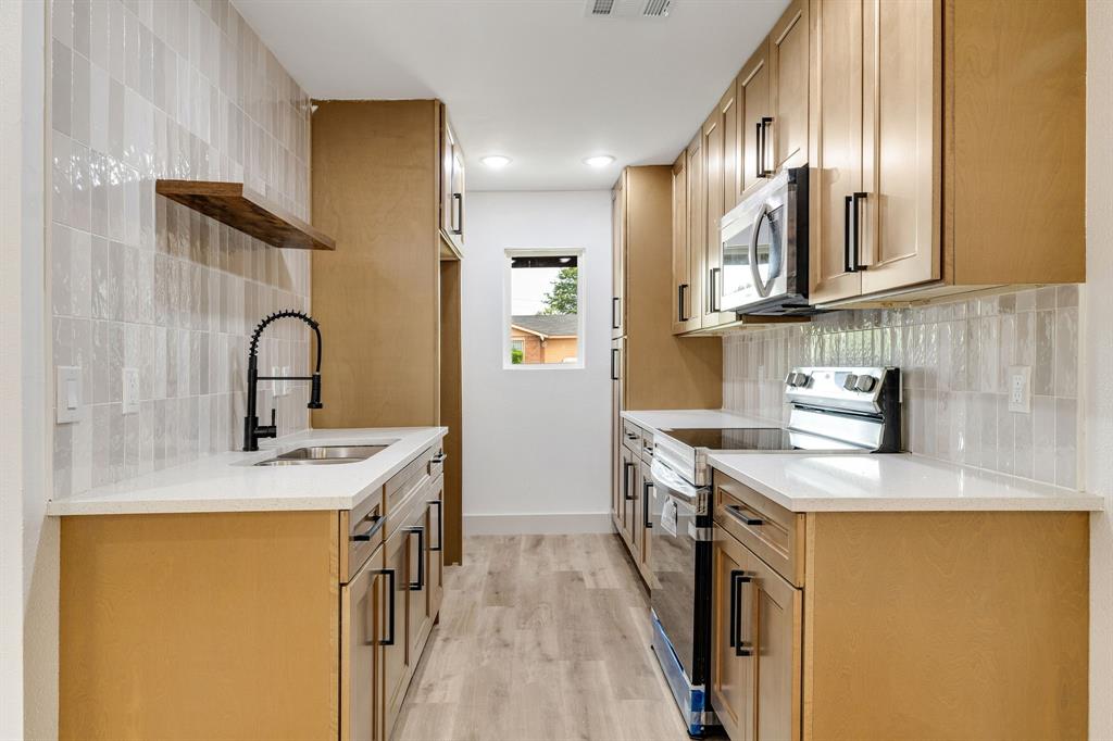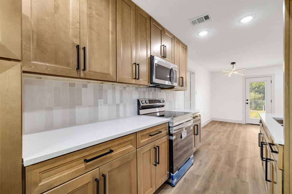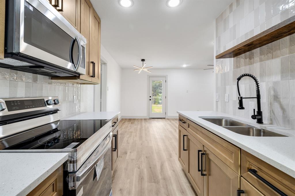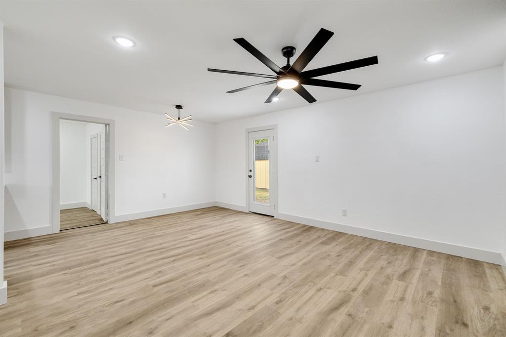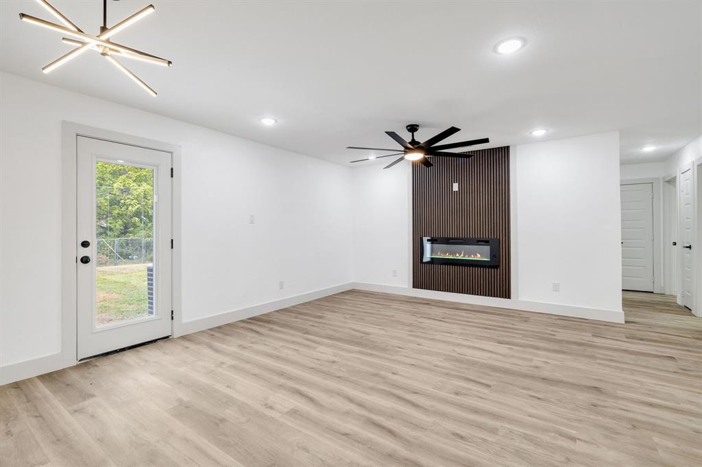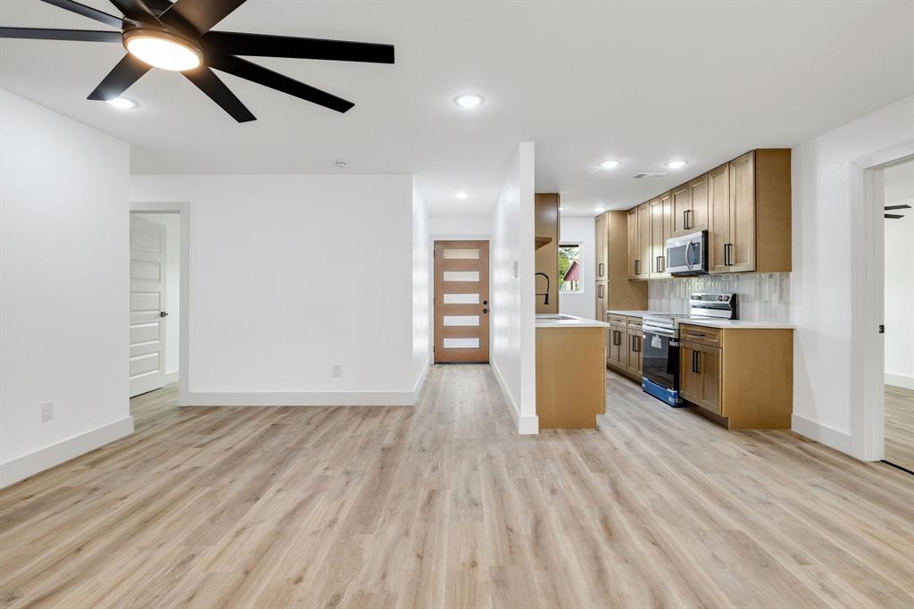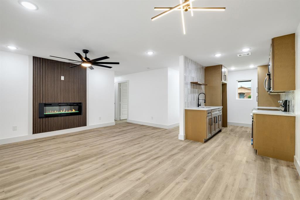 Welcome to this beautifully renovated home in Dallas, TX! This spacious 4-bedroom, 2 FULL bath property is conveniently located just 15 minutes from Downtown Dallas with easy access to I-20 and I-45 for a smooth commute. Shopping, dining, and everyday conveniences are all just minutes away, making this location ideal. Sitting on a large corner lot of nearly a quarter acre, this home offers plenty of outdoor space, including a huge backyard with alley access for added convenience—perfect for entertaining or weekend gatherings. Inside, you’ll find stunning updates throughout. The kitchen features brand-new stainless-steel appliances, white quartz countertops, modern cabinets, and luxury vinyl flooring. Both bathrooms have been completely remodeled with stylish finishes. The open concept living and dining area is highlighted by an elegant electric fireplace, serving as a beautiful focal point to bring the space together. This home blends modern style with functionality in a prime location—don’t miss the opportunity to make it yours!