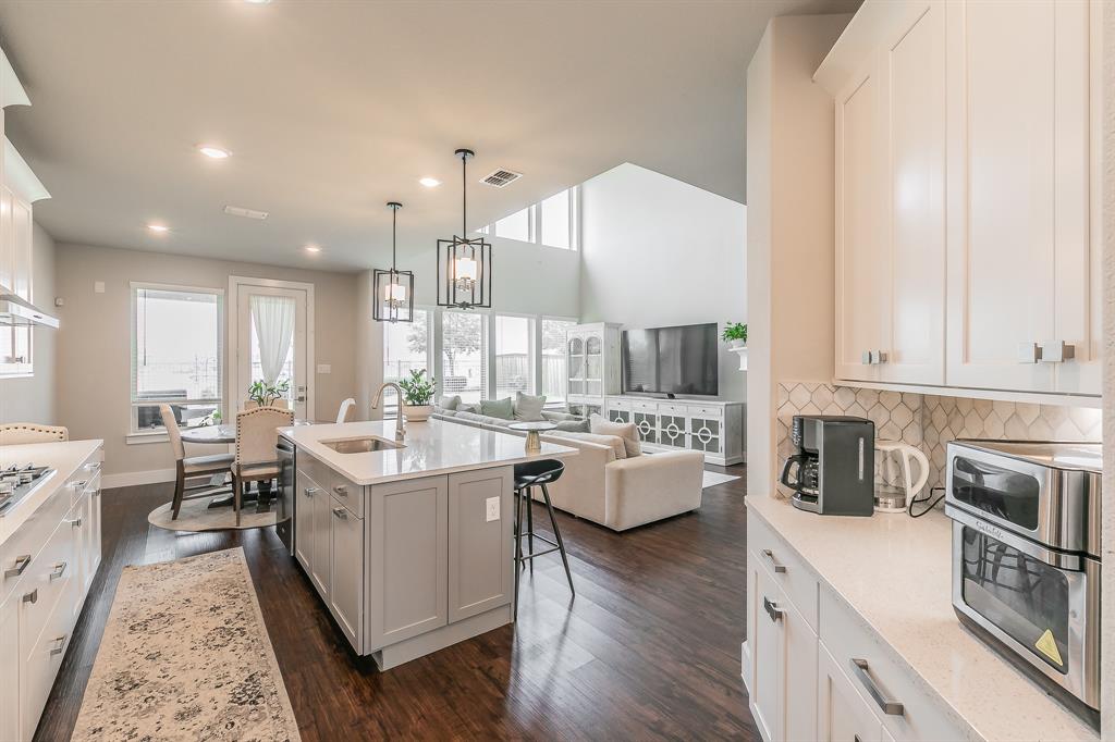 Beautiful and inviting 2020 build located in Prosper ISD. Harmonious flow in the kitchen featuring quartz countertops, coffee bar, and double oven. Plenty of natural light highlights the nicely done upgrades and engineered hardwood floors. Master suite downstairs, while upstairs features 3 bedrooms plus a flex space that can be used as media, office, or gym. Additional living space upstairs which includes an XL closet. Modern living at its finest!