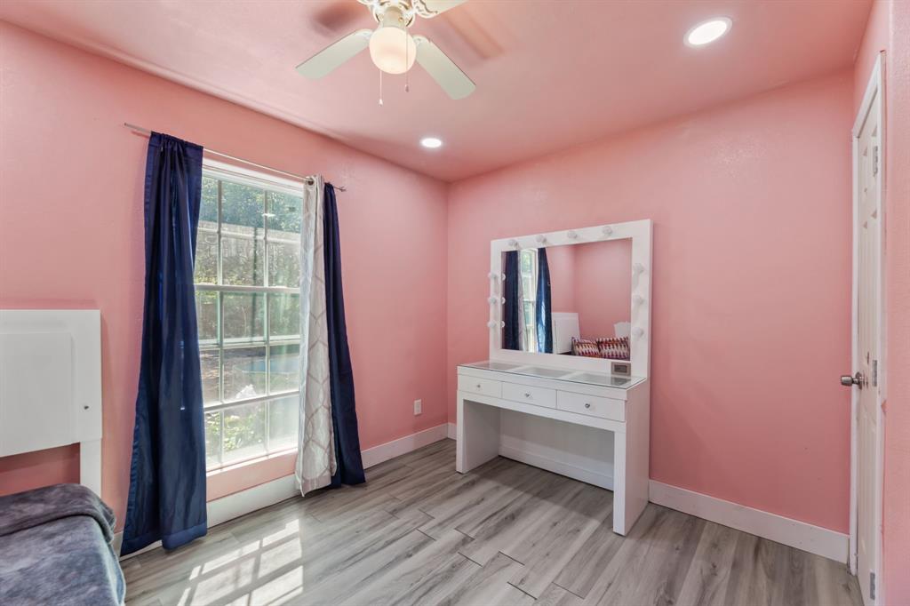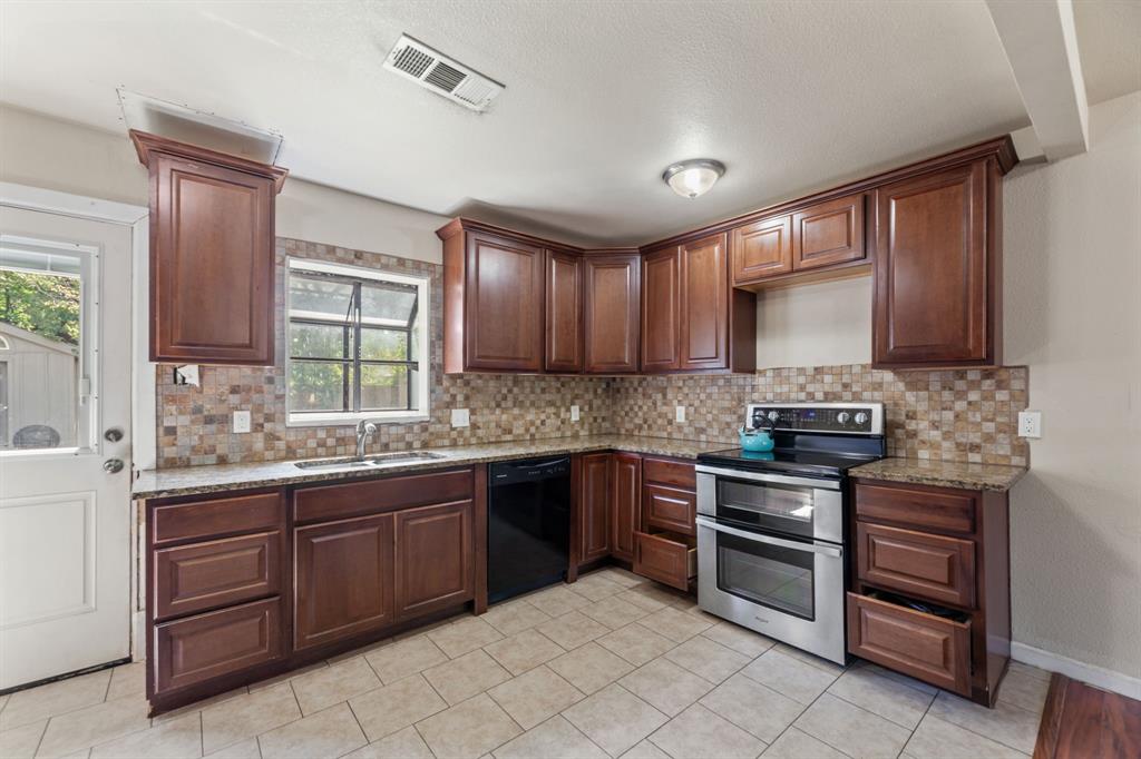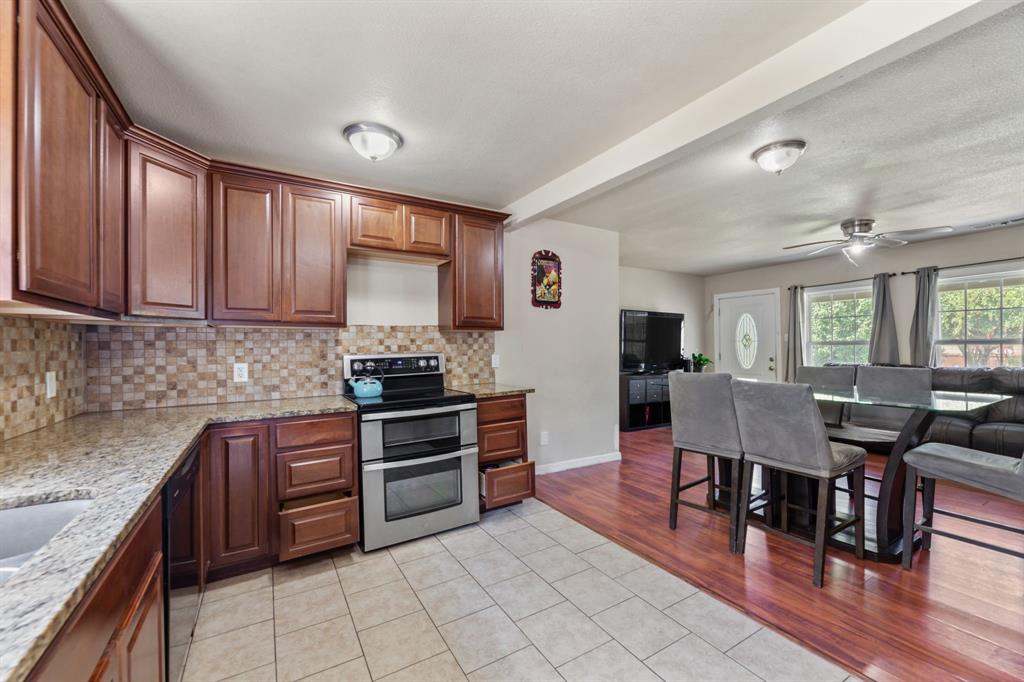 4-Bedroom Home with Secure Fencing, Flexible Living Space & Spacious Backyard! This property offers lasting peace of mind blending practical updates with modern living. Recently reinforced with completed foundation work and a newer roof. A brand-new cedar fence with a backyard entrance and wide driveway provides the perfect setup for work vehicles, tools, or additional parking. The front of the home is also secured with a classic wrought-iron fence, adding both curb appeal and extra security. Step inside to discover beautiful wood floors running throughout the home, complementing the open-concept design that seamlessly connects the kitchen, dining, and living areas. The kitchen is a true highlight, including timeless granite countertops, real wood cabinets, and a designated coffee bar area—perfect for entertaining guests. The split floorplan ensures privacy, with the primary suite set apart from the additional bedrooms and featuring an ensuite full bathroom. The 4th bedroom addition is ideal for larger families or can easily be transformed into a home office, workout space, or visitor suite. The true standout is the backyard—a spacious retreat designed for both relaxation and function. Whether you envision outdoor gatherings, a play area, or room for projects, this yard offers endless possibilities and ample space. This property is a rare find, combining structural upgrades, modern finishes, and one of the best backyards in the area. Welcome home.