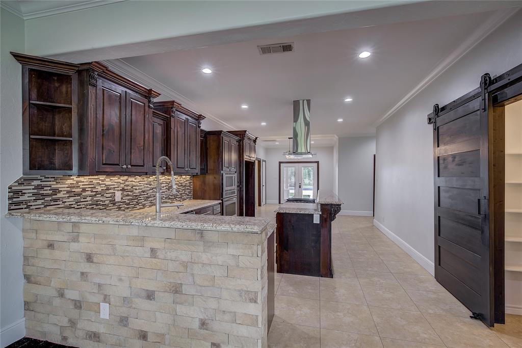 The heart of the home is a beautifully appointed kitchen featuring a gas cooktop, custom cabinetry, and a walk-in pantry accented with a stylish sliding barn door, the perfect blend of function and charm. Whether you’re cooking for the family or hosting a dinner party, this space is sure to impress.