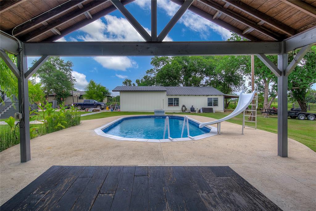 Step outside and enjoy your very own backyard oasis! A sparkling pool with a slide, a covered patio perfect for entertaining, and a private upstairs deck off the 5th bedroom overlooking the property.