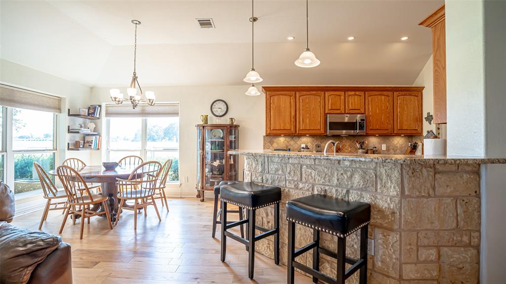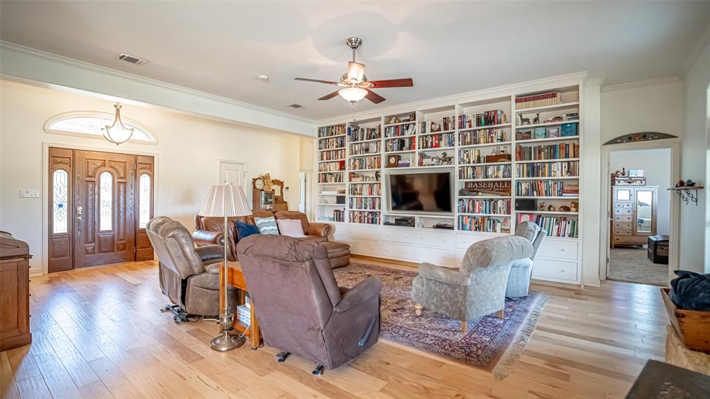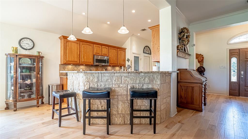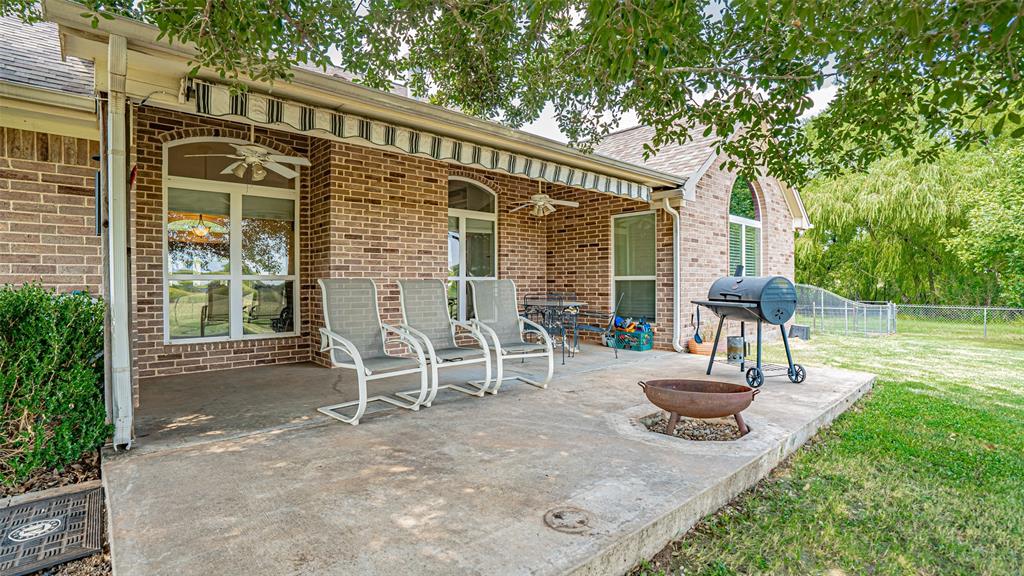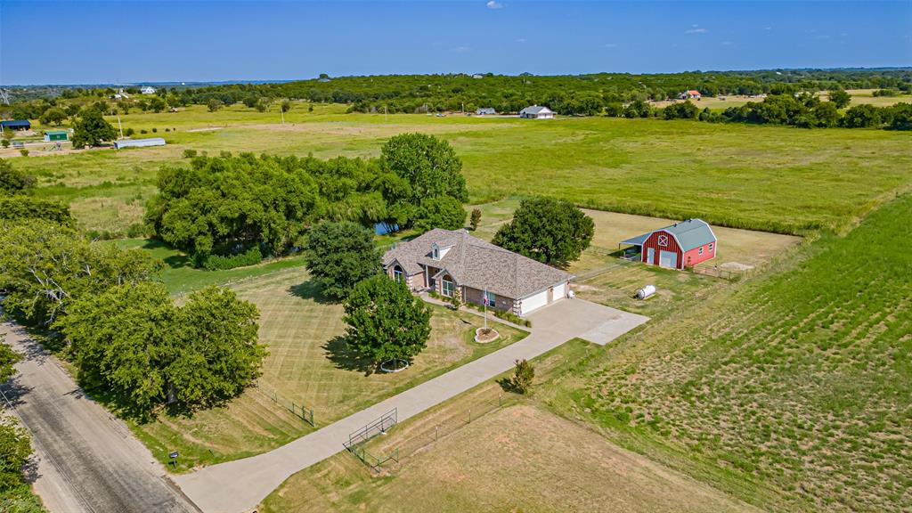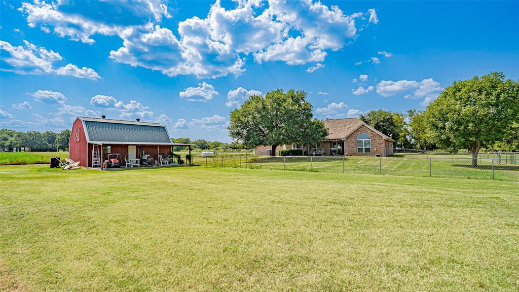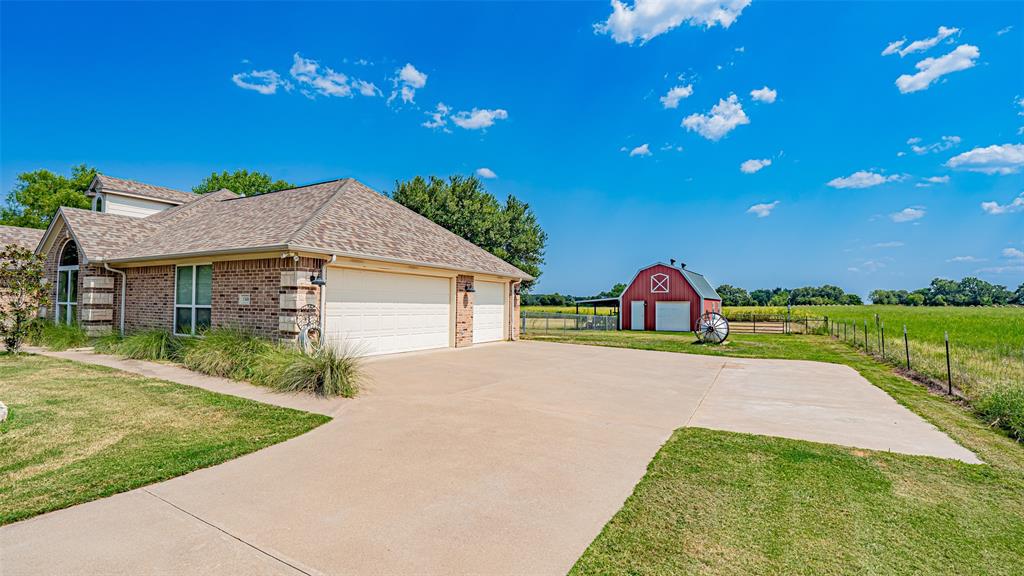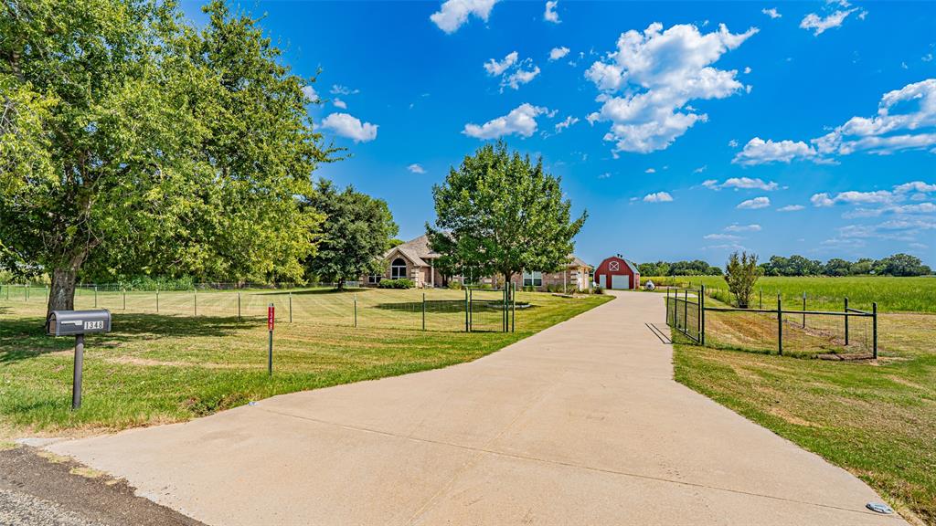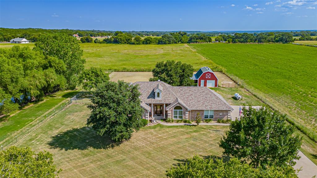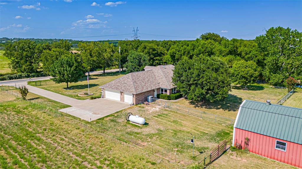 Discover this well-maintained, updated quality-built home situated on a fully fenced and cross-fenced one-acre lot, ideal for those who value space and functionality. Designed with energy efficiency in mind, this home features a piered slab foundation, 2x6 exterior walls, high-density insulation, a new roof (2022), and a new HVAC system (2024). The property includes a three-car garage with an underground storm shelter and a master closet safe room for added peace of mind. Outdoor living is enhanced by a spacious patio with a remote-controlled awning, beautifully landscaped yard, and a sprinkler system in both front and back. A standout feature is the large workshop, complete with a work area, water, electricity, and floored storage above with steel stairs. The workshop also offers a covered patio, creating an additional space for entertaining or relaxing.