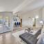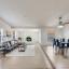 Inside, an open and inviting floor plan offers two spacious living areas, including one with an elegant white brick fireplace. The dining room flows seamlessly into a gourmet kitchen with granite countertops, stainless steel appliances, a high bar, and a sunny eat-in breakfast area.