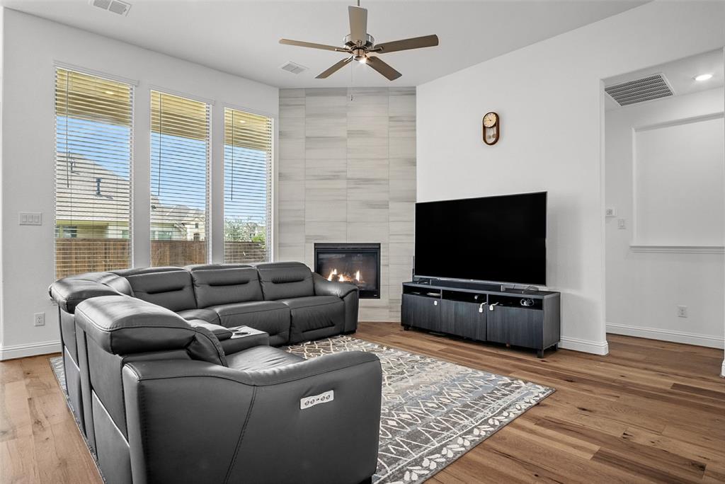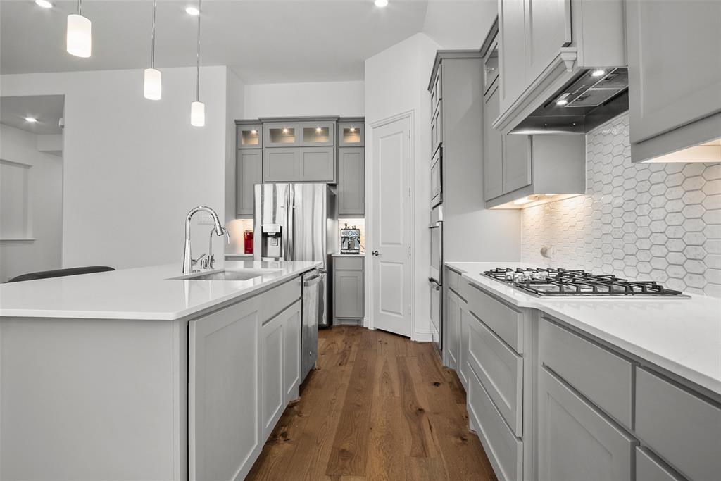 From the soaring ceilings and wide-plank flooring to the modern tile fireplace, every space is crafted for comfort and style. The gourmet kitchen features quartz countertops, stainless steel appliances, an oversized island, a walk-in pantry, and a reverse osmosis water filtration system—all flowing seamlessly into the living and dining areas, making it perfect for everyday living and entertaining.