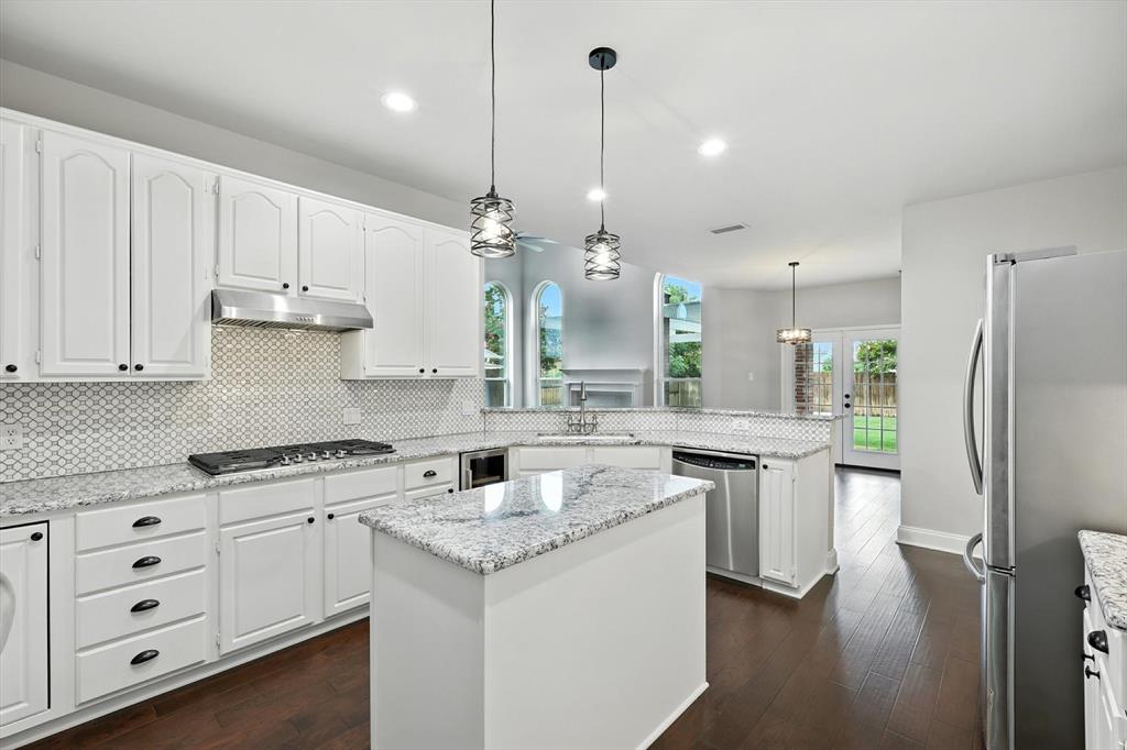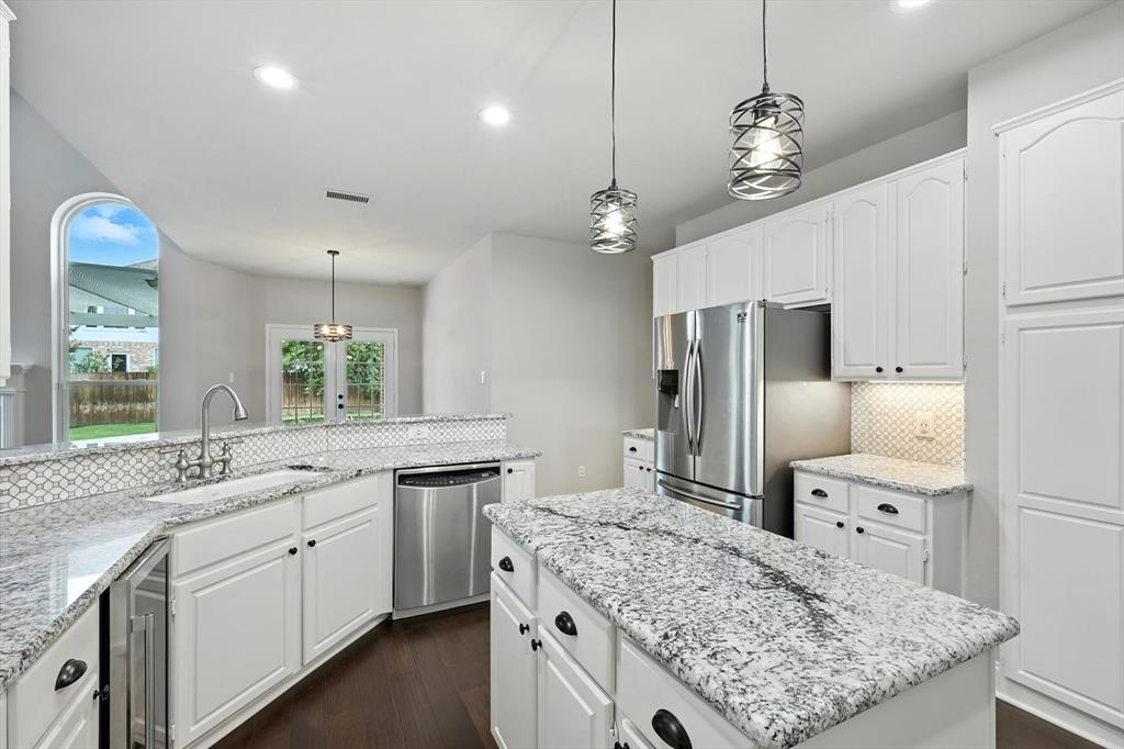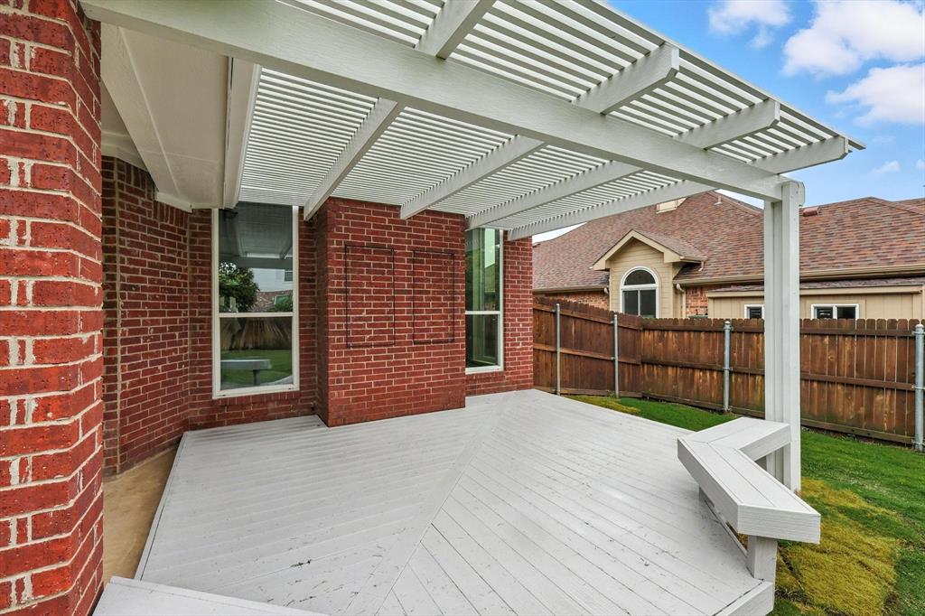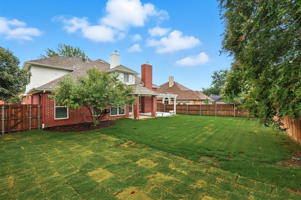 It looks new! In the summer of 2025, the home underwent an update, including Engineered wood floors, interior and exterior paint, new light fixtures, and even new wood floors in the upstairs living room. Your next home is here on Golden Arrow. This part of Flower Mound boasts beautiful parks, nearby schools, and is conveniently located near several amazing restaurants, all within a few minutes' drive. The home is a beauty. Upon entering, you are greeted by a beautiful entryway overlooking the formal living and dining areas. As you walk through the home, you will discover three spacious living rooms, including one upstairs as an ideal game room or retreat. The Master bedroom offers a fireplace, a sitting area, and is separate from the rest of the home. The updated kitchen features a designer tile backsplash, a wine fridge, and abundant cabinets. The backyard is huge! Imagine playing games or just relaxing under the covered deck and patio. Welcome Home!!!!!!!!