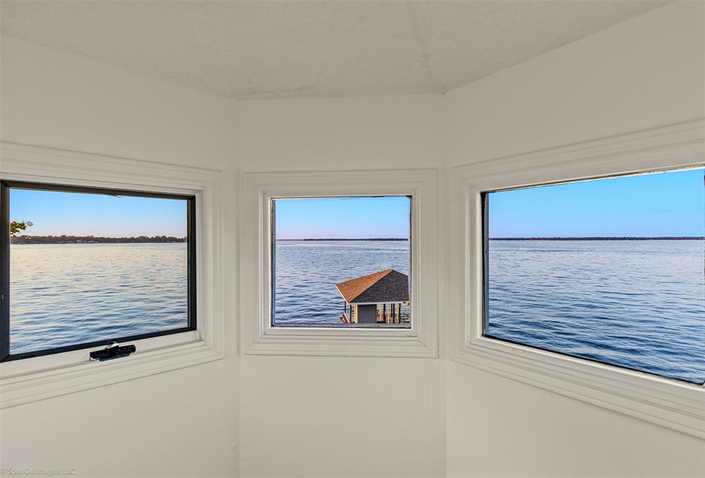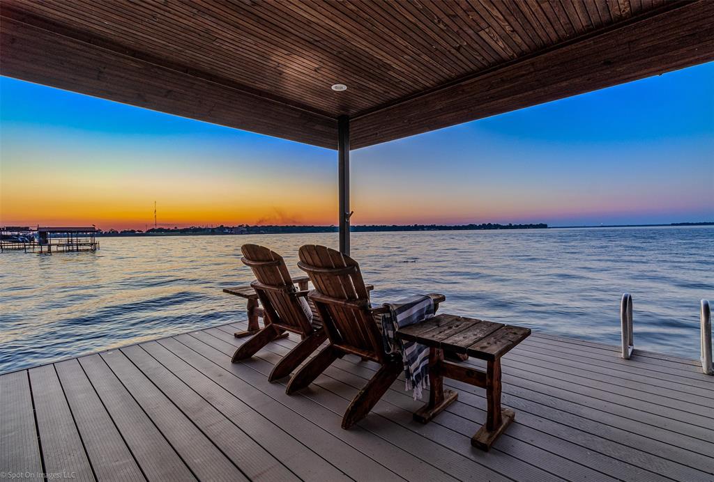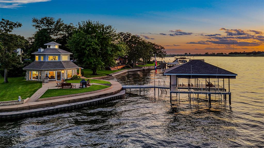 Perched gracefully on the point within the gated haven of Beachwood Estates, this architectural gem unfolds as a lakeside sanctuary where each room frames an ever-changing panorama of serene water views. Step inside to a sweeping great room that flows effortlessly into a kitchen and laundry space adorned with ample cabinetry, generous counters, and fully included appliances—ideal for both casual breakfasts and sunset gatherings. The main-level primary suite, complete with full ensuite with a jetted tub, walk in closet, solarium, and direct lake access, offers a quiet retreat, while upstairs two light-washed secondary bedrooms with roomy closets stand ready for guests or creative setups. A loft, with expansive windows, overlooks the living area, and above lies a crow’s nest—a full height lofty perch perfect for reflection or skyward daydreams. Outdoors, a spacious patio with a cozy fireplace invites lively evenings under the stars. The somewhat recently built boat dock was raised above full pool level to help protect against the occasional storm. The dock is thoughtfully equipped with an automatic boat cover, double jet-ski lift, lake pump, and covered seating area. Add to this a three-car garage—with RV-ready electrical hookups and sewer clean-out—and enjoy the communal perks of a private POA: clubhouse, pool, tennis or pickleball courts, playground, pier, and ramp—all tailored for the leisurely lake lifestyle you’ve been dreaming of.