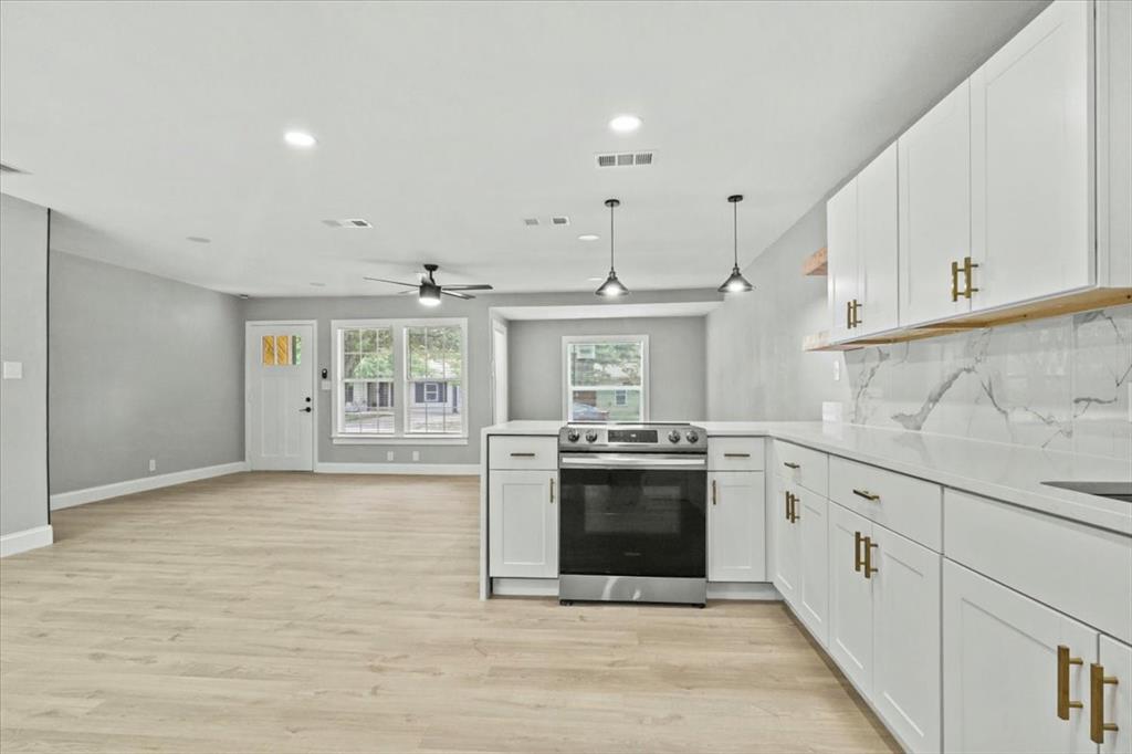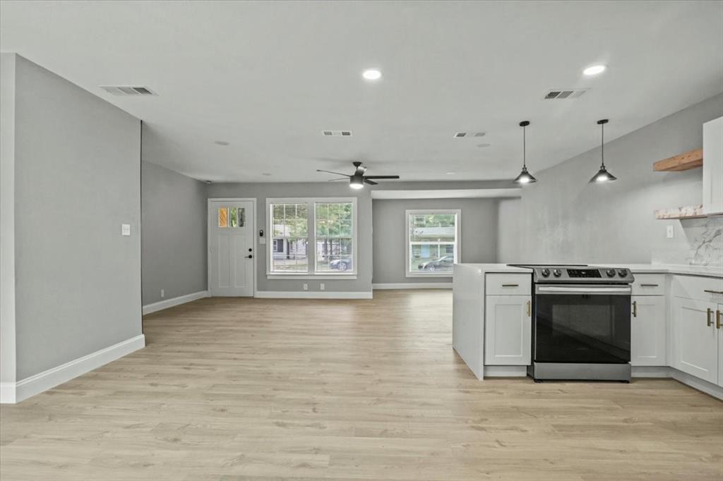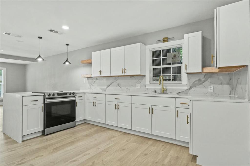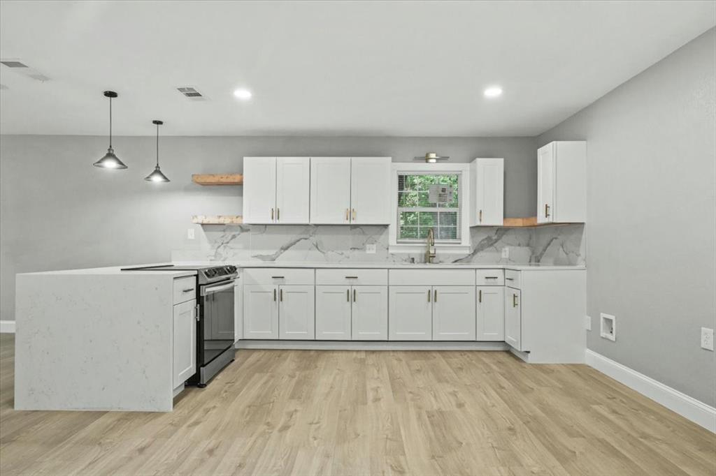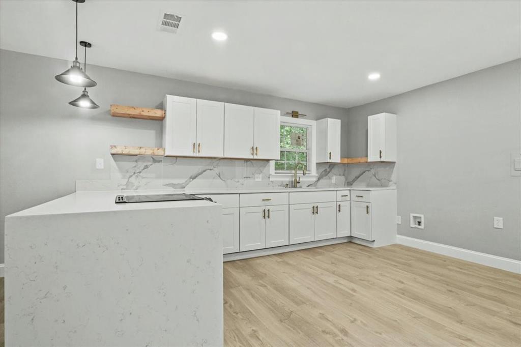 Beautifully updated 2 bedroom, 1 bath with an open-concept design featuring a stunning quartz waterfall countertop as the centerpiece of the kitchen. Every detail has been updated with modern finishes, making this home move in ready. Enjoy outdoor living on the brand-new deck and relax, also new concrete driveway with carport for convenient covered parking. Extended driveway for rear property parking. Perfect for those seeking style, comfort and low maintenance living!