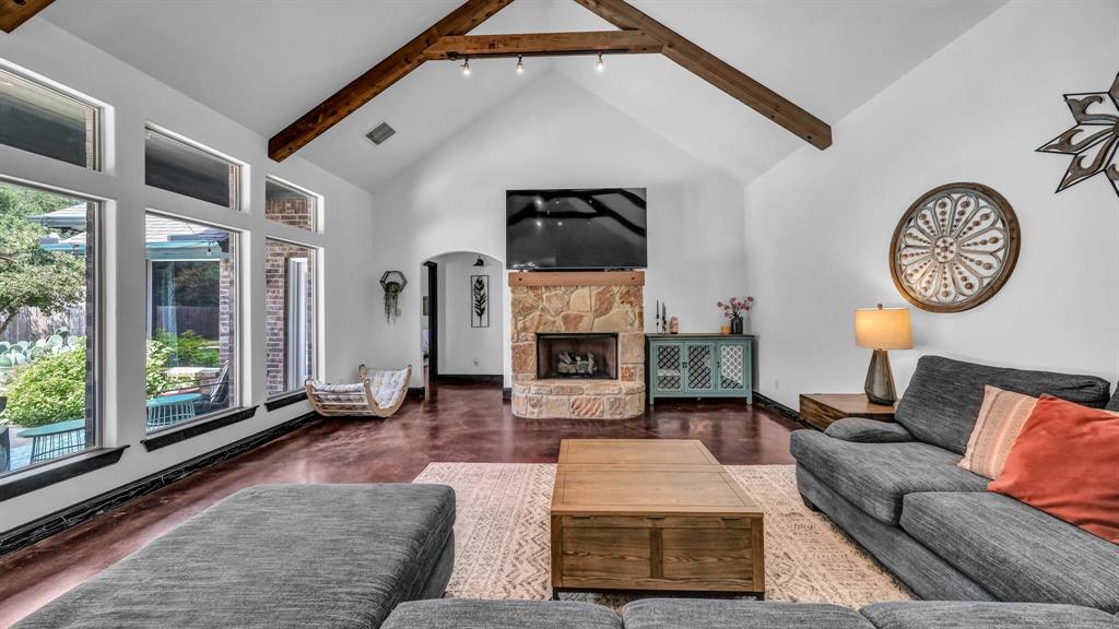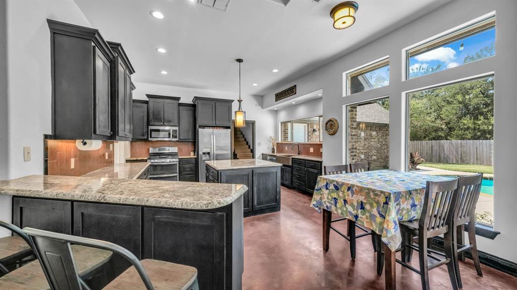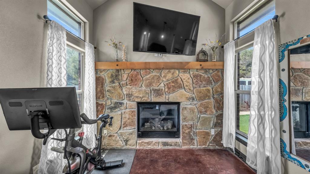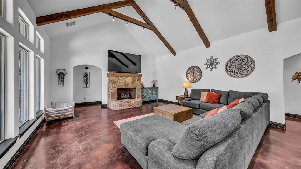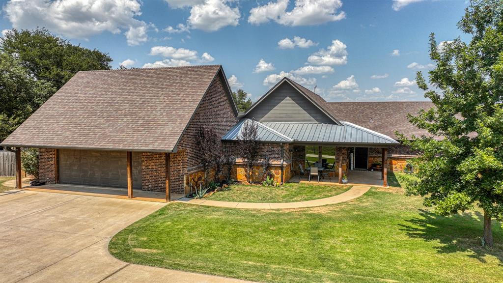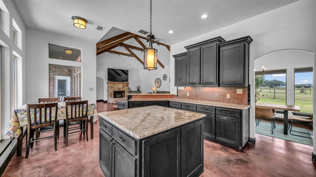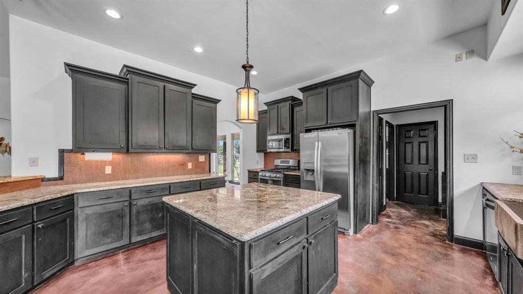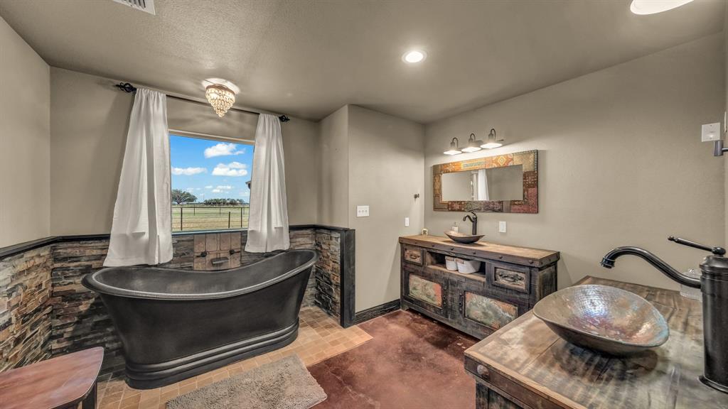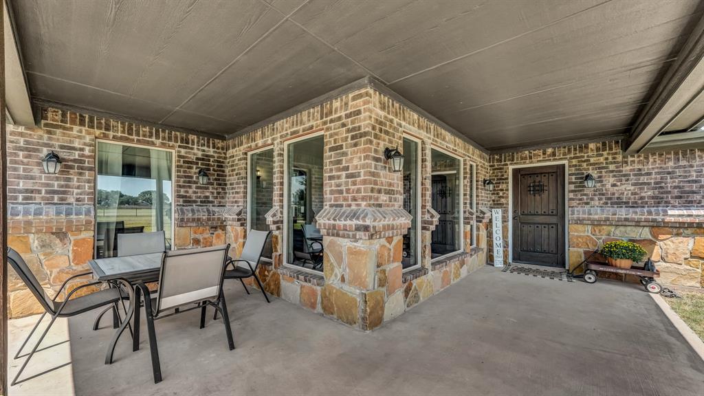 Welcome to 100 Powell Crossing in Lipan, TX—where timeless craftsmanship meets modern ranch living. This custom 4-bedroom, 2.5-bath home with 3,125 sq ft was designed with both elegance and comfort in mind. The open floor plan is highlighted by soaring ceilings, wood beams, and stone fireplaces in both the living room and primary suite. The chef’s kitchen features granite countertops, stainless steel appliances, an oversized island, and abundant storage—perfect for entertaining. The primary suite offers a private retreat with a luxurious copper soaking tub, dual copper sinks, and his-and-her walk-in closets. Three HVAC units provide zoned efficiency throughout.