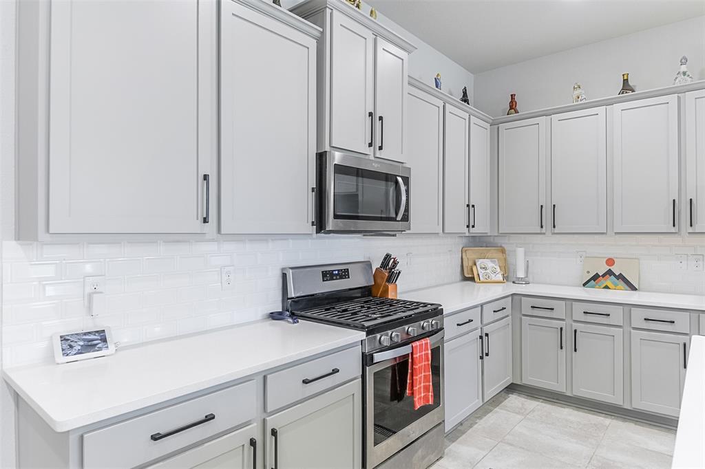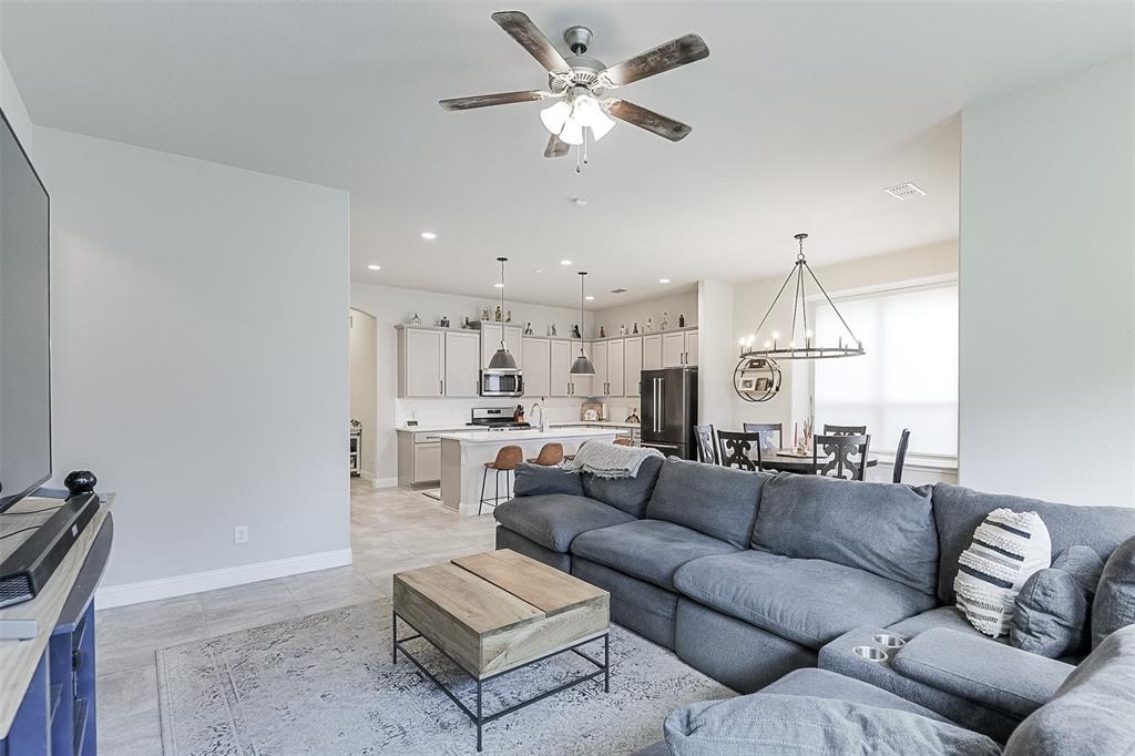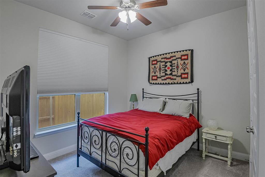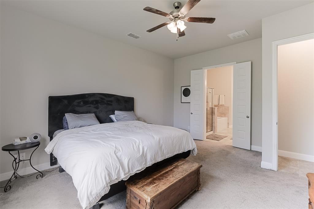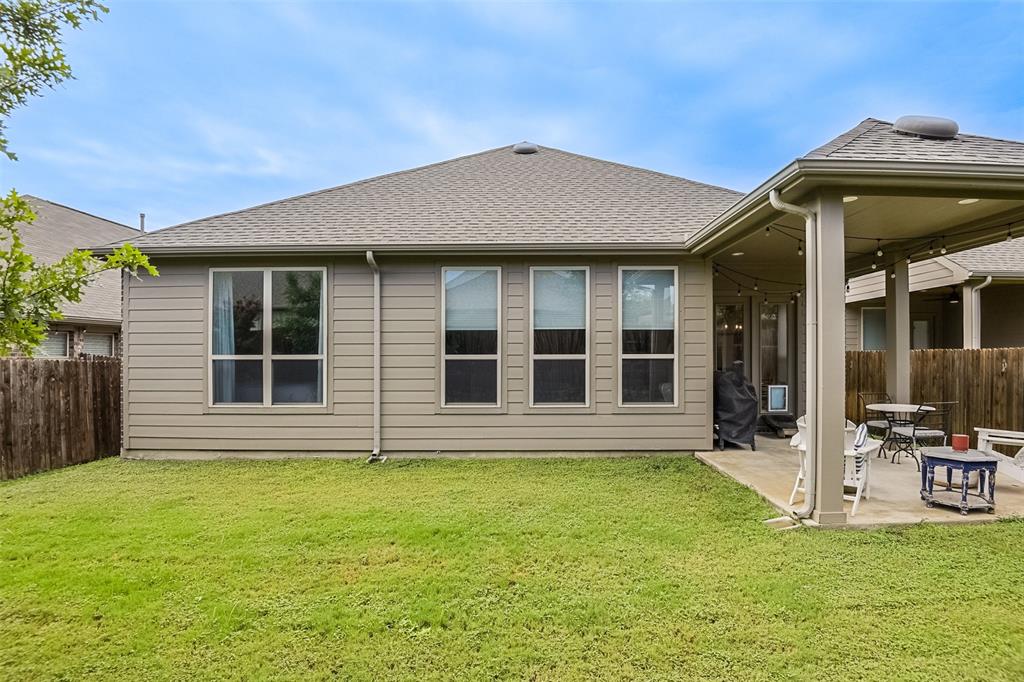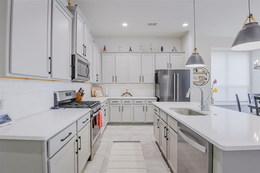 Welcome home to this beautifully maintained stone and brick residence that combines charm, functionality, and comfort. From the moment you arrive, you’ll notice the great curb appeal enhanced by mature landscaping, a welcoming front entry, and sidewalks that make this community perfect for evening strolls or morning jogs. Step inside to find neutral colors throughout, tall ceilings, and rounded corners that give the home a light, open, and inviting feel. The heart of the home is the spacious kitchen, designed with both style and practicality in mind. It features a large island with a sink, breakfast bar seating, stainless steel appliances, and an abundance of counter space for meal prep or entertaining. The bright and open layout allows the kitchen to flow seamlessly into the dining and living areas, making it the ideal setup for gatherings. The primary suite is a true retreat, highlighted by a Texas-sized walk-in closet that offers all the storage you could ever need. The ensuite bathroom provides a relaxing escape after a long day. Secondary bedrooms are well-proportioned, and ceiling fans throughout the home help keep energy costs efficient while providing added comfort. Additional upgrades include ceramic tile flooring throughout, a covered back patio perfect for outdoor living, gutters for peace of mind, and a privacy fence for your own backyard oasis. The 2-car garage adds both convenience and storage space. This home is move-in ready, meticulously cared for, and located in a desirable neighborhood with a community pool to enjoy on those warm Texas days. Don’t miss your opportunity to make this beautiful property your own and start creating memories here—it’s the perfect blend of comfort, style, and location.