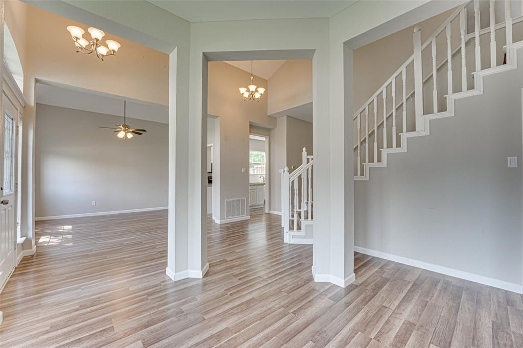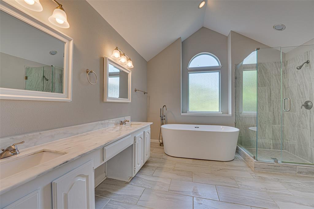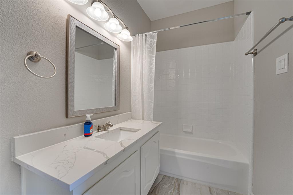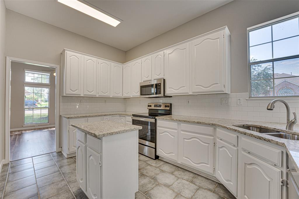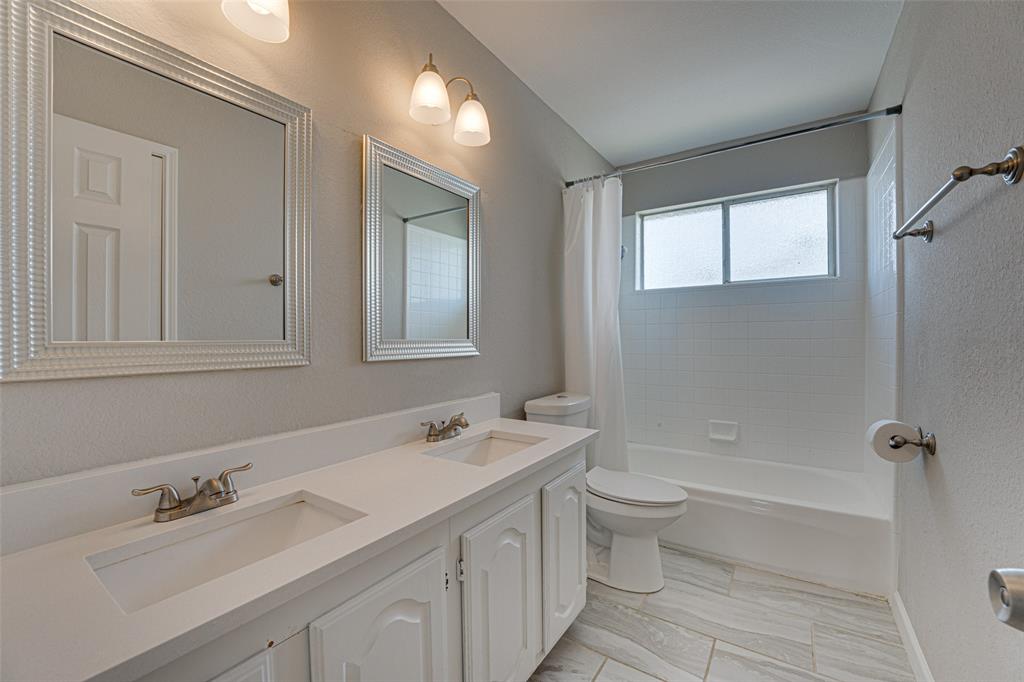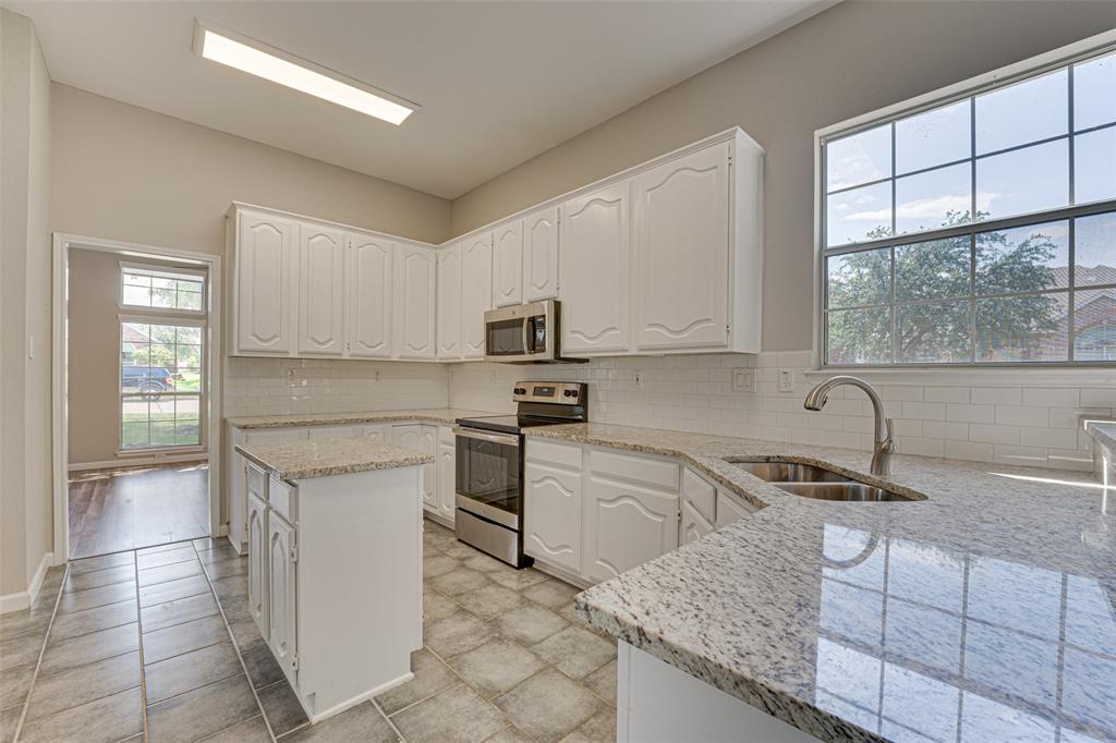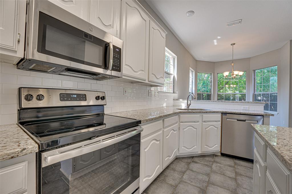 Updated 5 bedroom, 3 bathroom corner-lot home.. Bright and beautiful. Kitchen with granite countertops and stainless steel appliances. Quartz vanities in the bathrooms, wood-like laminate floors in living areas and carpet in bedrooms. Huge master suite with soaking tub and separate shower. Modern light fixtures. Sprinkler system for easy yard maintenance and a 2 car garage. Easy access to HWY 121 and very close to lake Lewisville.