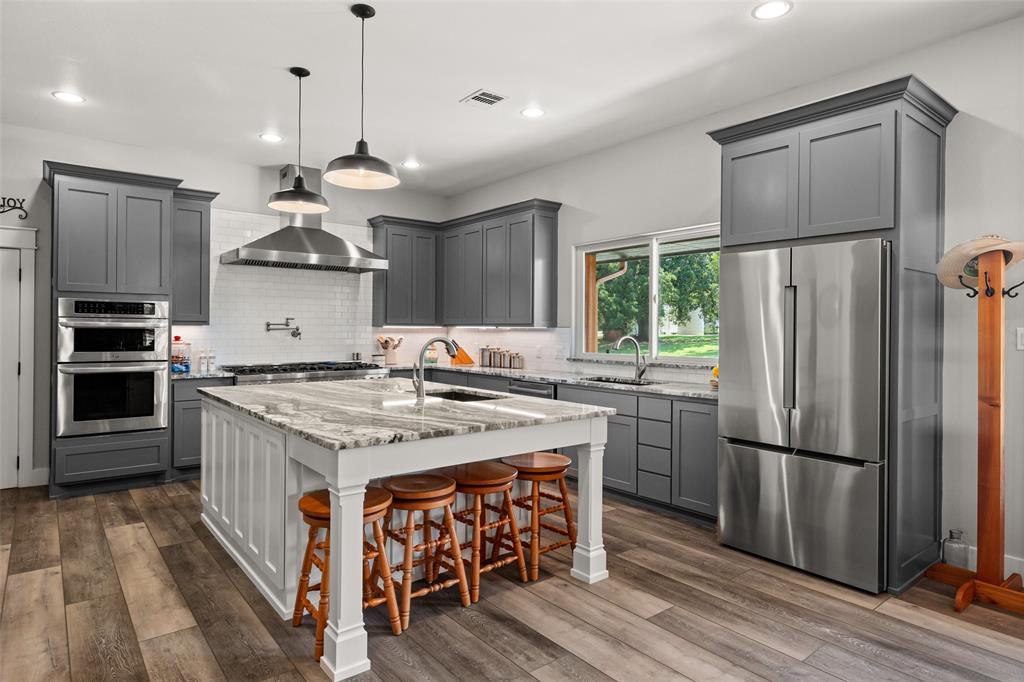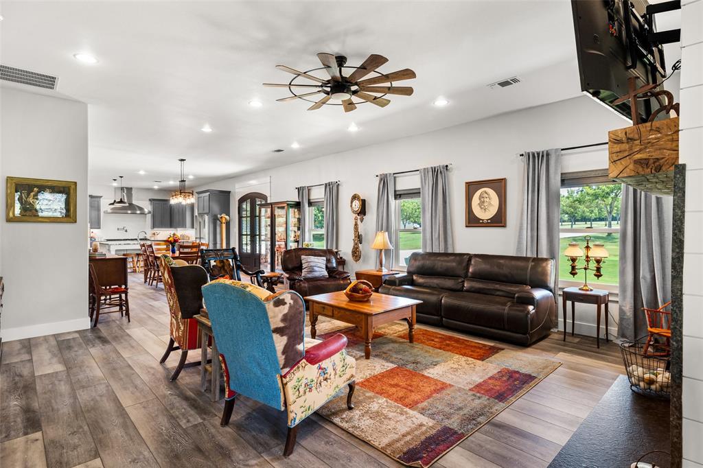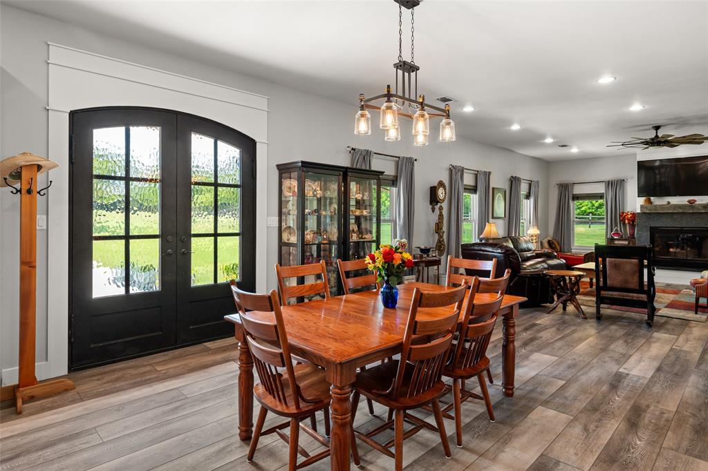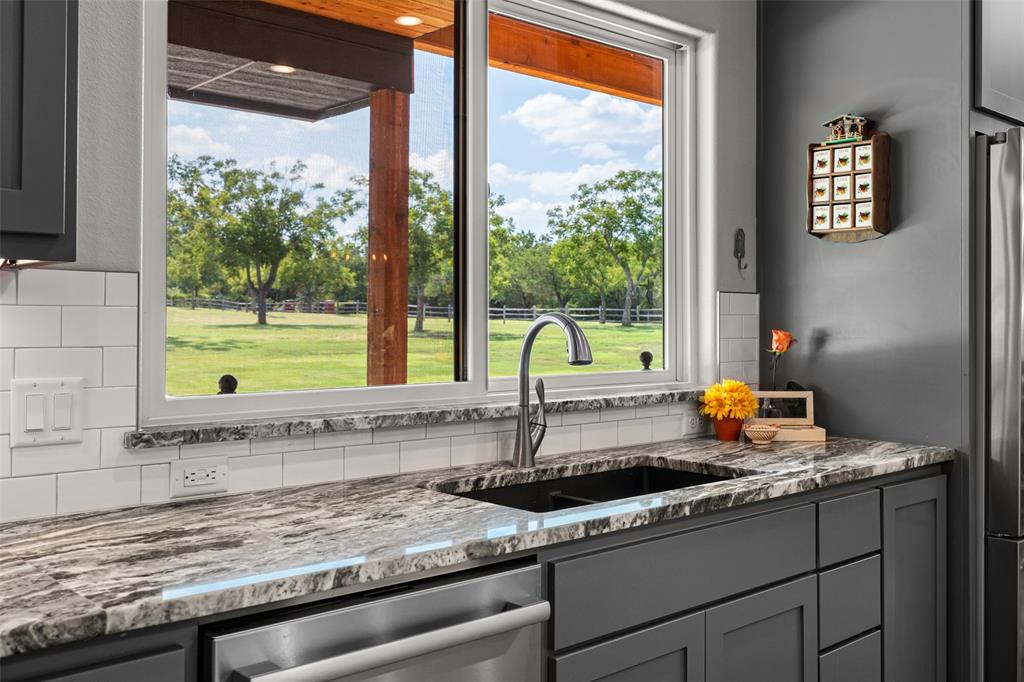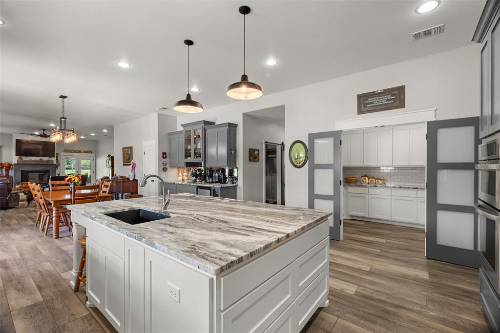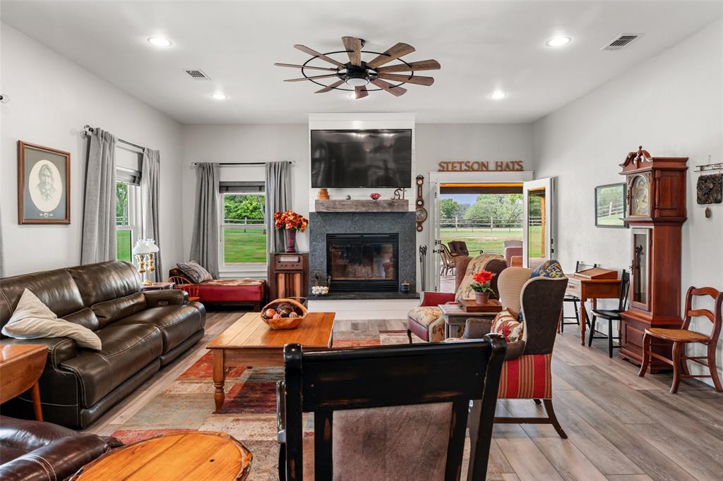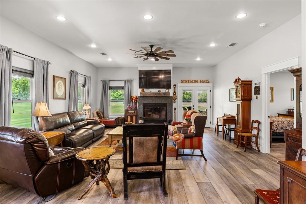 Stunning Modern Farmhouse – Welcome to your very own slice of paradise! Nestled on 12.874 picturesque acres, this brand-new modern farmhouse, built in 2024, harmonizes luxury & country living. Step inside to discover a chef's dream kitchen featuring a Z-Line 10 burner gas range with double ovens, a bult in oven and convection microwave. The expansive island, granite countertops, pot filler, and dual sinks provide ample space for meal preparation and entertaining. Don’t miss the dreamy butler's pantry & custom wet bar. Retreat to the primary suite, where you'll find an ensuite bath complete with a large tile walk-in shower, separate vanities & a generous walk-in closet that connects to the large utility room. Enjoy easy access to the back porch from both the primary and second bedrooms. The 3rd bedroom features a walk-in closet, while the second full bath showcases stunning tile work & a tub-shower. LVP flooring flows throughout the home, accentuated by an inviting wood-burning fireplace. The double iron front doors welcome you, while abundant windows fill the space with natural light. Impressive 25 x 25 studio & fully decked, climate controlled attic with fixed stairs. The home is equipped with a 26K Generac generator, a dual fuel HVAC system with smart thermostats, a 500-gallon in-ground propane tank, tankless water heater & Class 4 hail-resistant roof. The 45 x 60 shop includes insulated bays, a full bath, washer & dryer hookups & multiple 110-volt & 220-volt outlets, along with 2 50-amp RV pedestals with sewer & water hookups. A 20 x 30 equipment shed offers even more storage. This exceptional property is located outside the city limits, providing a serene country lifestyle. Enjoy the tranquil sounds of nature as this property backs up to a creek. The double-wide manufactured home is ideal for guests or rental income. Make this stunning modern farmhouse your forever home and experience the perfect blend of luxury and rural charm!