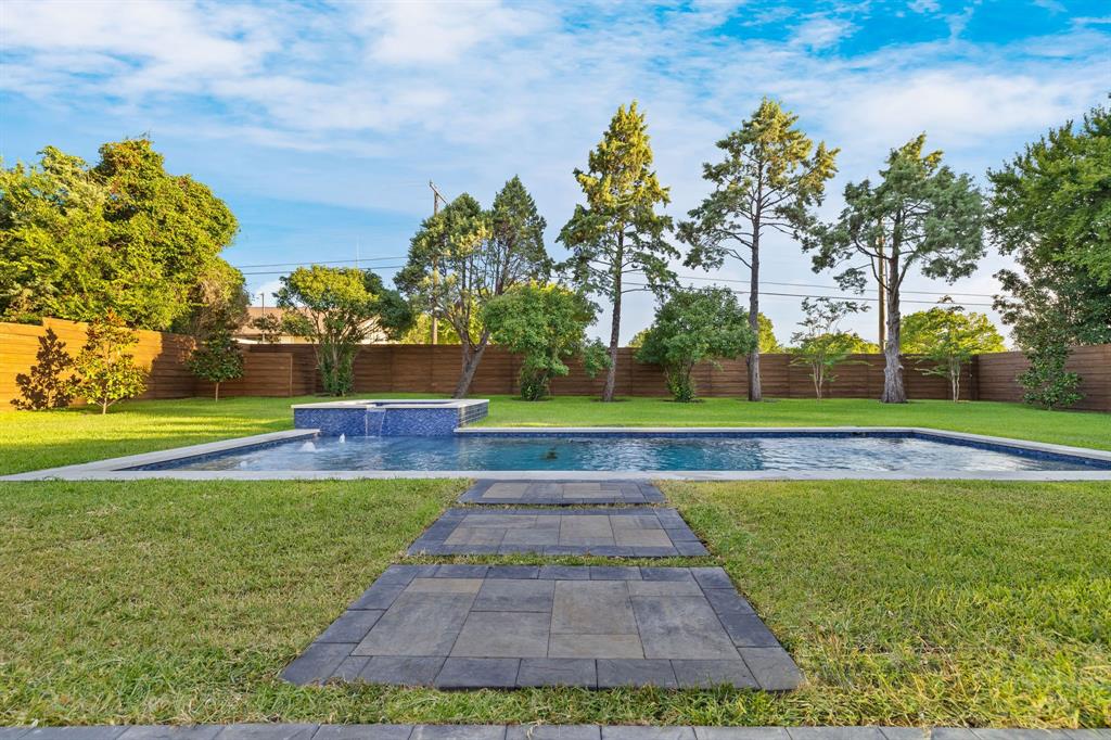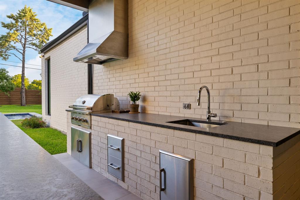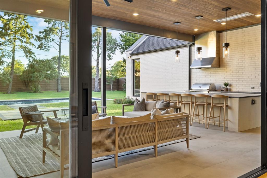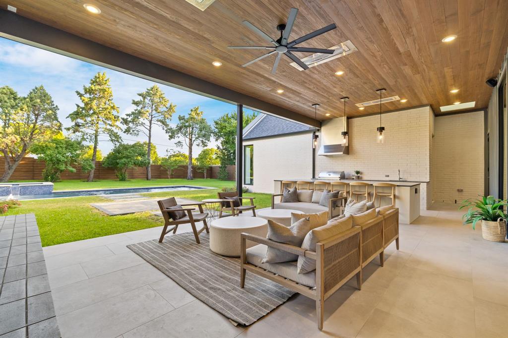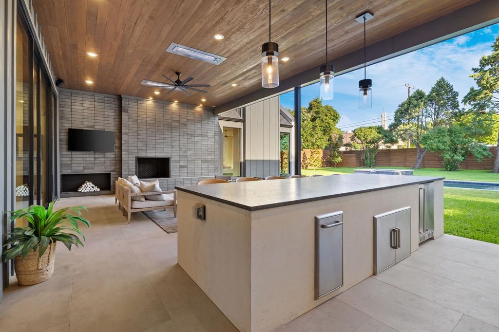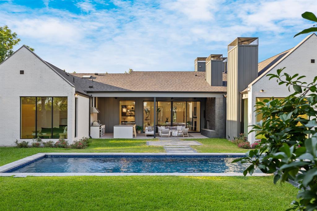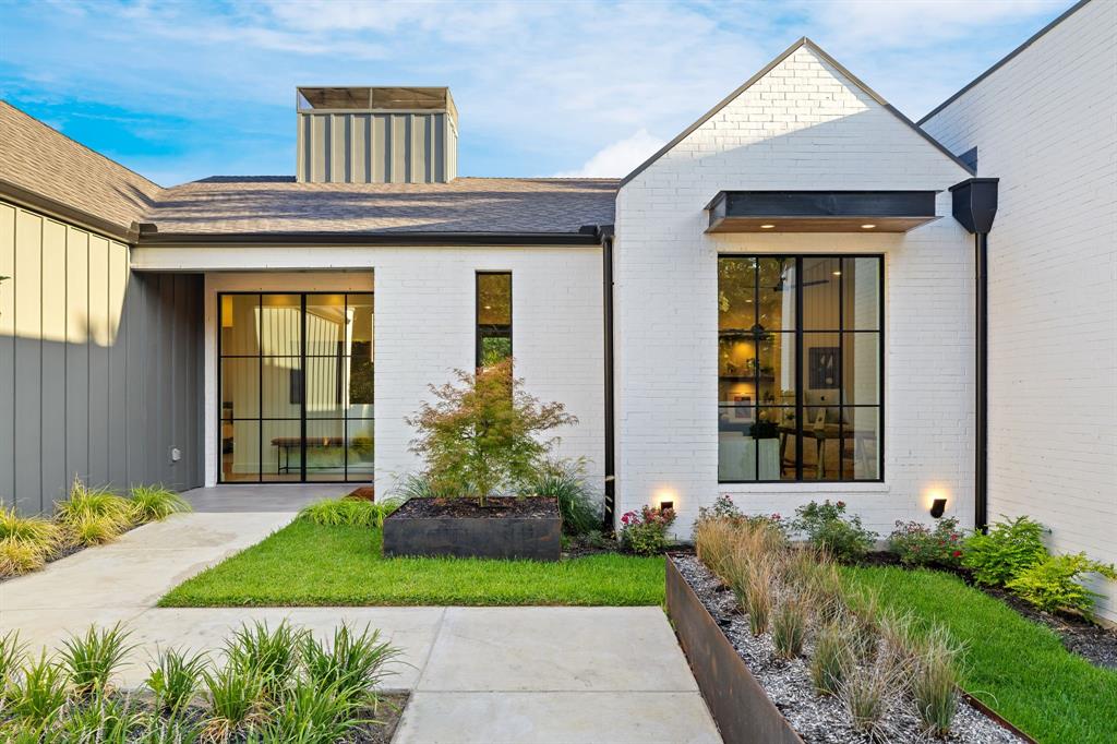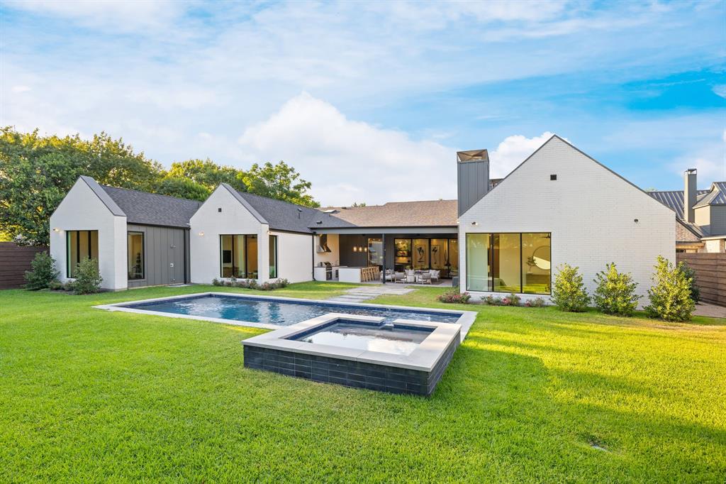 Rare one-story by JH Design + Build offers contemporary design on over a half-acre in Farmers Branch, near the heart of Dallas. A private courtyard, mature landscaping, and clean-lined interiors set the tone. The open kitchen features Sub-Zero Wolf appliances, two dishwashers, Belmont cabinetry, and a bar with dual wine fridges. An oversized utility room doubles as a catering kitchen with ice maker and space for a second fridge. Enjoy year-round outdoor living with a covered patio, fireplace, outdoor kitchen, heaters, pool, spa, and plentiful lawn. The primary suite is complete with a fireplace, pool views, stunning ensuite bath with ample natural light, and a washer dryer hookup in the large custom closet. The second primary suite offers plenty of room for guests. Three additional bedrooms are spacious and include en suite baths. The second living area is flexible for a game, media, or gym space and includes a wet bar. Generous study features built ins and beautiful courtyard views. A four-car garage with electric vehicle charging and a circle drive complete this exceptional property in a very special community. Convenient to Hwy 635, Hwy 35 and the Tollway, the location offers an ease of commute to private schools, downtown Dallas, DFW Intl Airport, and Love Field. It's also close to Brookhaven CC, Miradoe Golf Club, and excellent city services like the Farmers Branch Community Center.