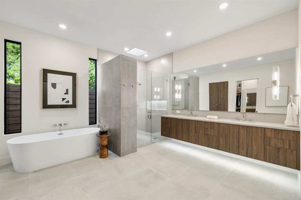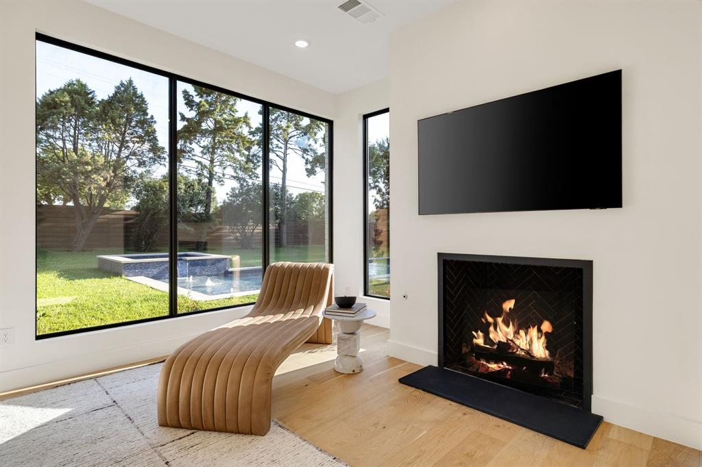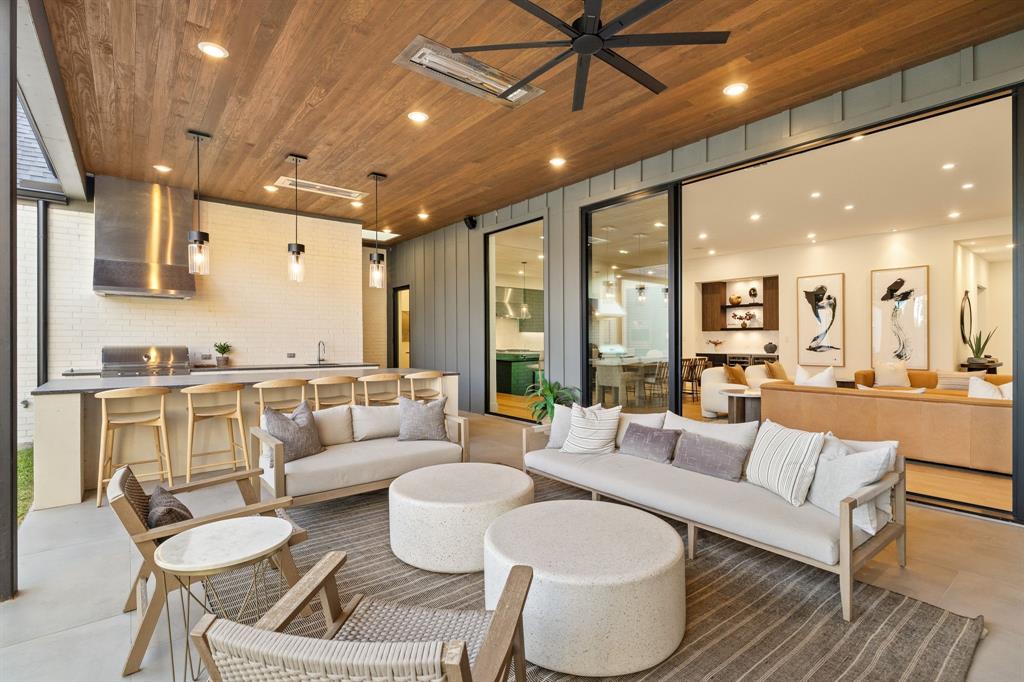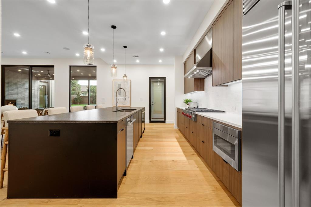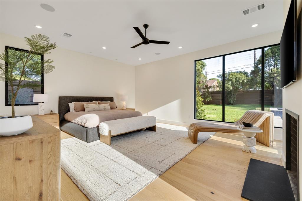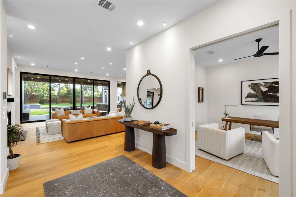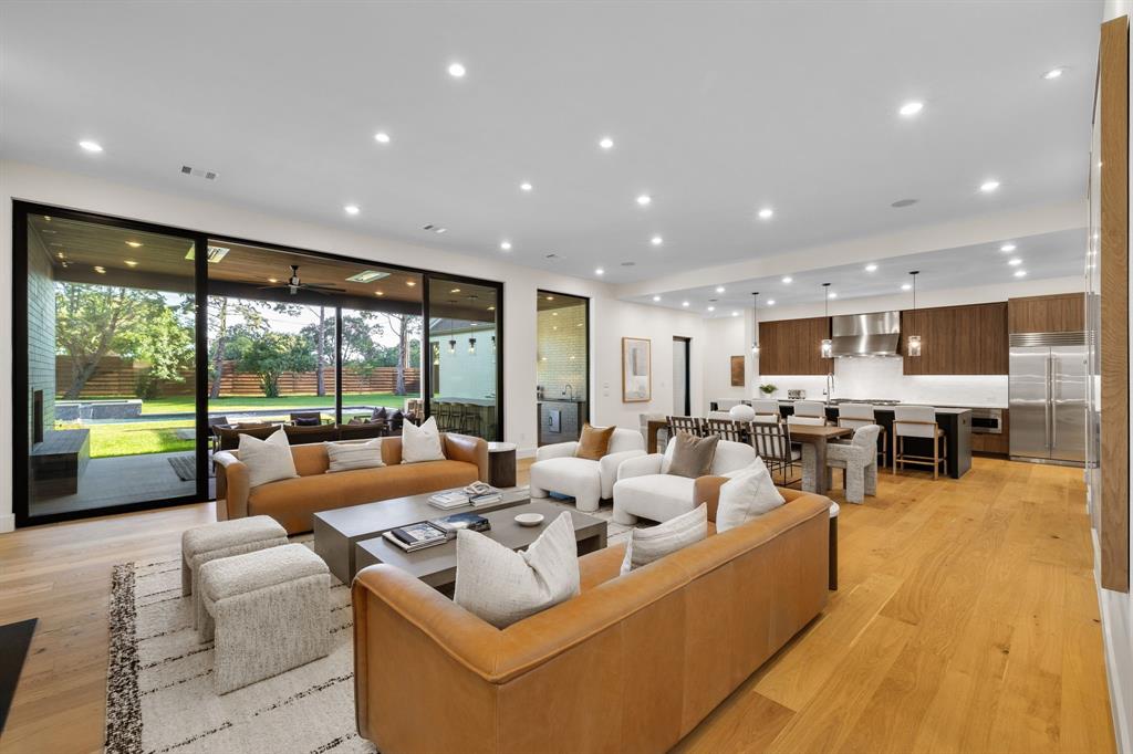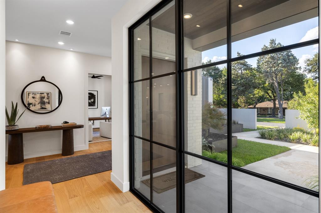 Rare one-story by JH Design + Build offers contemporary design on over a half-acre in Farmers Branch, near the heart of Dallas. A private courtyard, mature landscaping, and clean-lined interiors set the tone. The open kitchen features Sub-Zero Wolf appliances, two dishwashers, Belmont cabinetry, and a bar with dual wine fridges. An oversized utility room doubles as a catering kitchen with ice maker and space for a second fridge. Enjoy year-round outdoor living with a covered patio, fireplace, outdoor kitchen, heaters, pool, spa, and plentiful lawn. The primary suite is complete with a fireplace, pool views, stunning ensuite bath with ample natural light, and a washer dryer hookup in the large custom closet. The second primary suite offers plenty of room for guests. Three additional bedrooms are spacious and include en suite baths. The second living area is flexible for a game, media, or gym space and includes a wet bar. Generous study features built ins and beautiful courtyard views. A four-car garage with electric vehicle charging and a circle drive complete this exceptional property in a very special community. Convenient to Hwy 635, Hwy 35 and the Tollway, the location offers an ease of commute to private schools, downtown Dallas, DFW Intl Airport, and Love Field. It's also close to Brookhaven CC, Miradoe Golf Club, and excellent city services like the Farmers Branch Community Center.