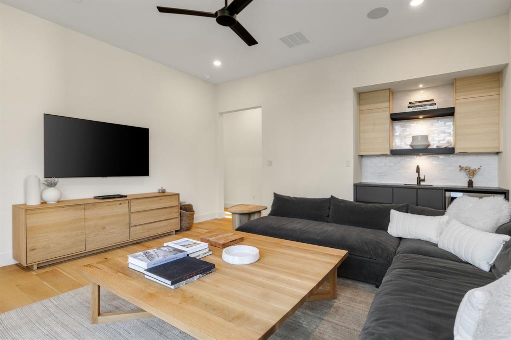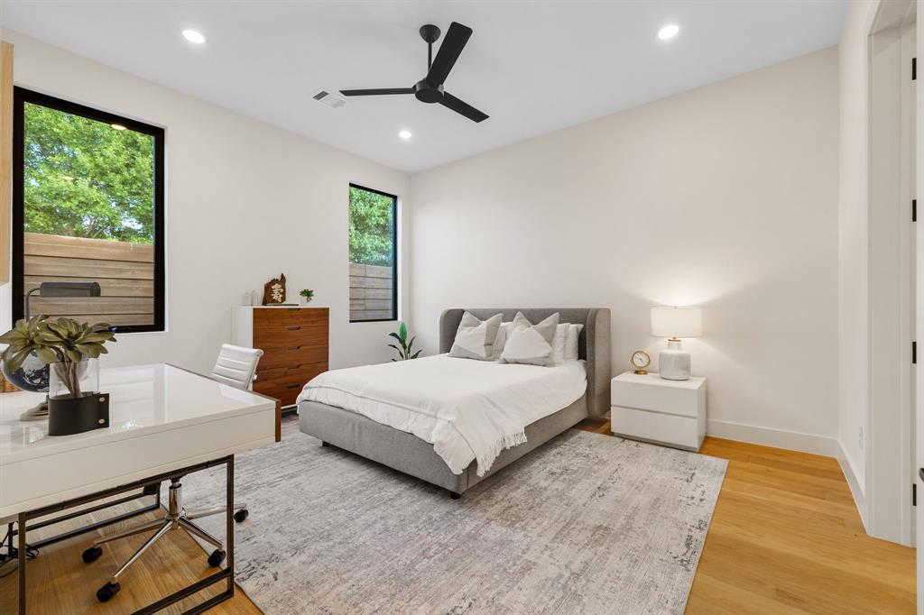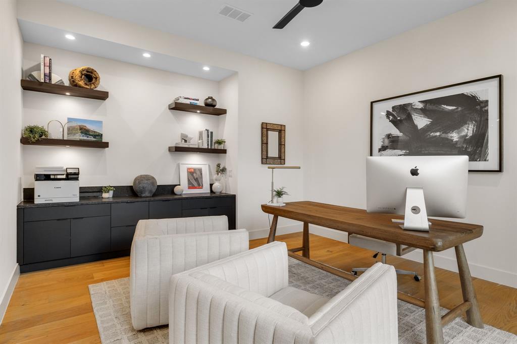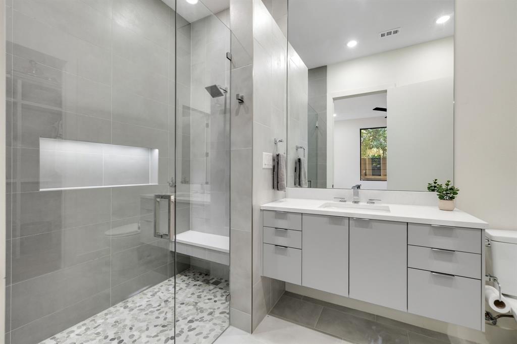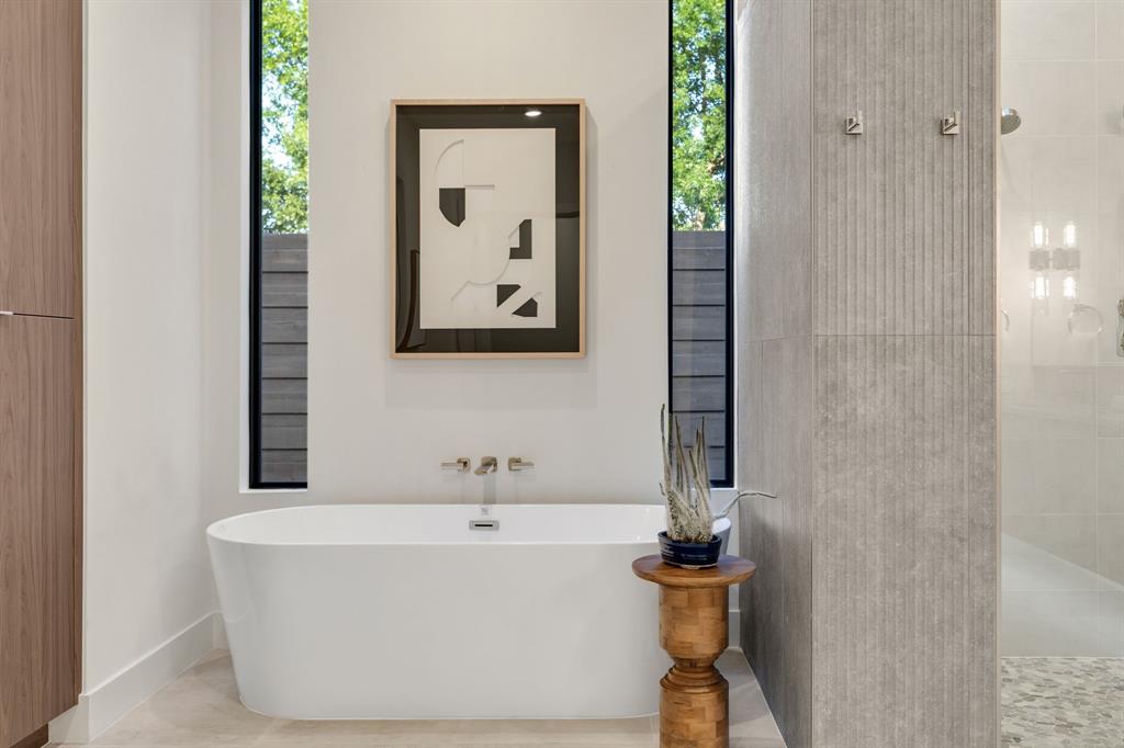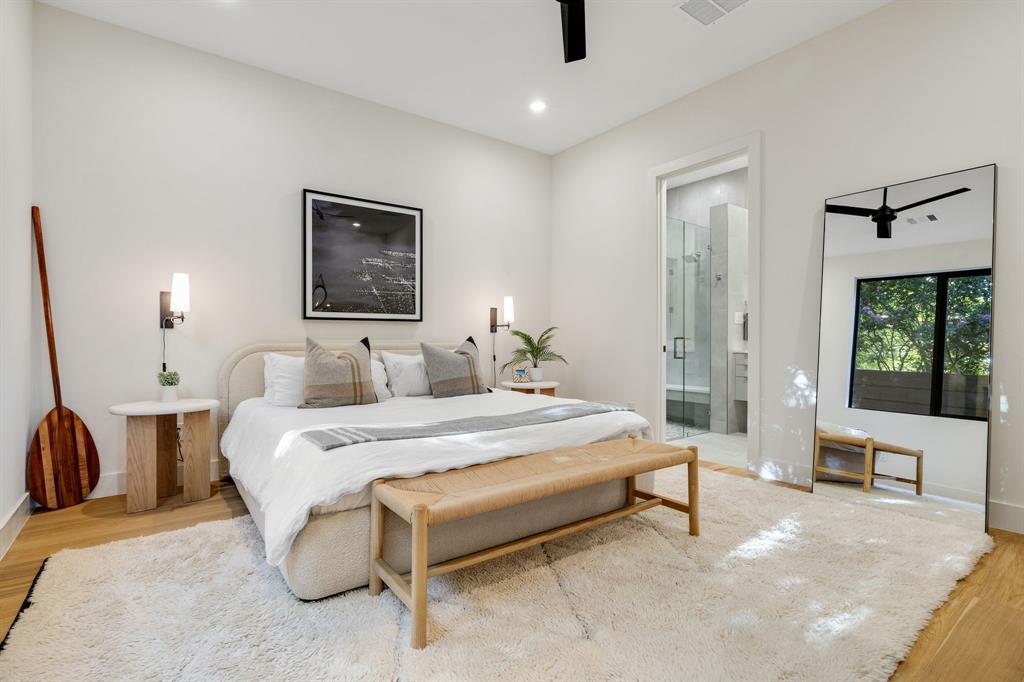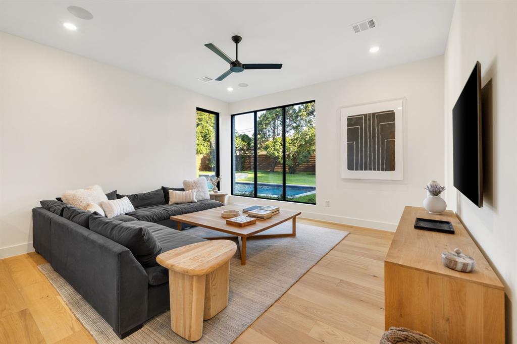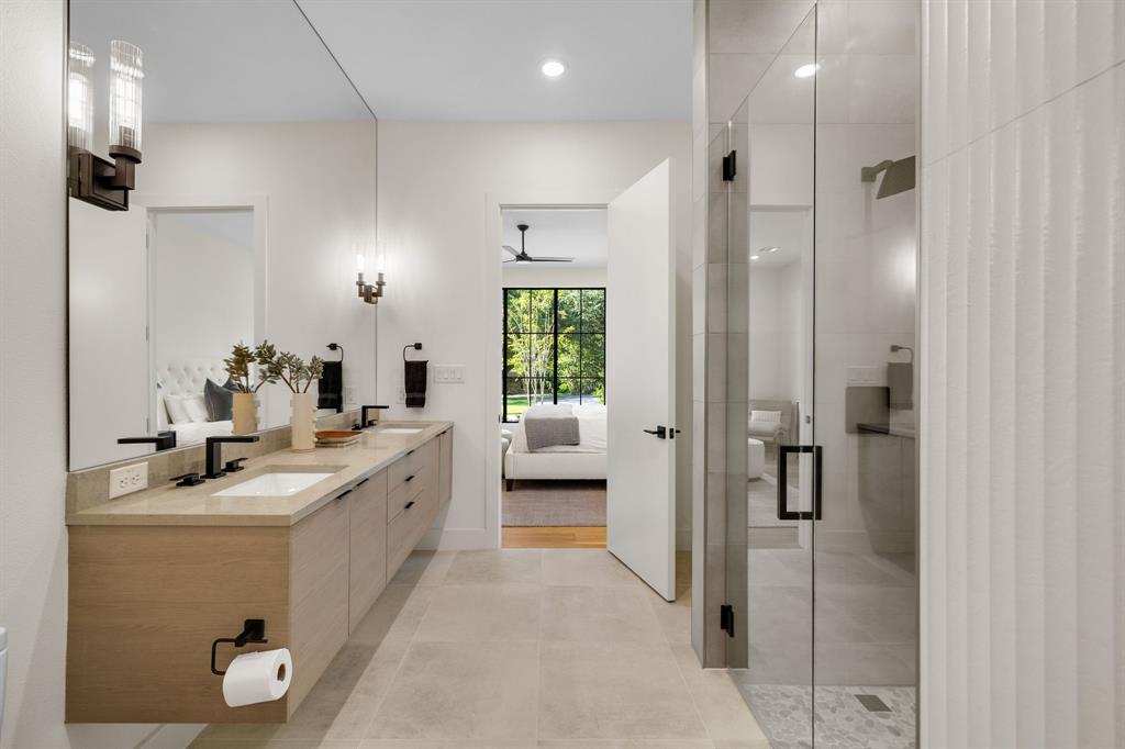 Rare one-story by JH Design + Build offers contemporary design on over a half-acre in Farmers Branch, near the heart of Dallas. A private courtyard, mature landscaping, and clean-lined interiors set the tone. The open kitchen features Sub-Zero Wolf appliances, two dishwashers, Belmont cabinetry, and a bar with dual wine fridges. An oversized utility room doubles as a catering kitchen with ice maker and space for a second fridge. Enjoy year-round outdoor living with a covered patio, fireplace, outdoor kitchen, heaters, pool, spa, and plentiful lawn. The primary suite is complete with a fireplace, pool views, stunning ensuite bath with ample natural light, and a washer dryer hookup in the large custom closet. The second primary suite offers plenty of room for guests. Three additional bedrooms are spacious and include en suite baths. The second living area is flexible for a game, media, or gym space and includes a wet bar. Generous study features built ins and beautiful courtyard views. A four-car garage with electric vehicle charging and a circle drive complete this exceptional property in a very special community. Convenient to Hwy 635, Hwy 35 and the Tollway, the location offers an ease of commute to private schools, downtown Dallas, DFW Intl Airport, and Love Field. It's also close to Brookhaven CC, Miradoe Golf Club, and excellent city services like the Farmers Branch Community Center.
