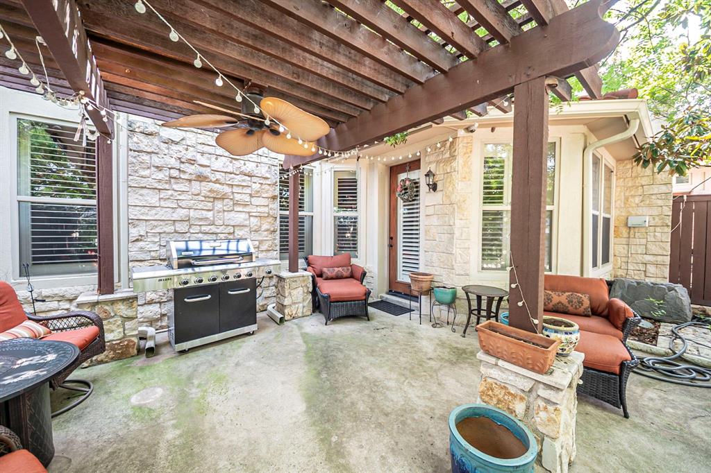 Discover refined living in this gorgeous 3-bedroom, 2.5-bath townhome near Eagle Mountain Lake. From the moment you step inside, you’ll be captivated by the soaring living room ceiling and the open, light-filled floor plan designed for both relaxation and entertaining. The gourmet kitchen is a chef’s dream, featuring granite countertops, stainless steel appliances, and a seamless flow into the spacious dining and living areas. Hardwood floors and stone tile add timeless elegance throughout. Enjoy privacy with split bedrooms, including a secondary ensuite downstairs—perfect for guests. Upstairs, the primary suite offers a luxurious retreat with a spa-like bath and serene views. Step outside to a beautifully designed outdoor living area with a pergola, ideal for morning coffee or evening gatherings. A 2-car garage provides convenience, while the gated community ensures peace of mind. Located just minutes from shopping, dining, and recreation, this townhome combines style, comfort, and an unbeatable location.