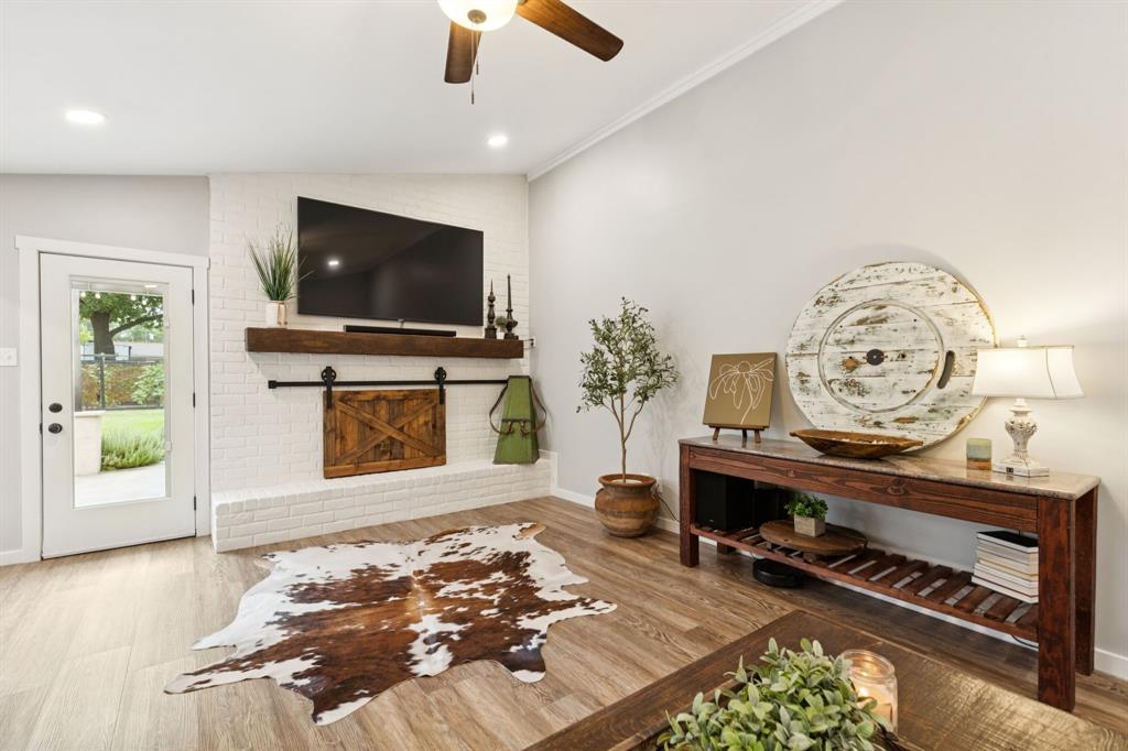 This exquisite 3-bedroom, 2-bathroom home in the heart of the HEB area offers exceptional curb appeal, with lush landscaping and elegant custom finishes throughout. Step inside to find luxurious LVP wood flooring, recessed lighting, and thoughtfully designed updates, including handcrafted wooden accents, built-in speakers in bathrooms, and custom finishes throughout.