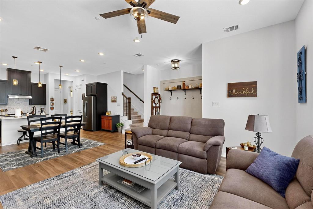 Welcome to the Station; an awesome mixed-use development district near Firewheel Mall where residents have a variety of modern conveniences within walking distance; shopping, dining, hospital and Heritage Park. This Energy Star Townhome has been tastefully decorated and features some neat customizations. Open concept living and kitchen greet your arrival with a custom hanging rack for coats in entry. Spacious kitchen with quartz counter tops, stainless steel appliances, gas cooktop, 42 inch cabinets, subway tile backsplash and huge kitchen work island with bar top seating. Spacious bedrooms upstairs with second living area ideally situated in the middle. Primary bedroom is situated separate from guest bedrooms and features an ensuite bath with dual vanities, oversized shower and walk in closet. Utility room has been upgraded with built in cabinets and is also upstairs near the bedrooms. Spacious rooms throughout with lots of light filled windows. Epoxy floored garage and more!