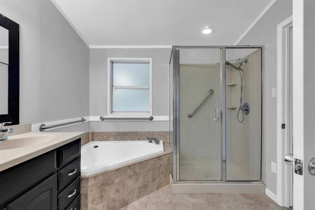 This 1,456 sq ft home offers a functional split-bedroom floor plan with 3 bedrooms and 2 full bathrooms. Light remodeling throughout includes an upgraded bathroom and refreshed finishes. The spacious primary suite features an ensuite bath with direct access to the laundry room for added convenience.