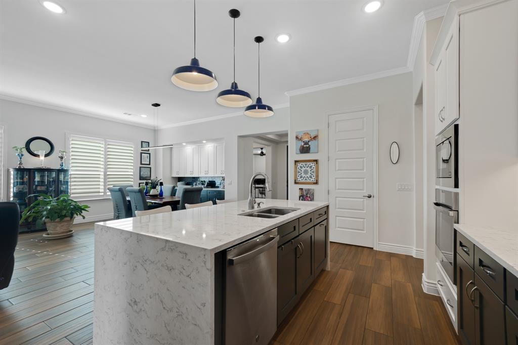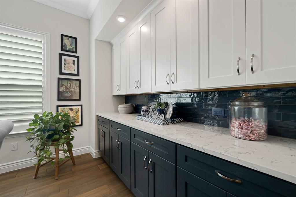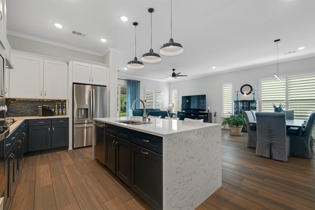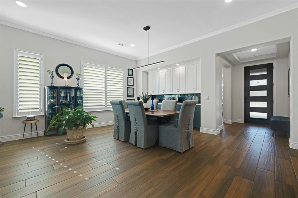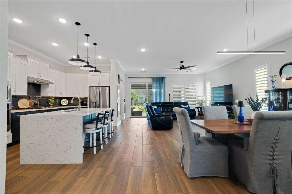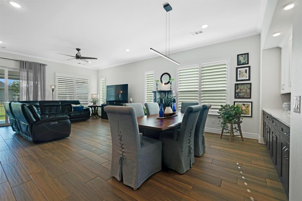 Welcome to your new home in Robson Ranch! This popular BELLA floorplan has been beautifully upgraded and designed for both comfort and style. You’ll love the wood-look tile floors throughout the entire home, giving it a warm, modern feel with easy maintenance. The kitchen is a showstopper with a waterfall-edge island, dual-tone cabinets, and plenty of storage, making it as functional as it is beautiful. The dining room has custom built-ins, and the office features plantation shutters for a polished look. Step outside to the back patio, where you’ll find a built-in grill and motorized shades—perfect for relaxing evenings or hosting friends.