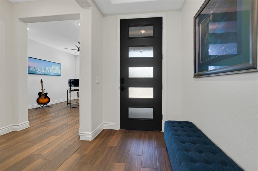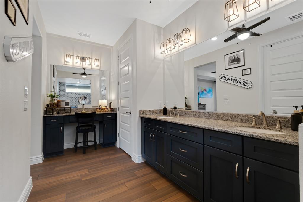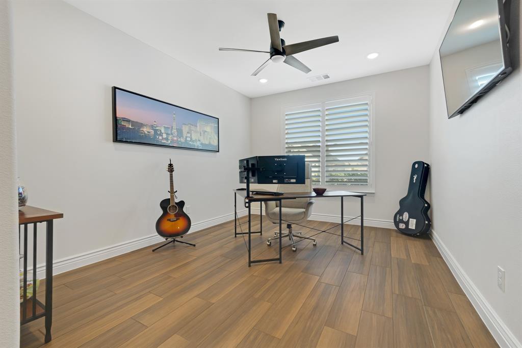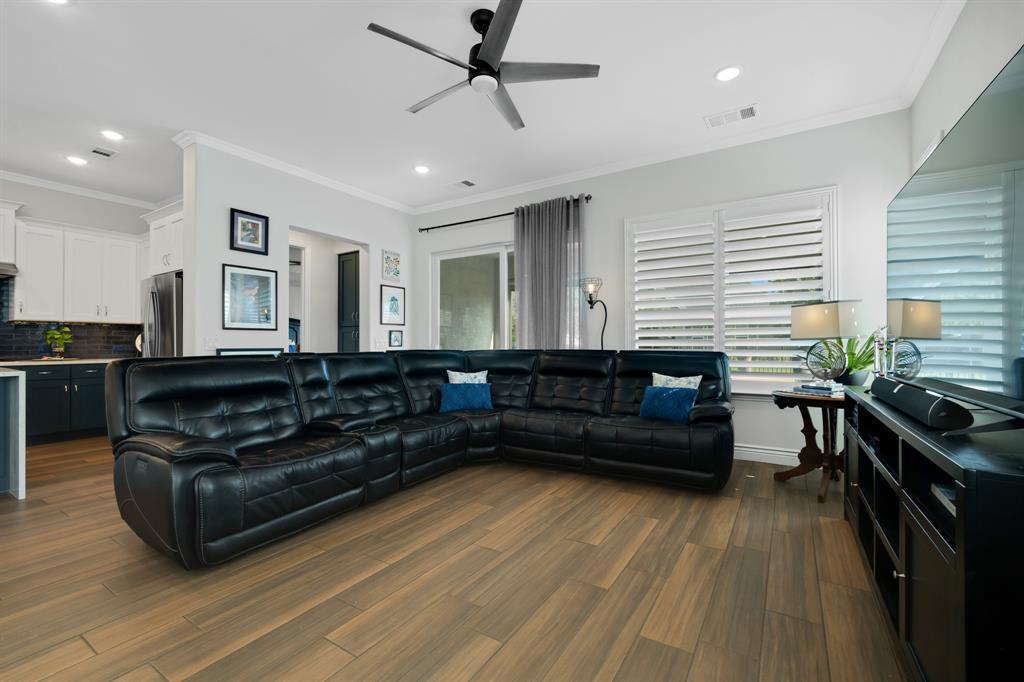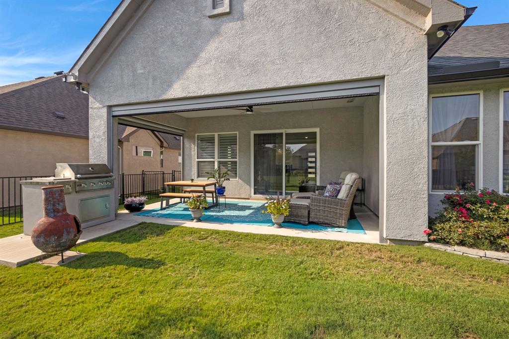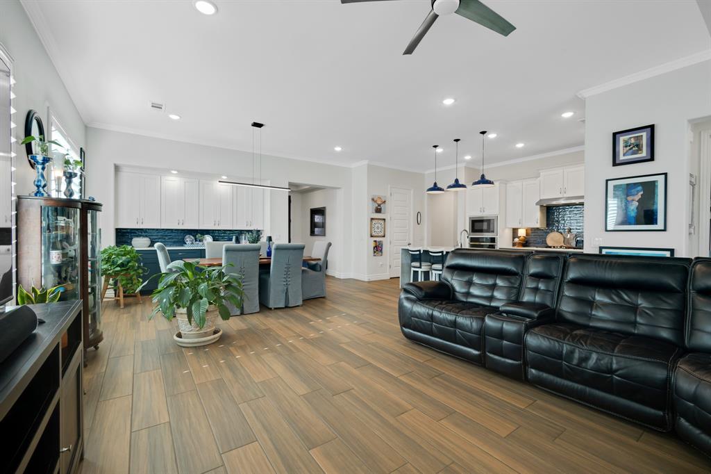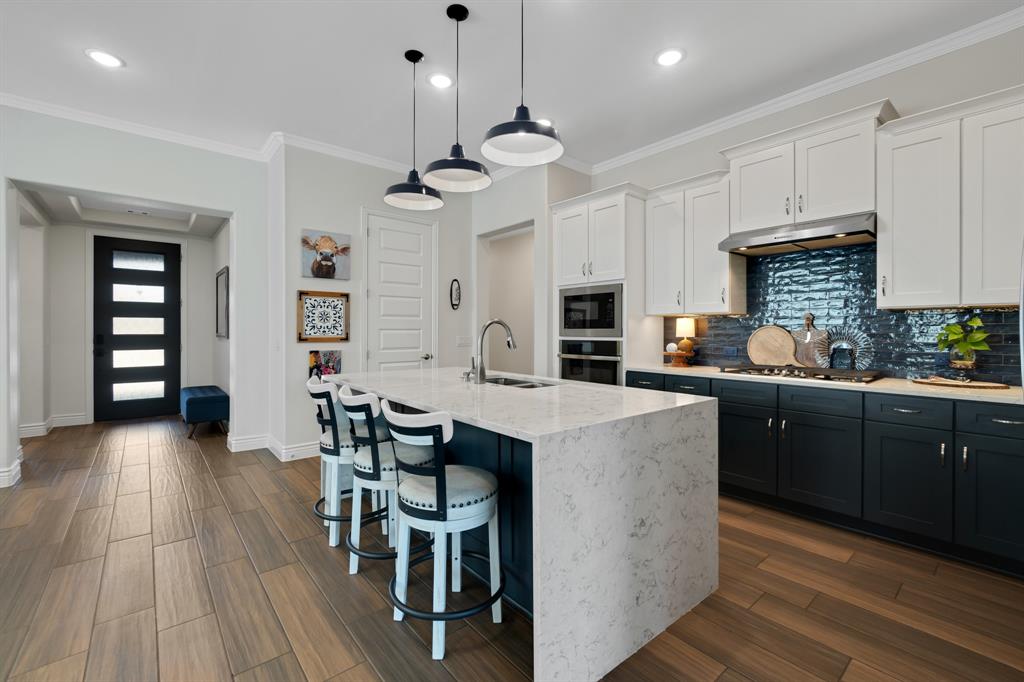 Welcome to your new home in Robson Ranch! This popular BELLA floorplan has been beautifully upgraded and designed for both comfort and style. You’ll love the wood-look tile floors throughout the entire home, giving it a warm, modern feel with easy maintenance. The kitchen is a showstopper with a waterfall-edge island, dual-tone cabinets, and plenty of storage, making it as functional as it is beautiful. The dining room has custom built-ins, and the office features plantation shutters for a polished look. Step outside to the back patio, where you’ll find a built-in grill and motorized shades—perfect for relaxing evenings or hosting friends.