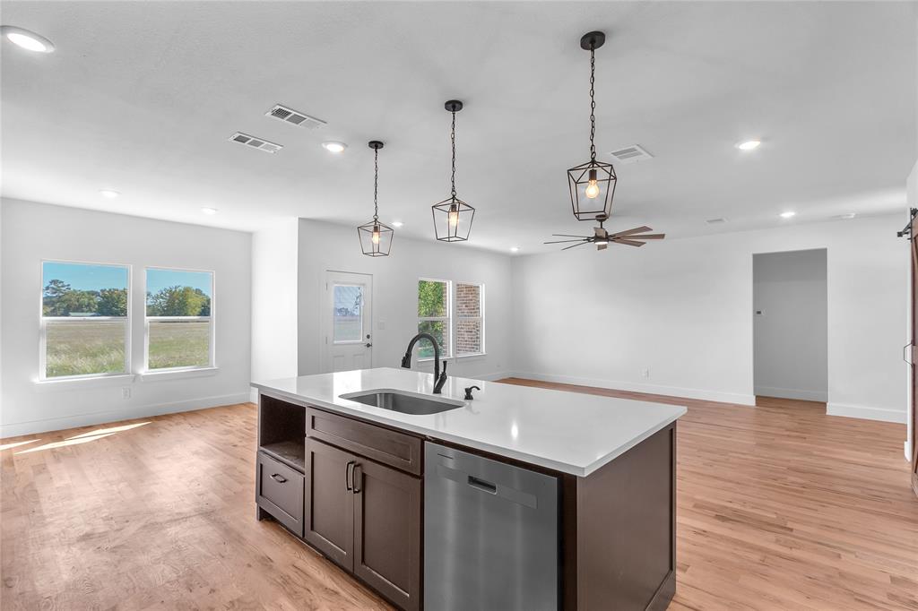 Enjoy the quiet, peaceful country atmosphere in this quality New Construction home with so many upgrades you won't find in other new homes. Gorgeous White Oak Hardwood Floors set the style as you enter through the tall solid wood front door. The tall ceilings in this generously sized 3-2-2+ Office give the Open Plan an even more grand feel. The Office is just off the Family Room and has a wood barn door and a designer tile floor. The Kitchen shows off dark cabinets with glass uppers, white subway tile with contrasting grout backsplash and an Island with a quartz countertop provides extra seating and prep space. A pantry provides additional storage. The adjoining dining area has a special niche with built-in shelves to display your keepsakes. Lots of windows provide natural light. The Primary Bedroom has room for a sitting area and wait 'til you see that gorgeous ensuite bath. Designer all the way. Sidewalk, landscaped and the lake is a stone's throw away with access to a POA park. Seller Concession towards Buyer closing costs $5000.