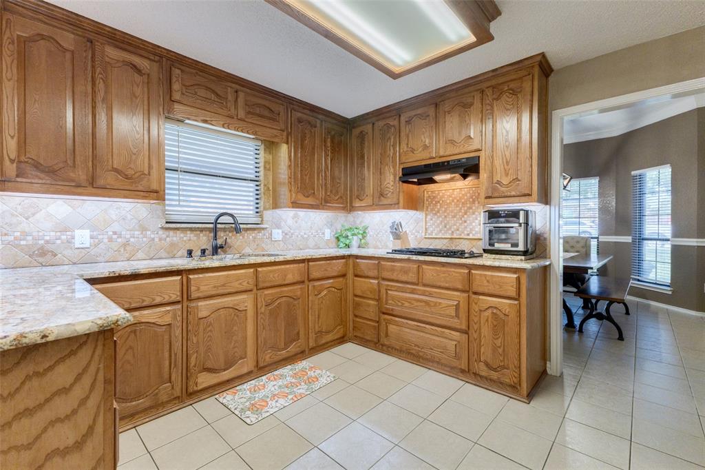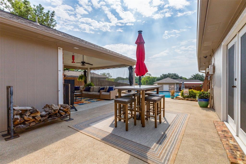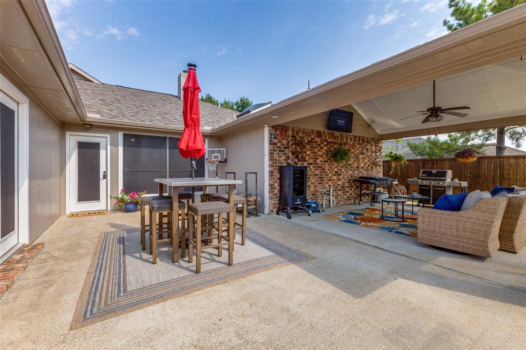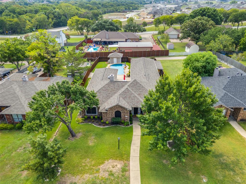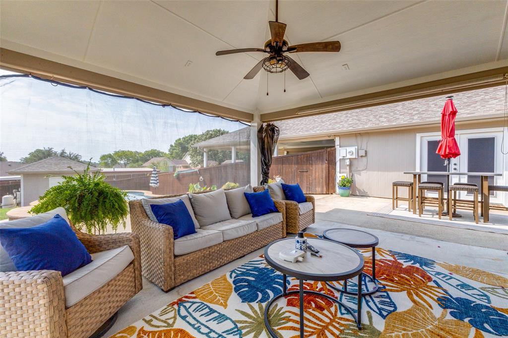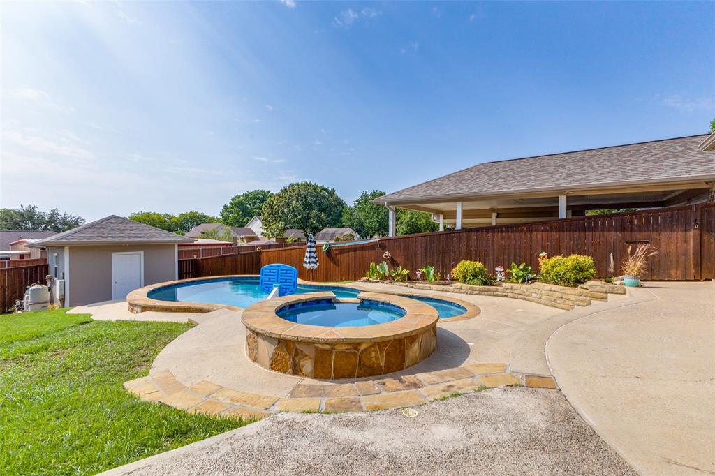 Beautiful, 1 story, move in ready home in Indian Trails of Mesquite. Marvel at the backyard oasis. On an expanded lot, enjoy your pool, spa, and covered outdoor living area. Your screened patio is perfect for this fall to watch football games while grilling. The pool or spa is the perfect place to unwind. Need extra space, there is a shed that conveys with the sale as well as extensive storage above the expanded carport. One can fit 4 cars under roof in the carport. You won't find another backyard like this in the area. Inside, stretch out across over 2,100 square feet. This light filled 3 bedroom, 2 bathroom set up has a primary bedroom with ensuite bath, separate tub and shower, as well as a walk in closet. Multiple living spaces include a large, finished garage that can be your family, exercise, or media room. The sun room is the perfect place to set up as an office. Use the formal dining room for those special meals or grab a quick bite in the breakfast room adjacent to the kitchen. Smith Elementary School is just a few short steps away. Copeland Park can be reached with a short walk. You are only minutes to major highways that can take you all across the DFW area. You get so much with this home, it is a great value. This house is a must see.