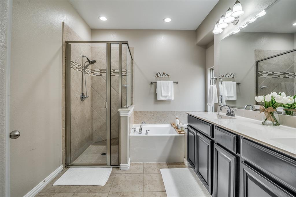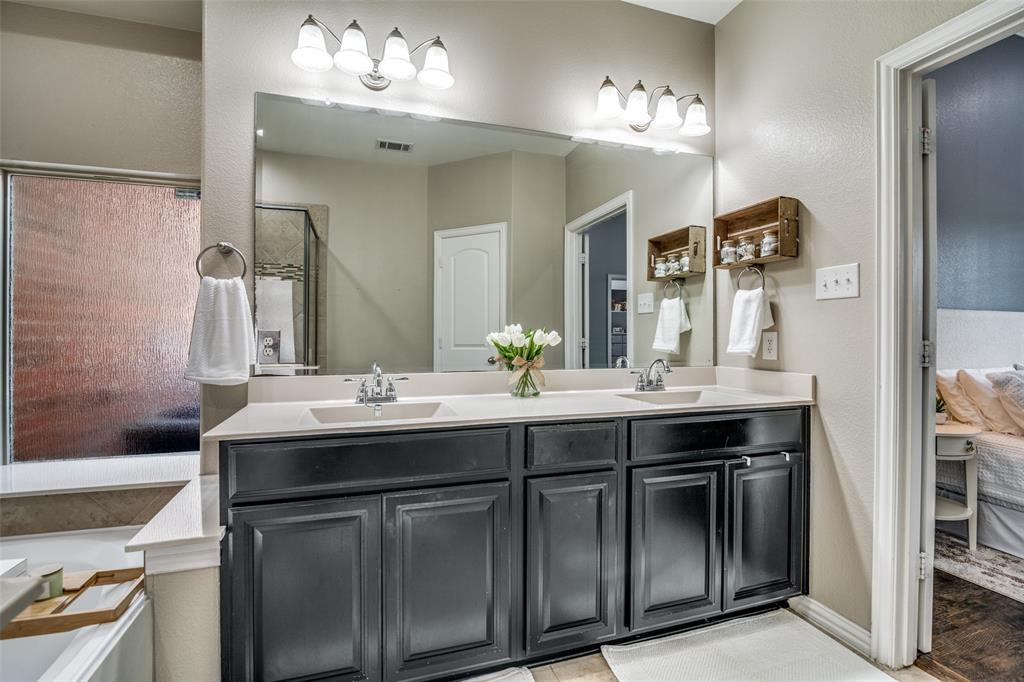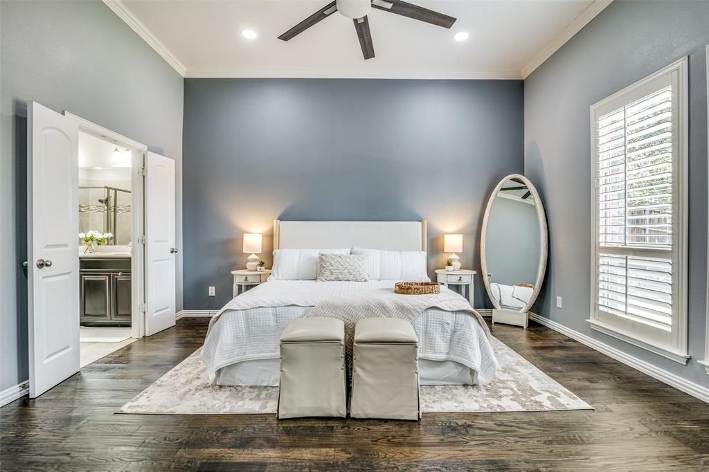 Welcome to this immaculate corner lot 2-story home featuring luxury and comfort just beyond the mature trees of Lake Ray Hubbard in the sought-after Rockwall ISD, Falcon Ridge Community! This home offers an incredible blend of comfort, functionality and spacious rooms & plantation shutters throughout the house windows. With a meticulously kept 4-bedroom, 2.5-bathroom, it offers an entrance room that can be used as an office, formal living area, or a formal dining room. You will step inside to a sun-filled open concept layout with a chef’s kitchen, perfect for entertaining your guests or simply enjoying a family meal cooked on your gas stove served on your large, renovated kitchen island. The elegant main bedroom located on the first floor, is perfect for a peaceful retreat, offering a custom closet, and a garden tub with a separate shower. Upstairs, you will have a spacious open area, perfect for a game room or second living area, ideal for family nights. Recent upgrades include new carpet, hardwood floors, large kitchen island, microwave, flat LED daylight lighting throughout the house, garage sensor lights, outdoor concrete slab, and outdoor motion lights.