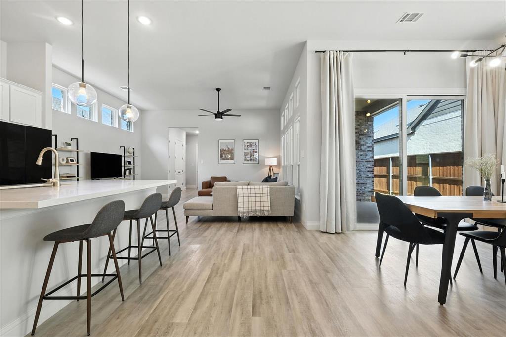 Welcome to this beautifully landscaped 3-bedroom, 2-bath gem in the desirable Riverset neighborhood. Step inside to a bright, inviting entryway that leads into a spacious formal dining area—perfect for entertaining. The open-concept kitchen is a true showstopper, featuring a substantial center island with breakfast bar seating, sleek quartz countertops, crisp white cabinetry, stylish backsplash, and large pantry. It flows seamlessly into the light-filled living room, where a wall of windows brightens the entire space.